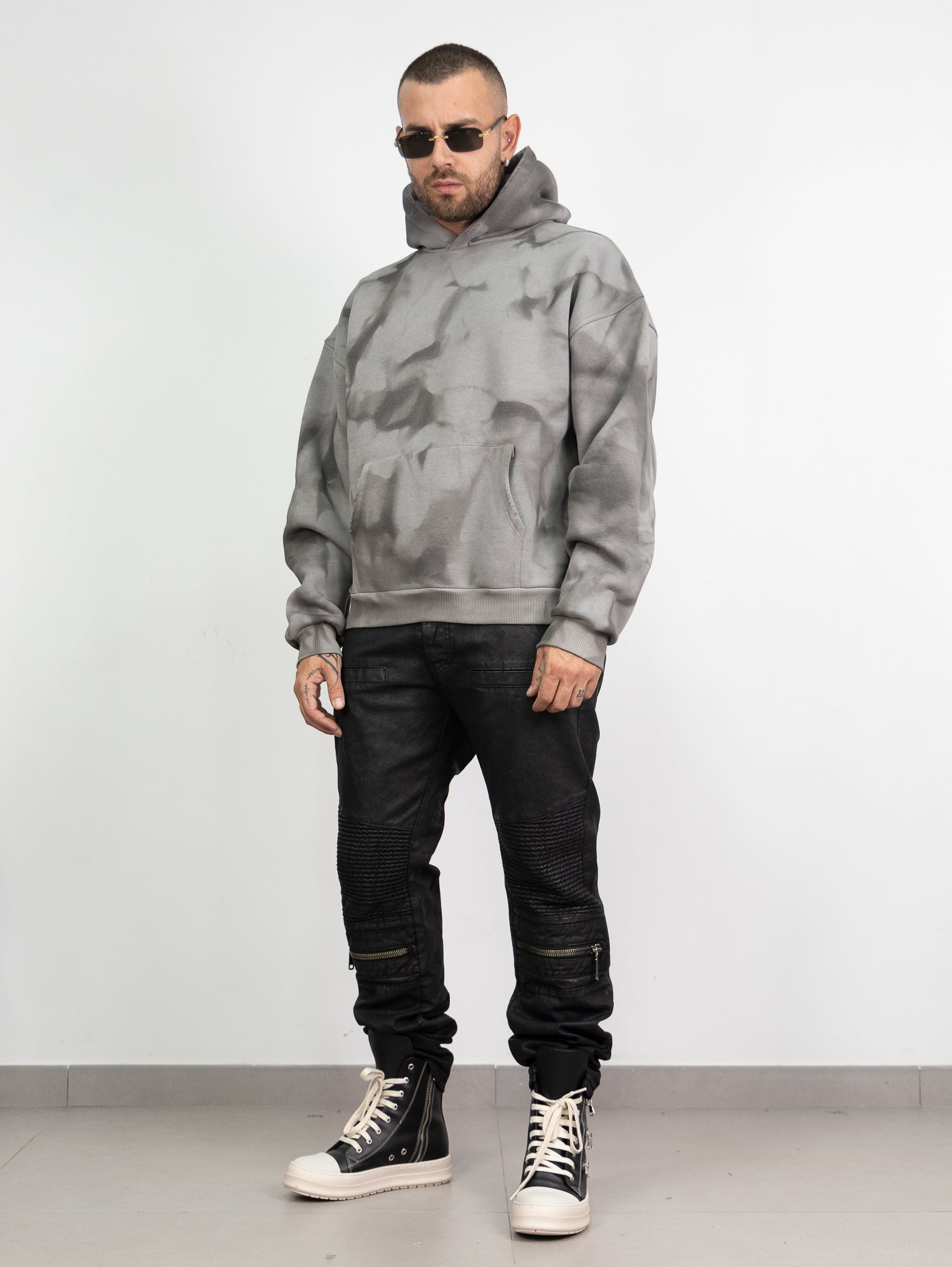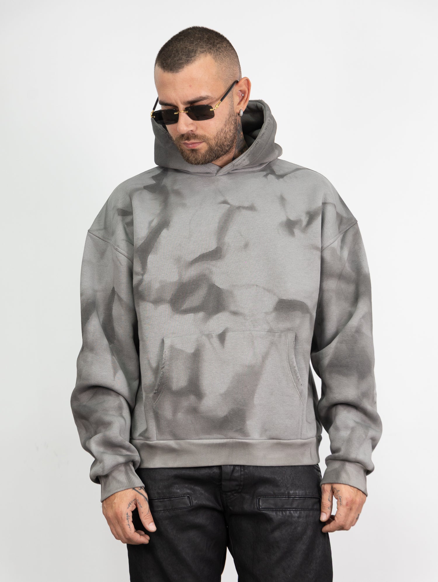 felpa con cappuccio,boxy con sfumature astratte