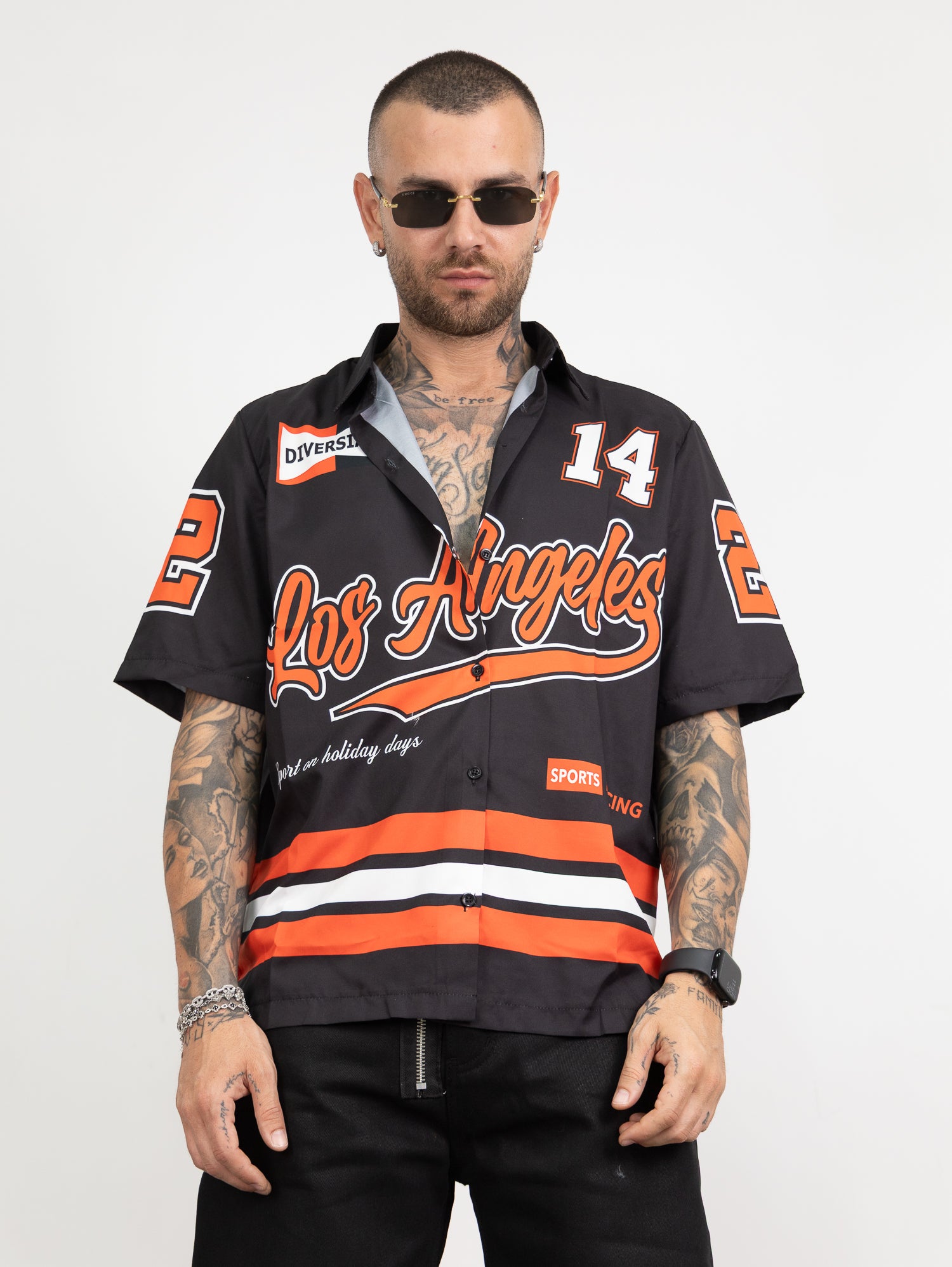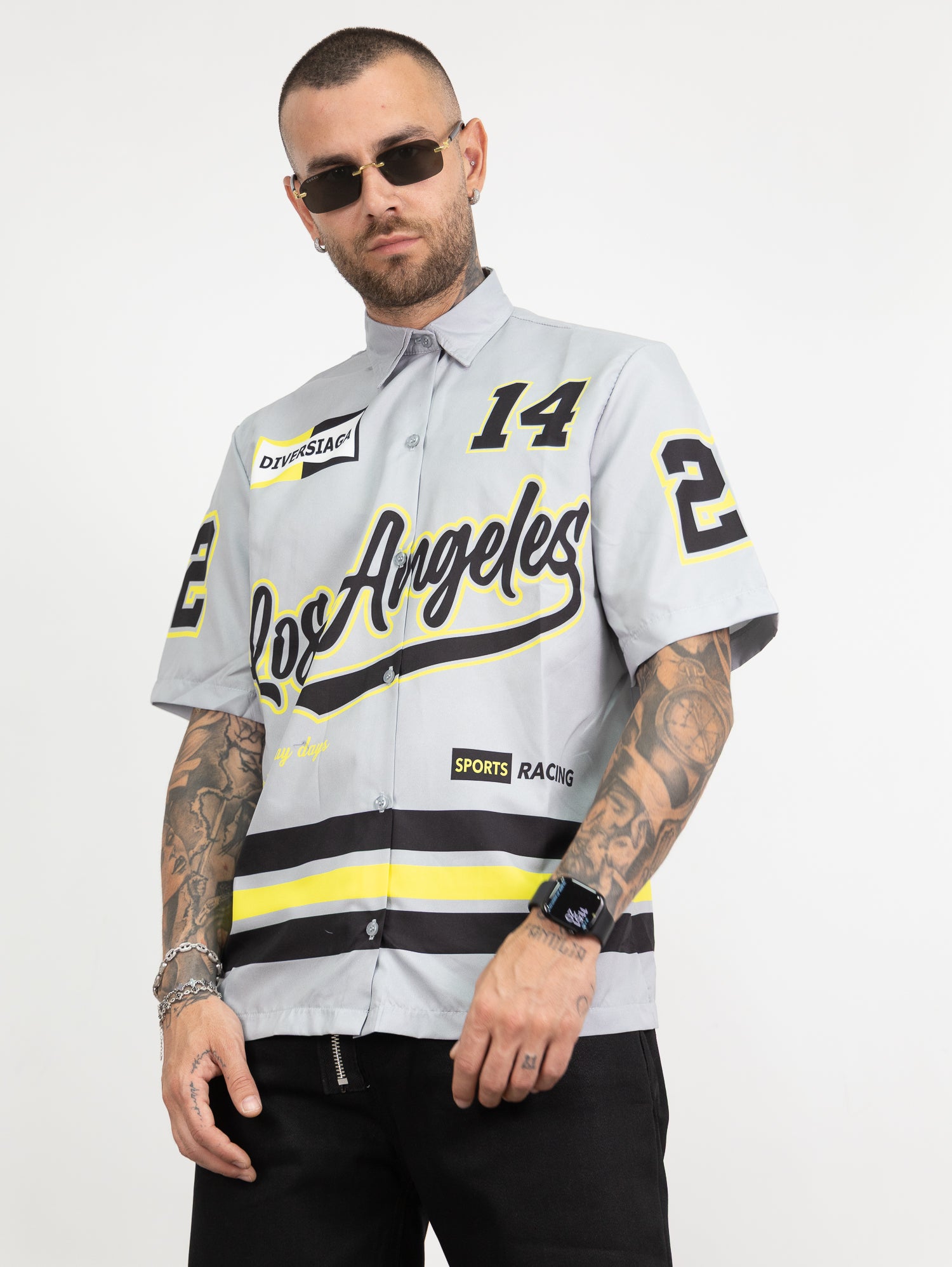 camicia over size con dettagli e stampa a contrasto fronte\retro