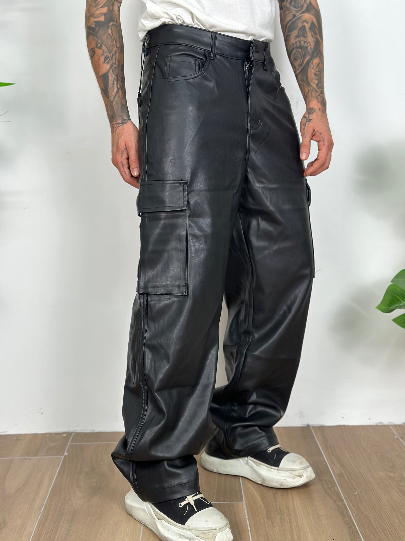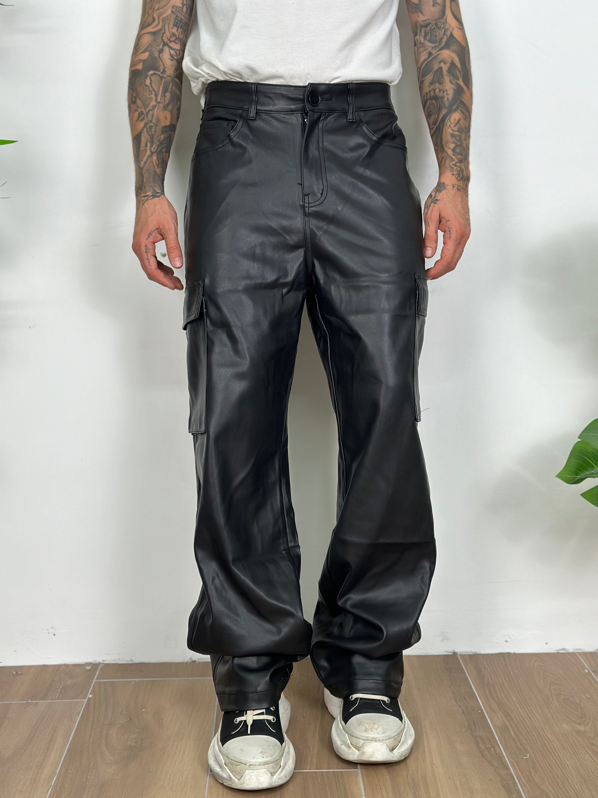 cargo in eco pelle con tasconi laterali fondo largo.