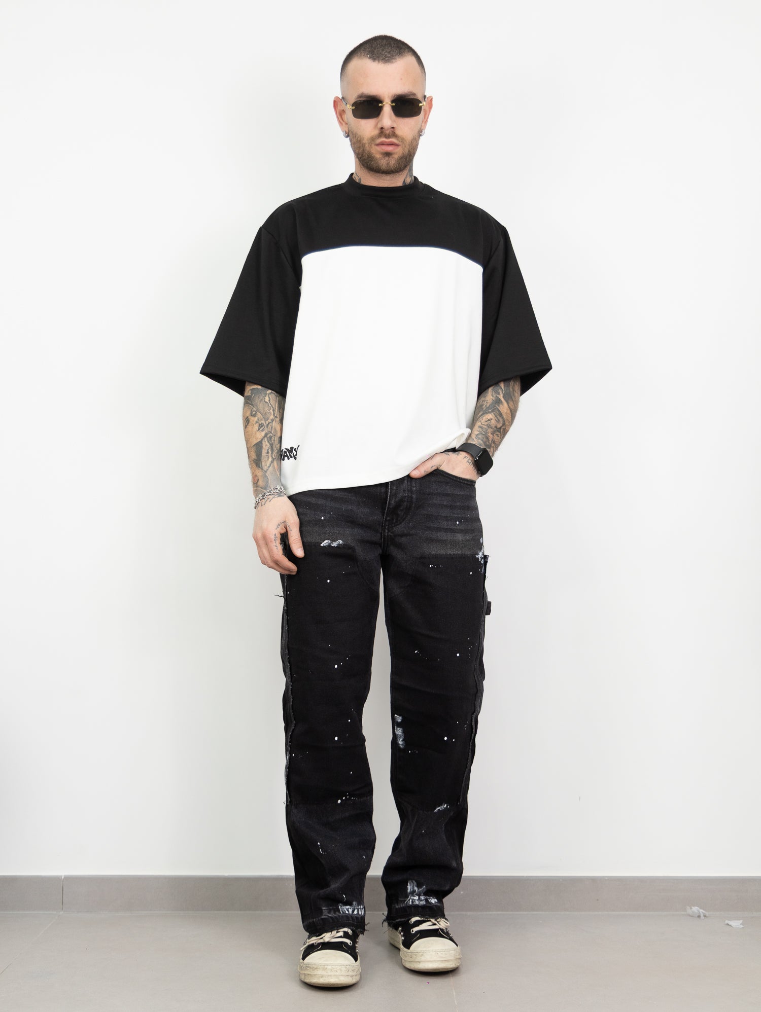 carpenter con schizzi di pittura,e dettagli a contrasto,fondo taglio vivo