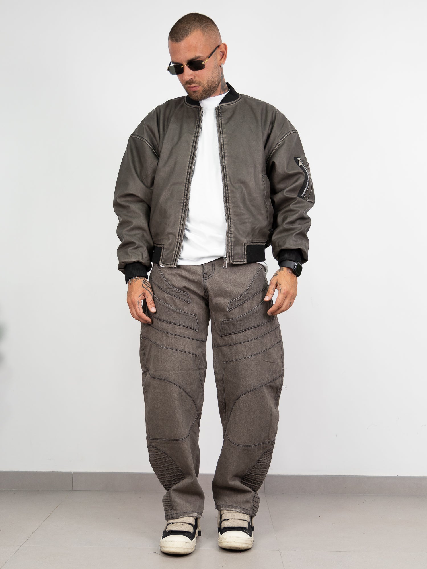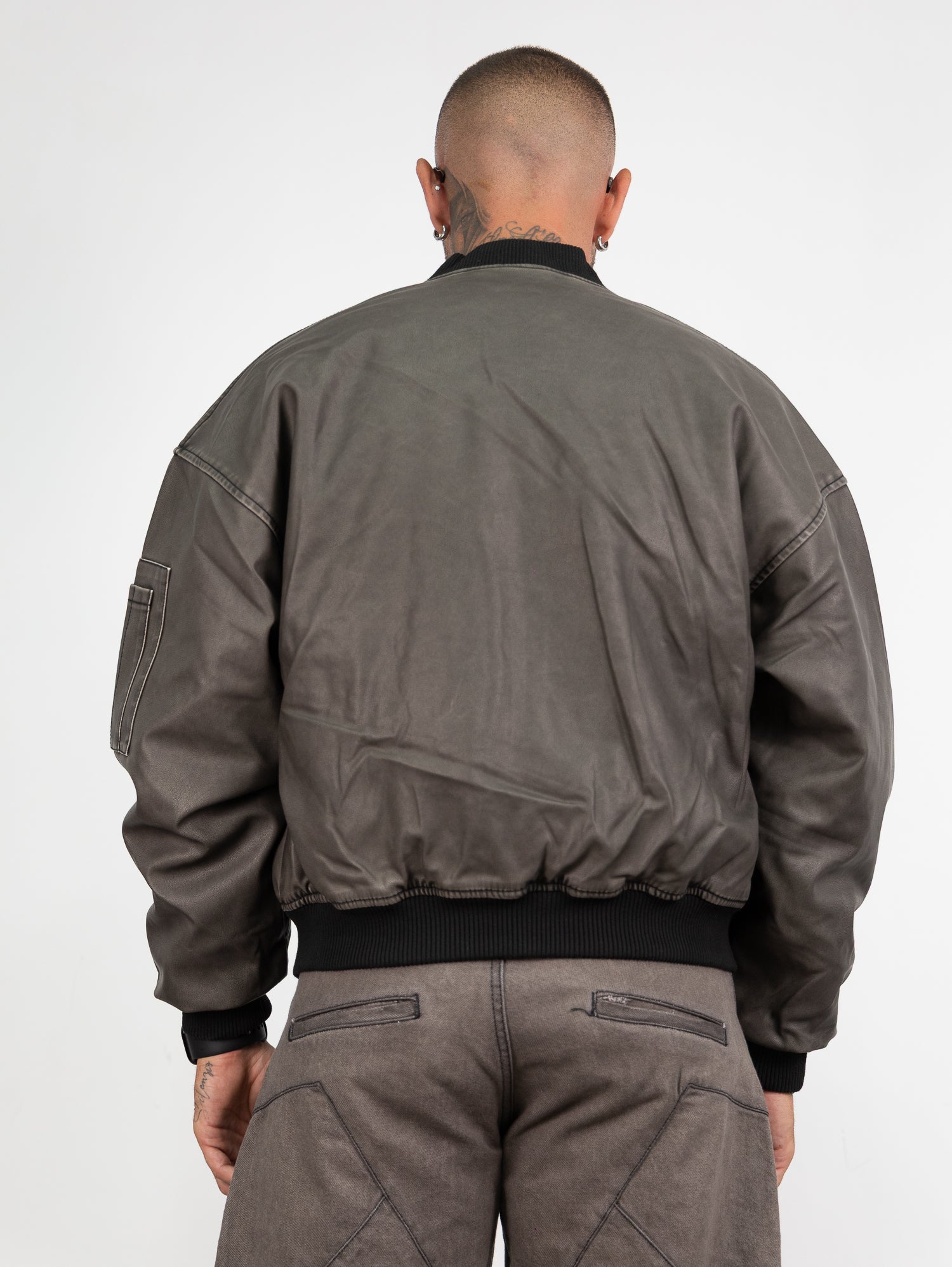 Bomber in ecopelle con dettagli a contrasto,zip frontale,elastico sul fondo e sui polsi.