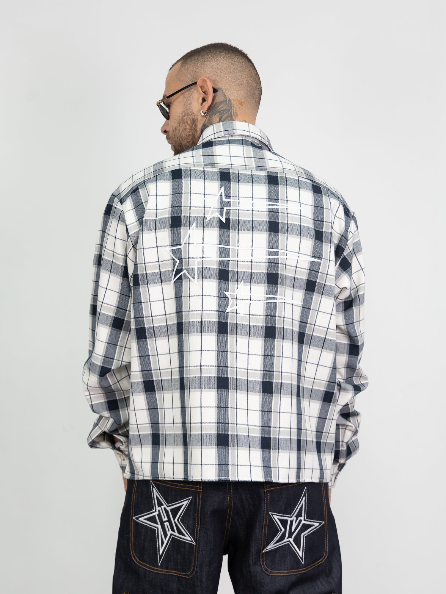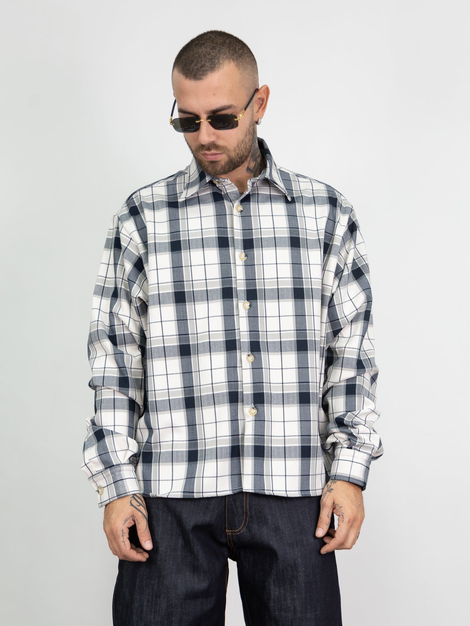 camicia a quadroni con bottoni apribili,e dettagli ricamati sul retro
