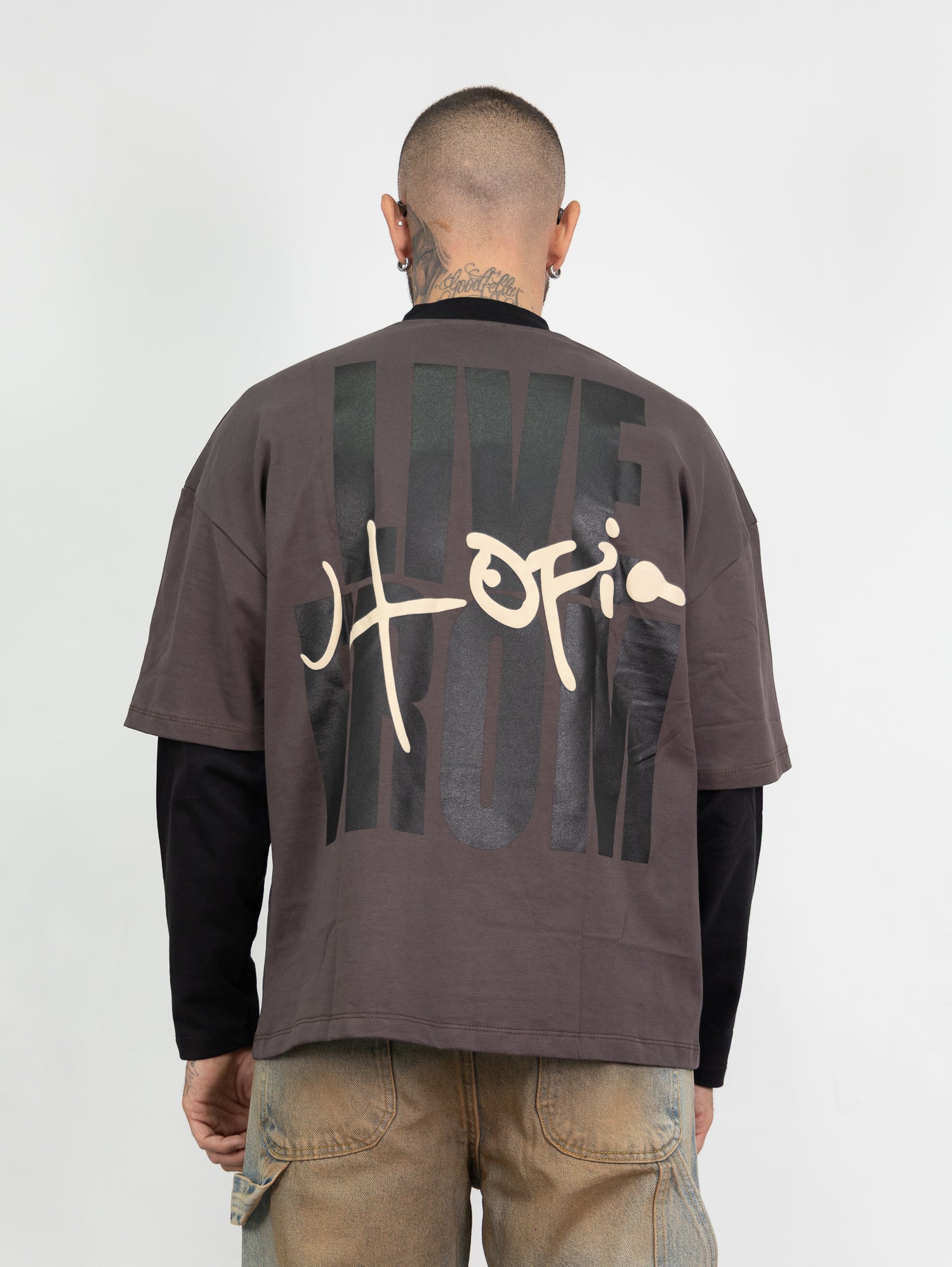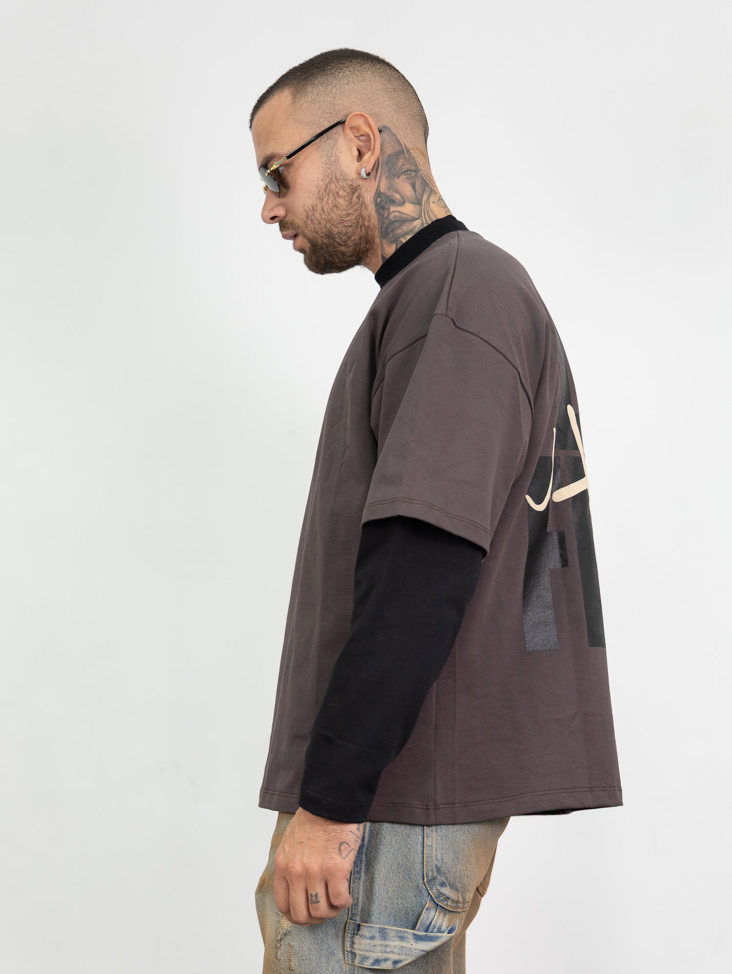 t-shirt doppia manica a contrasto e e stampa bicolor retro
