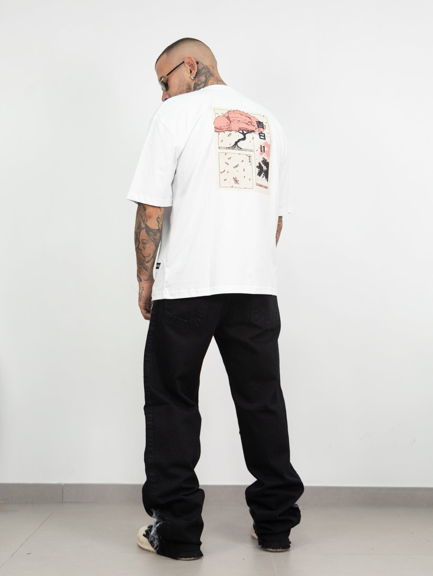 t-shirt over size,con stampa retro e dettaglio logo sul fondo