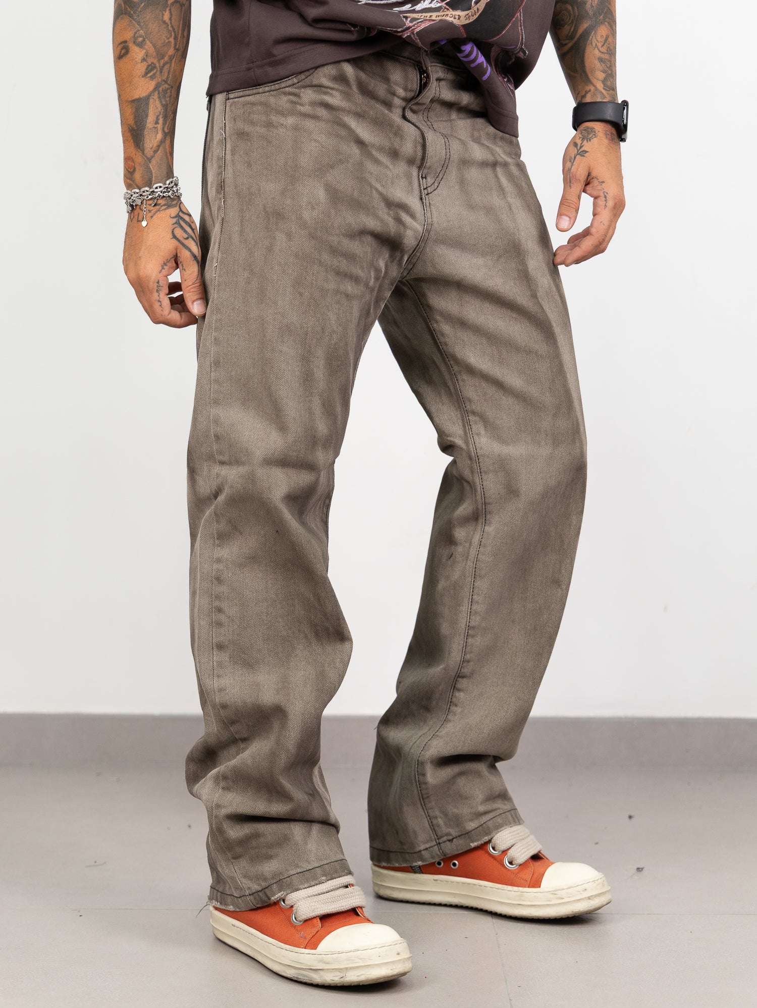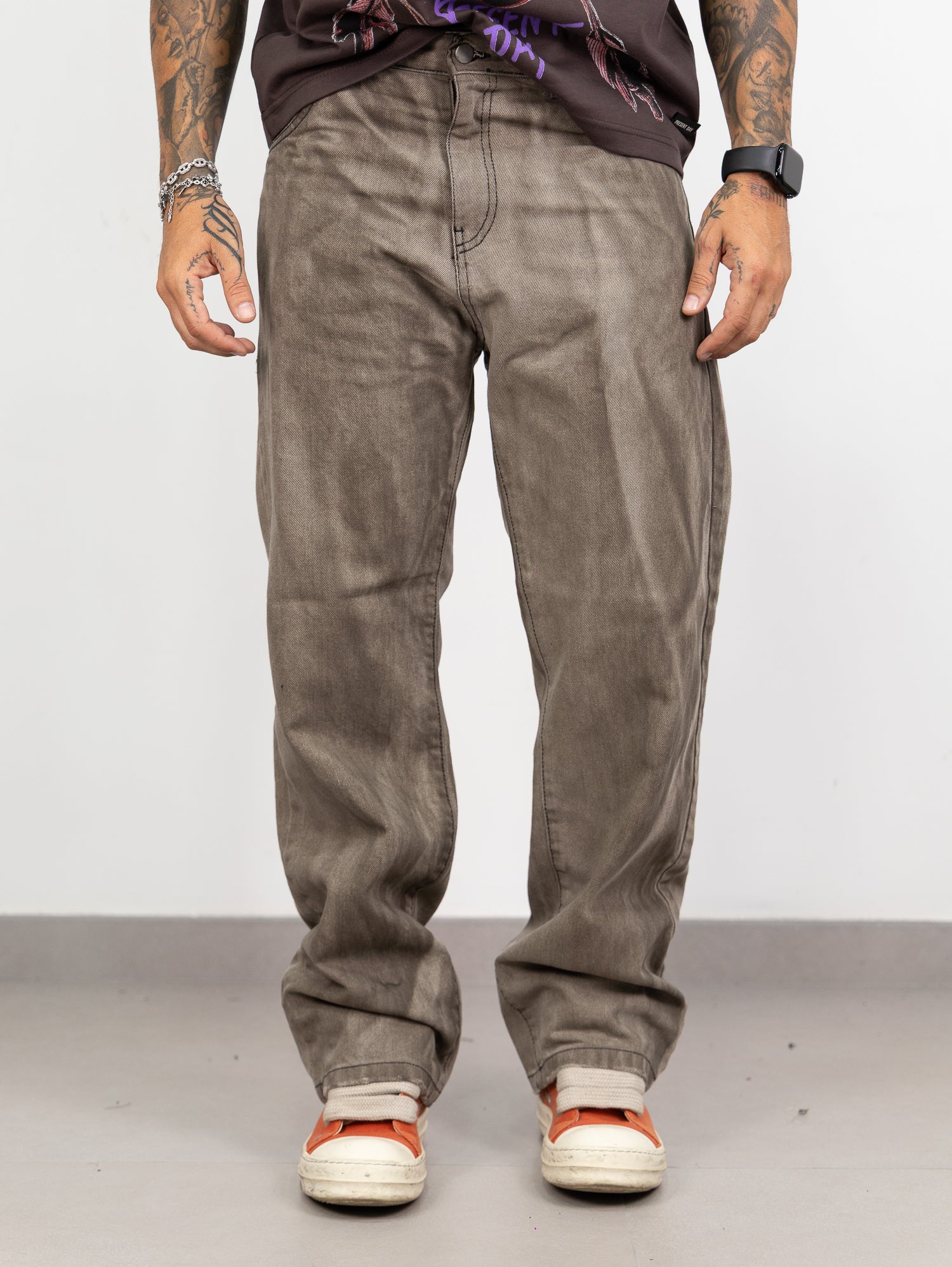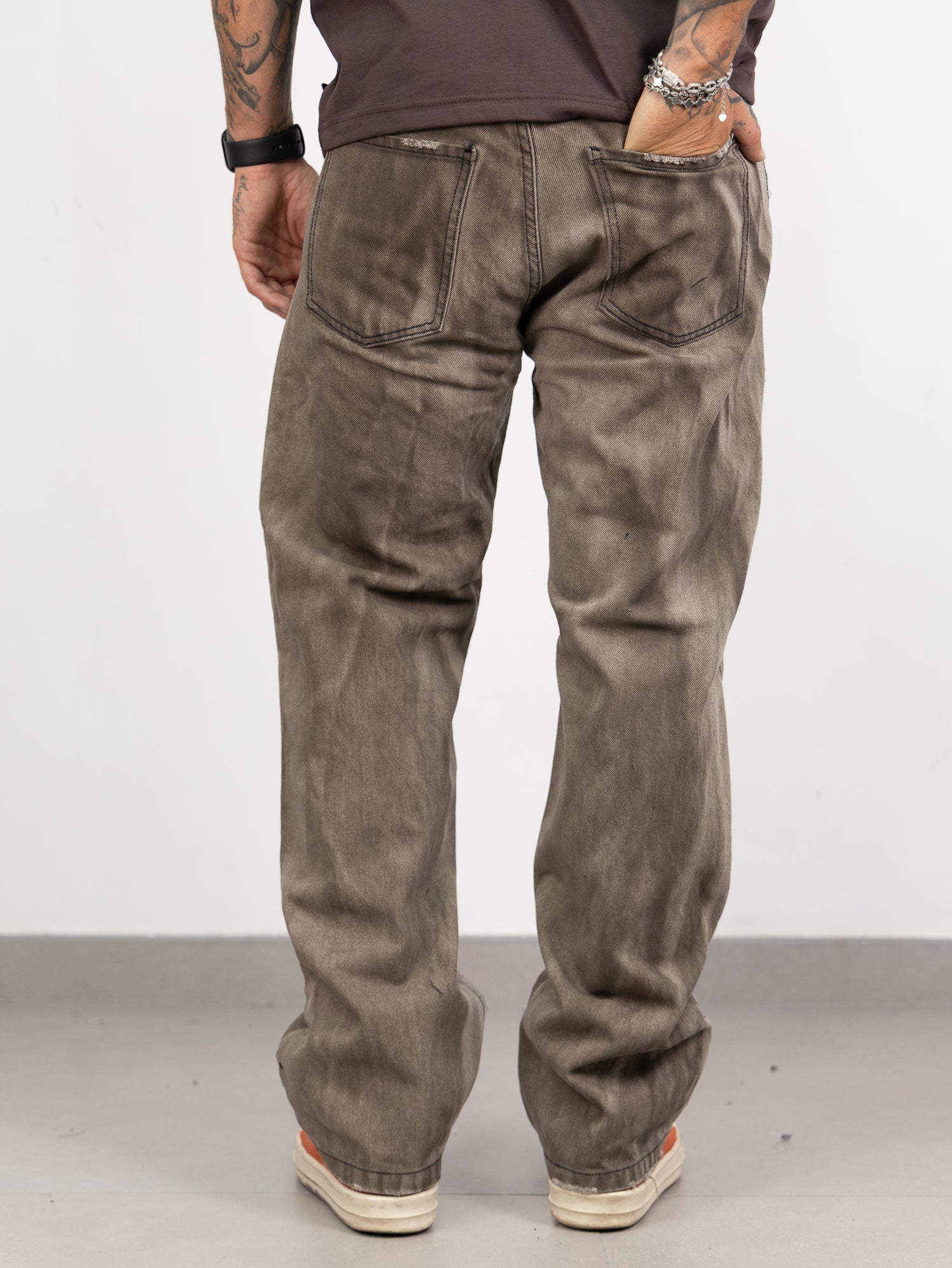 Baggy sfumato con rotture taglio vivo sul fondo.