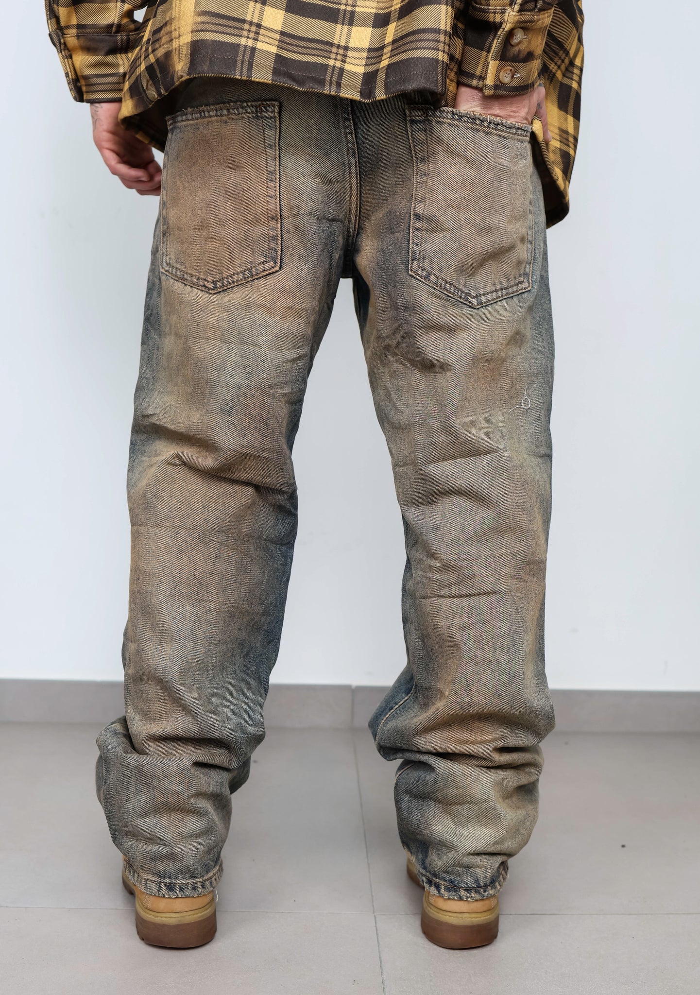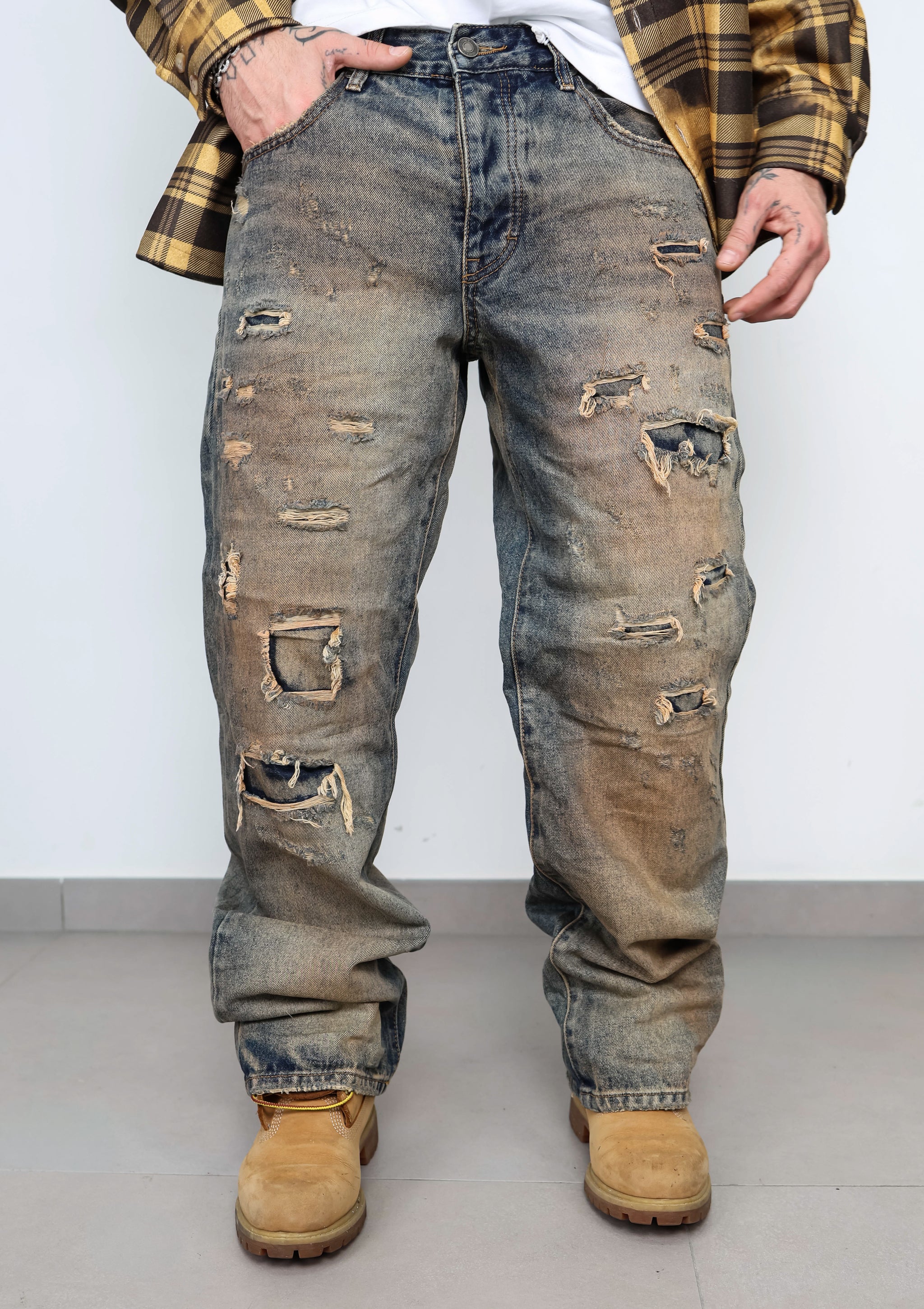 baggy sfumato sabbiato doppio colore con rotture taglio vivo frontali