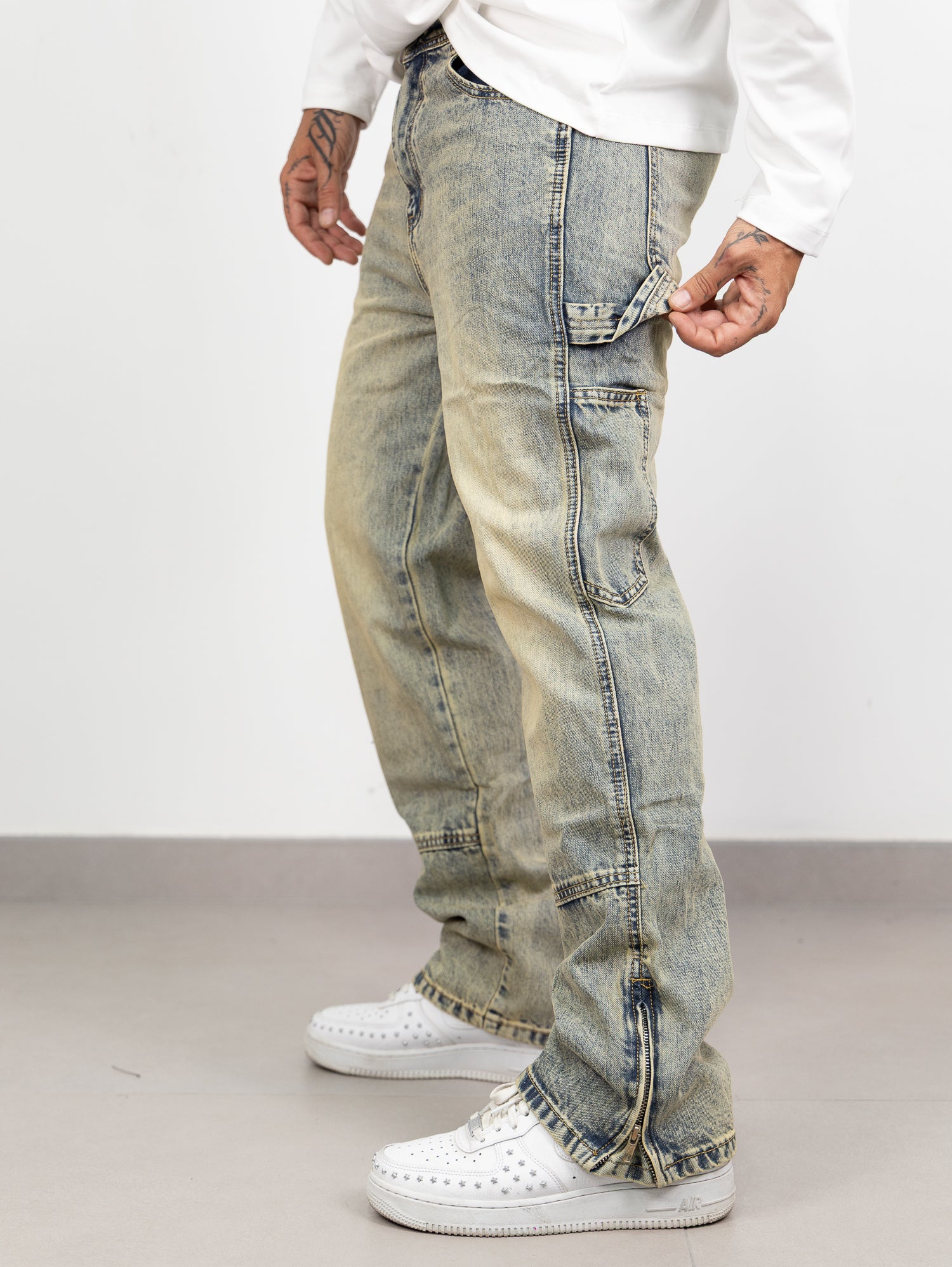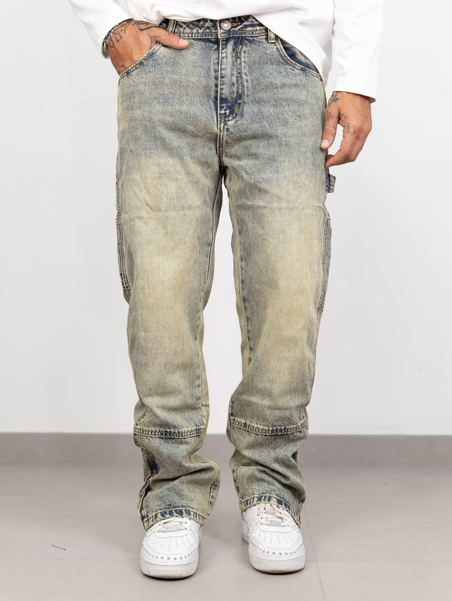 carpenter in denim sabbiato regolare,con zip apribile sul fondo