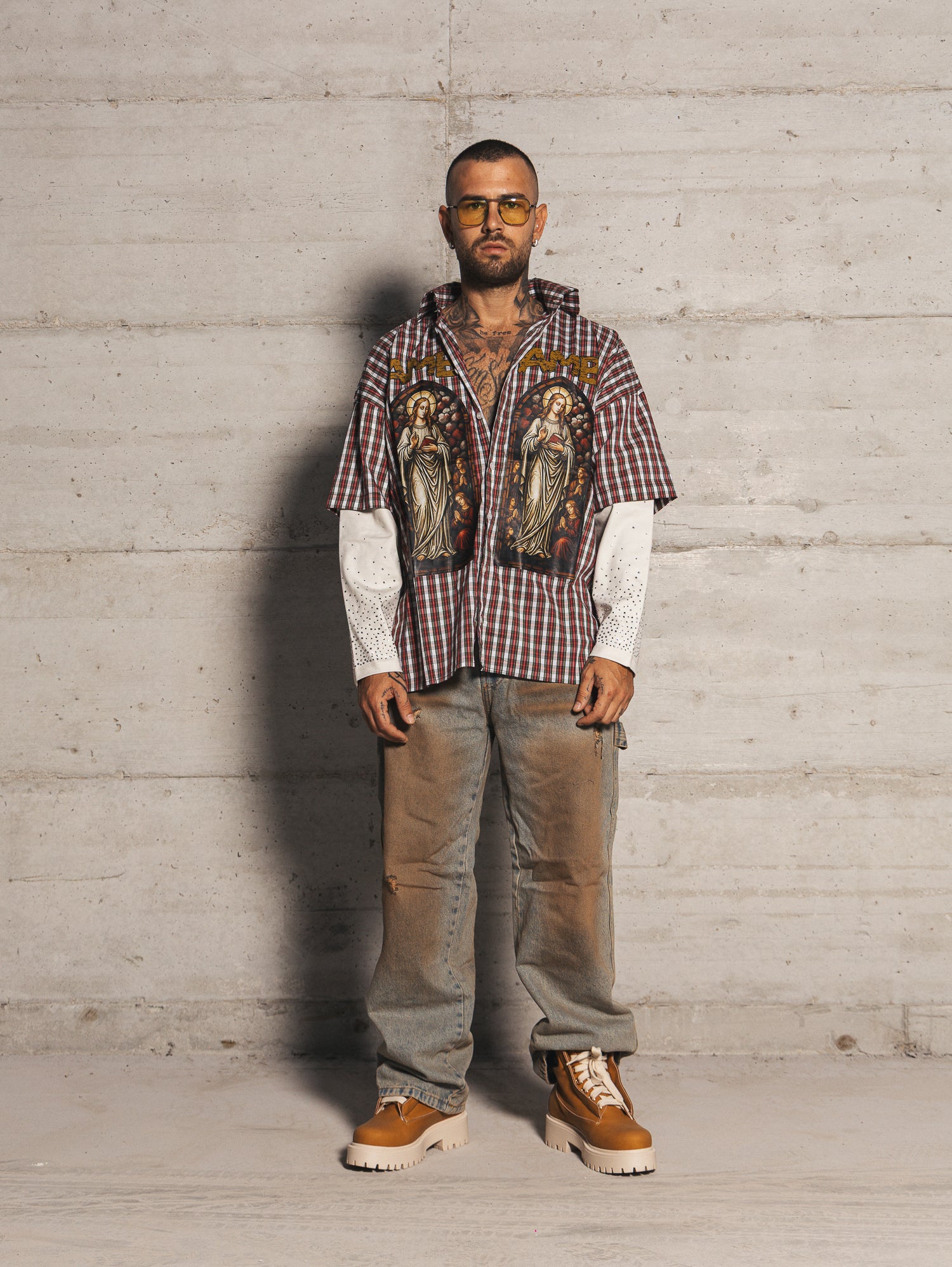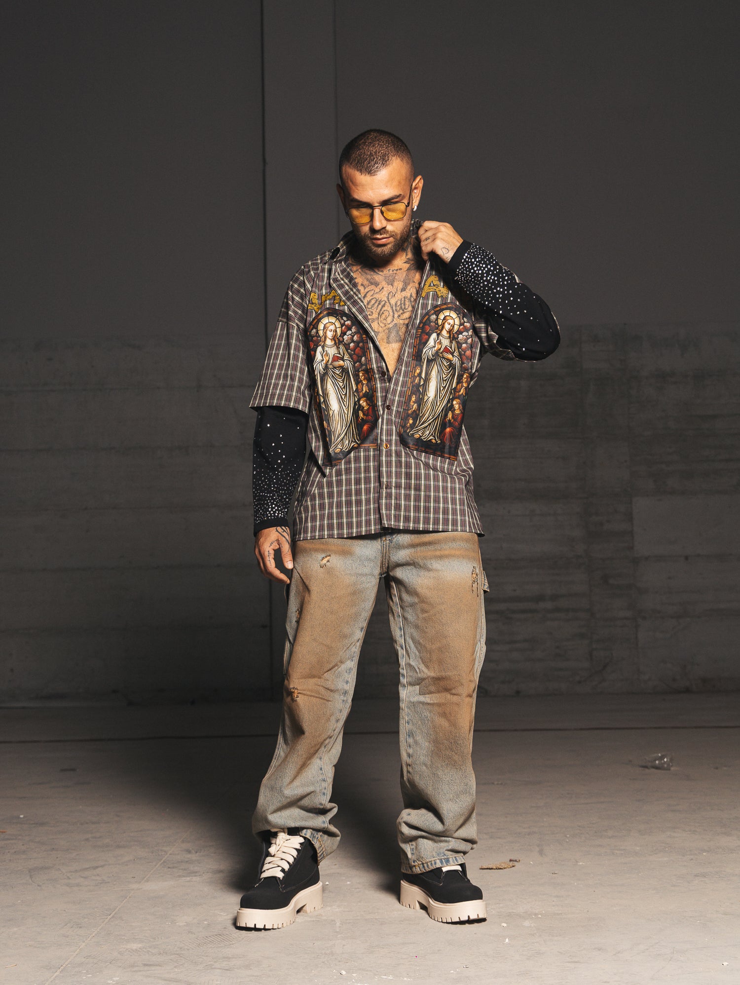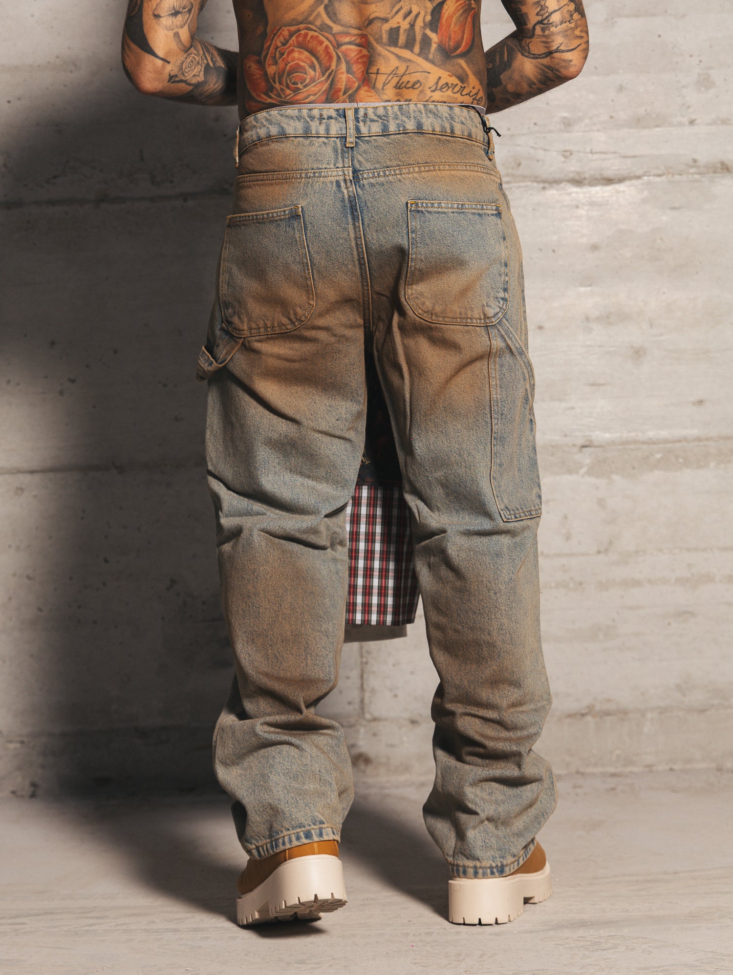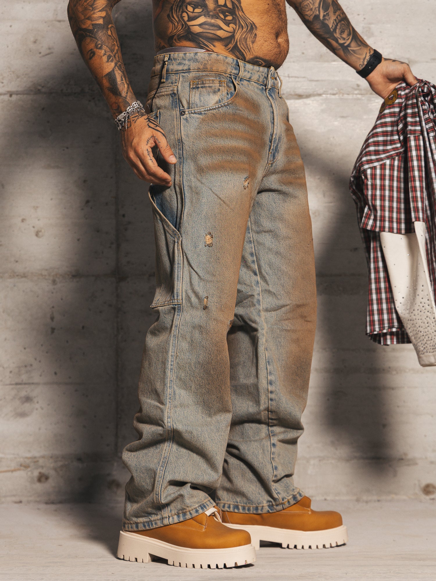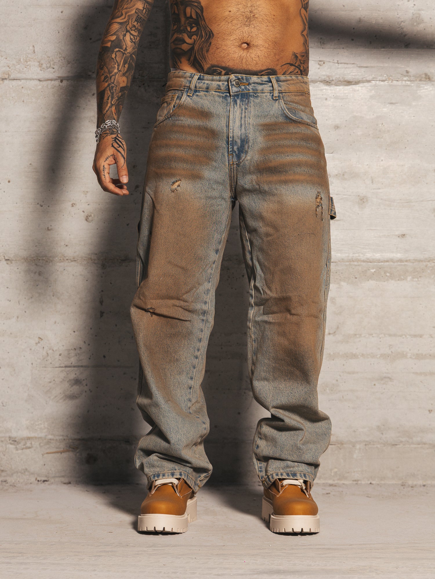 Carpenter con sfumature a contrasto sabbiate fronte retro e rotture taglio vivo.