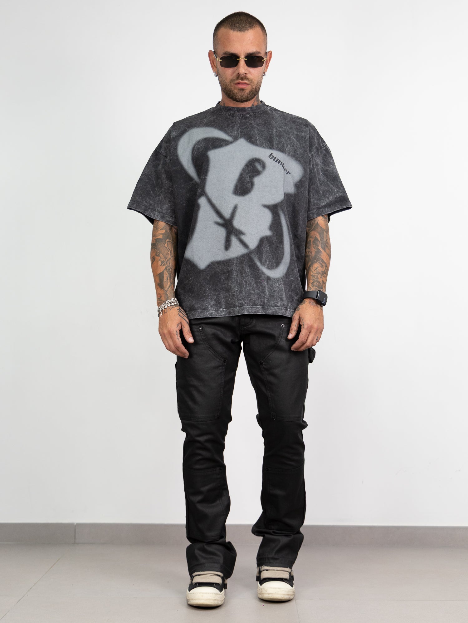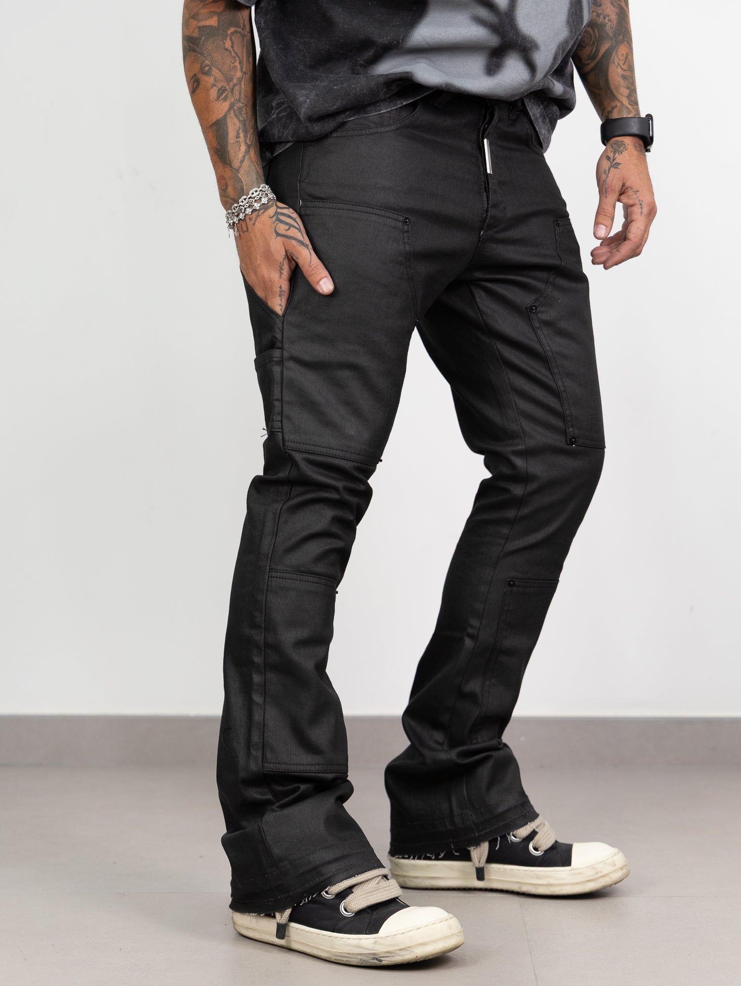 Flare spalmato con dettaglio carpenter e taglio vivo sul fondo.