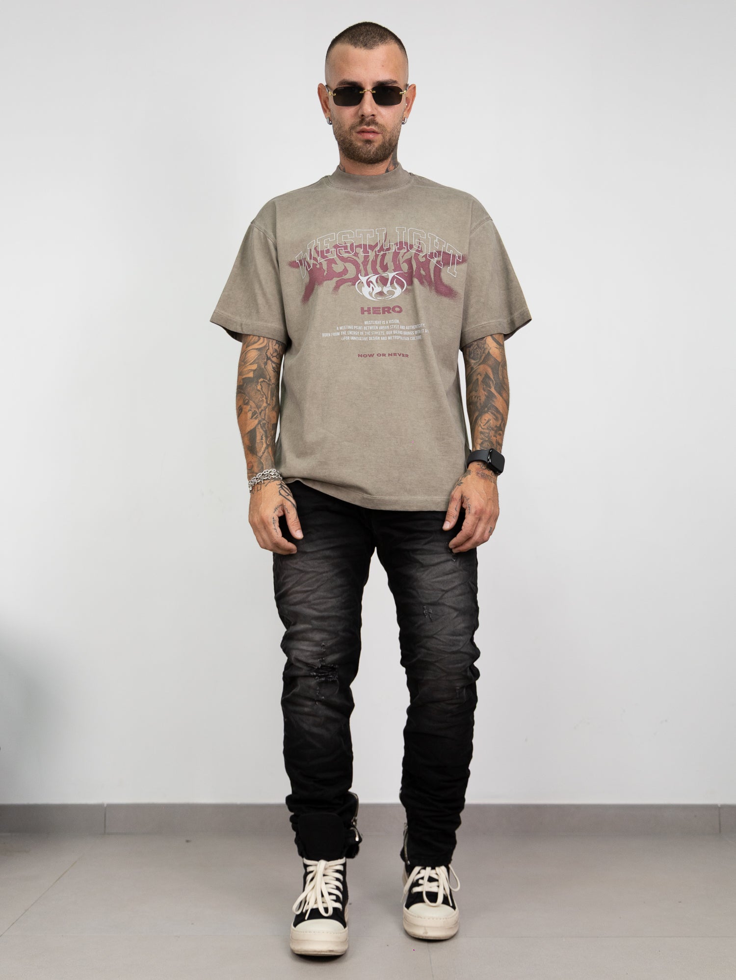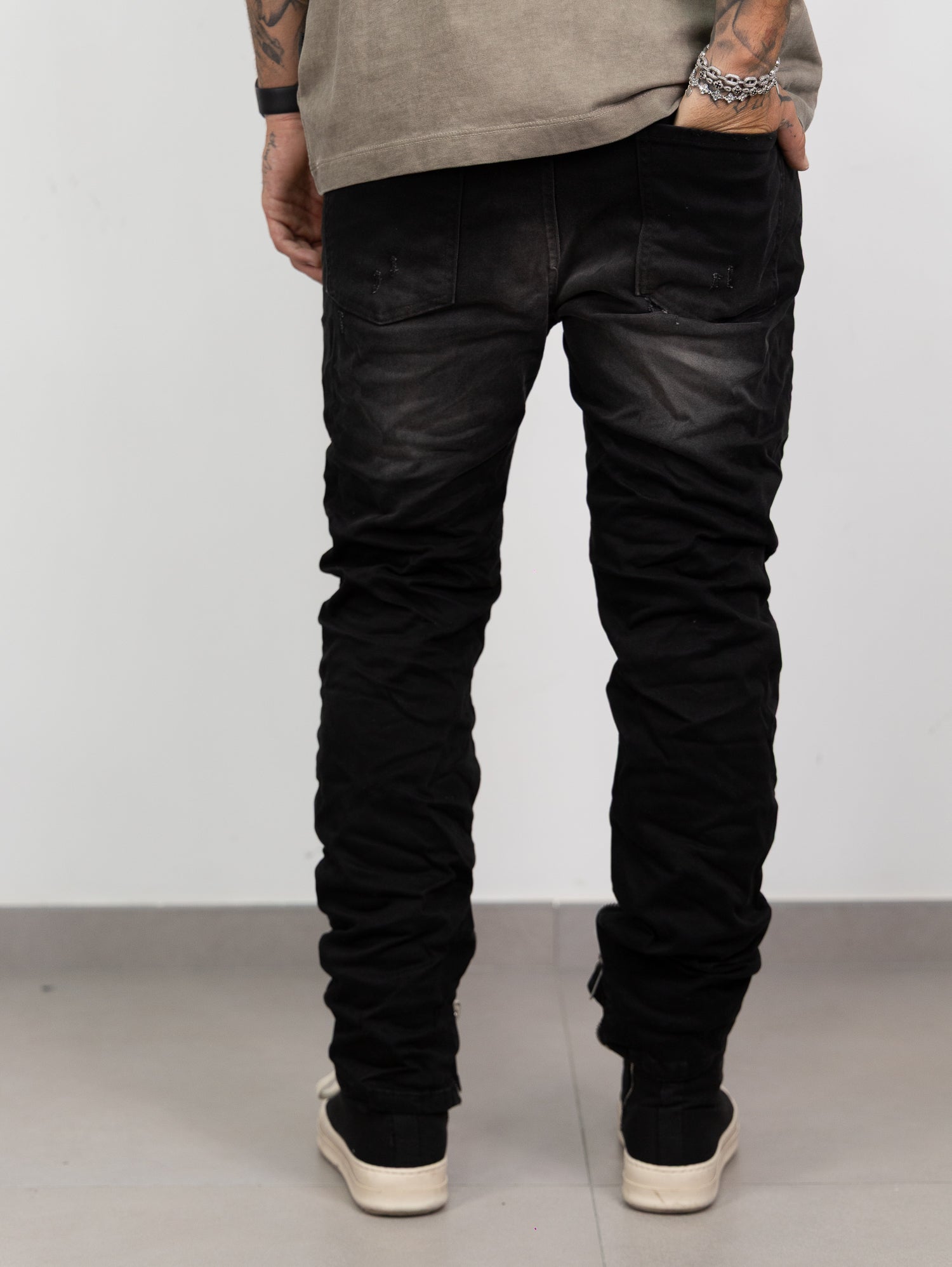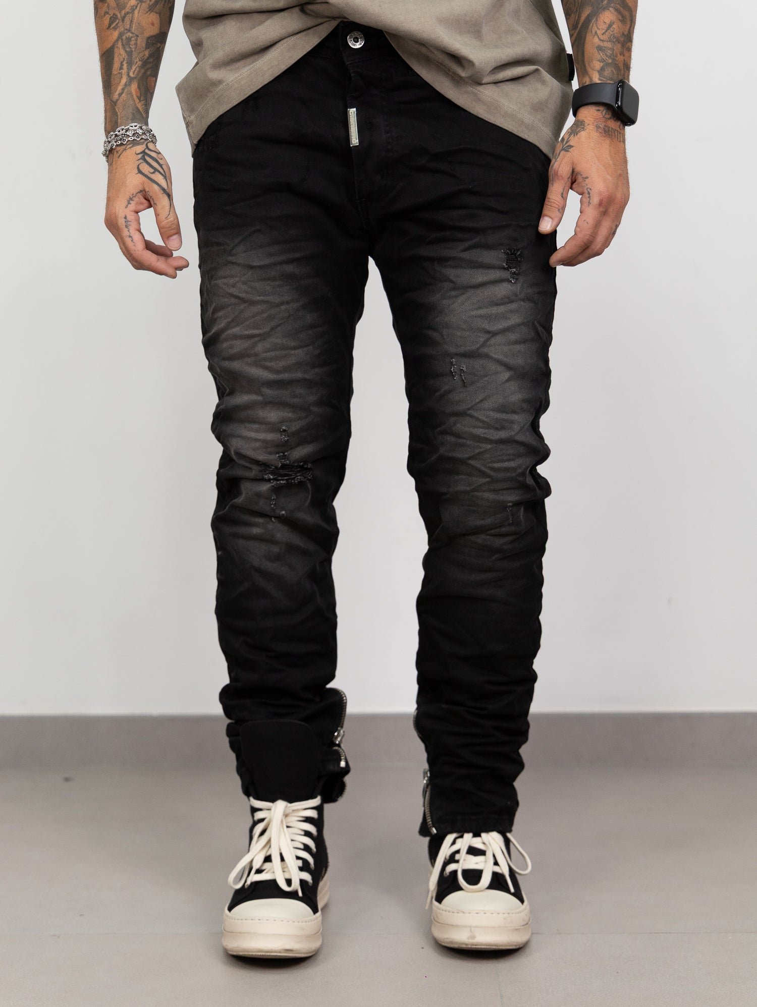 regolar fit in denim resinato sfumato con zip apribile sul fondo