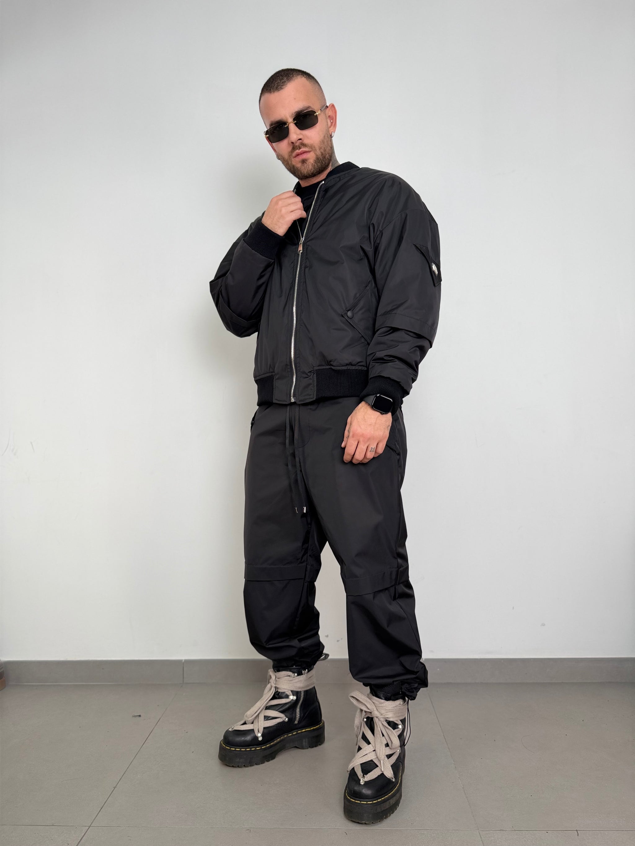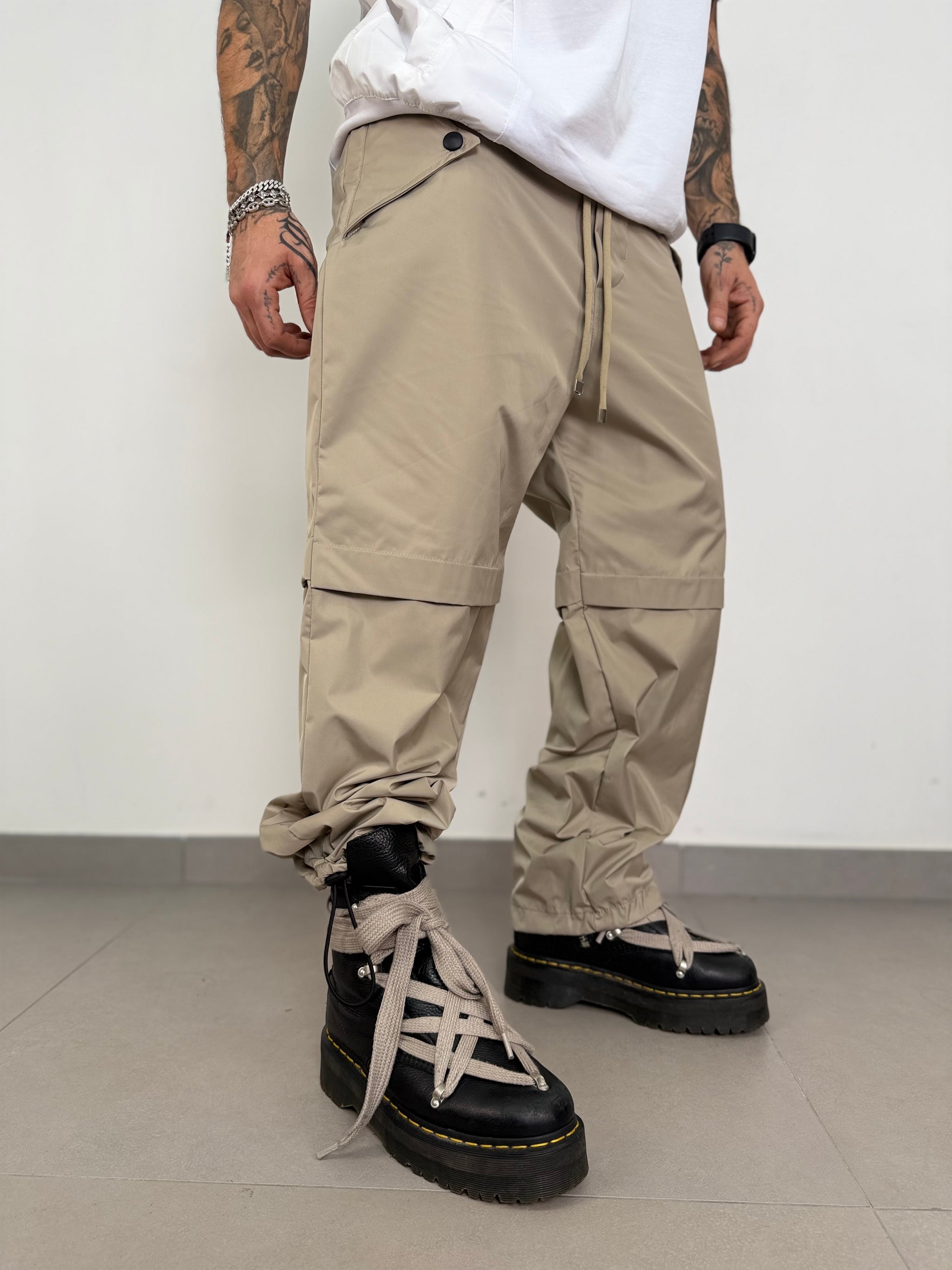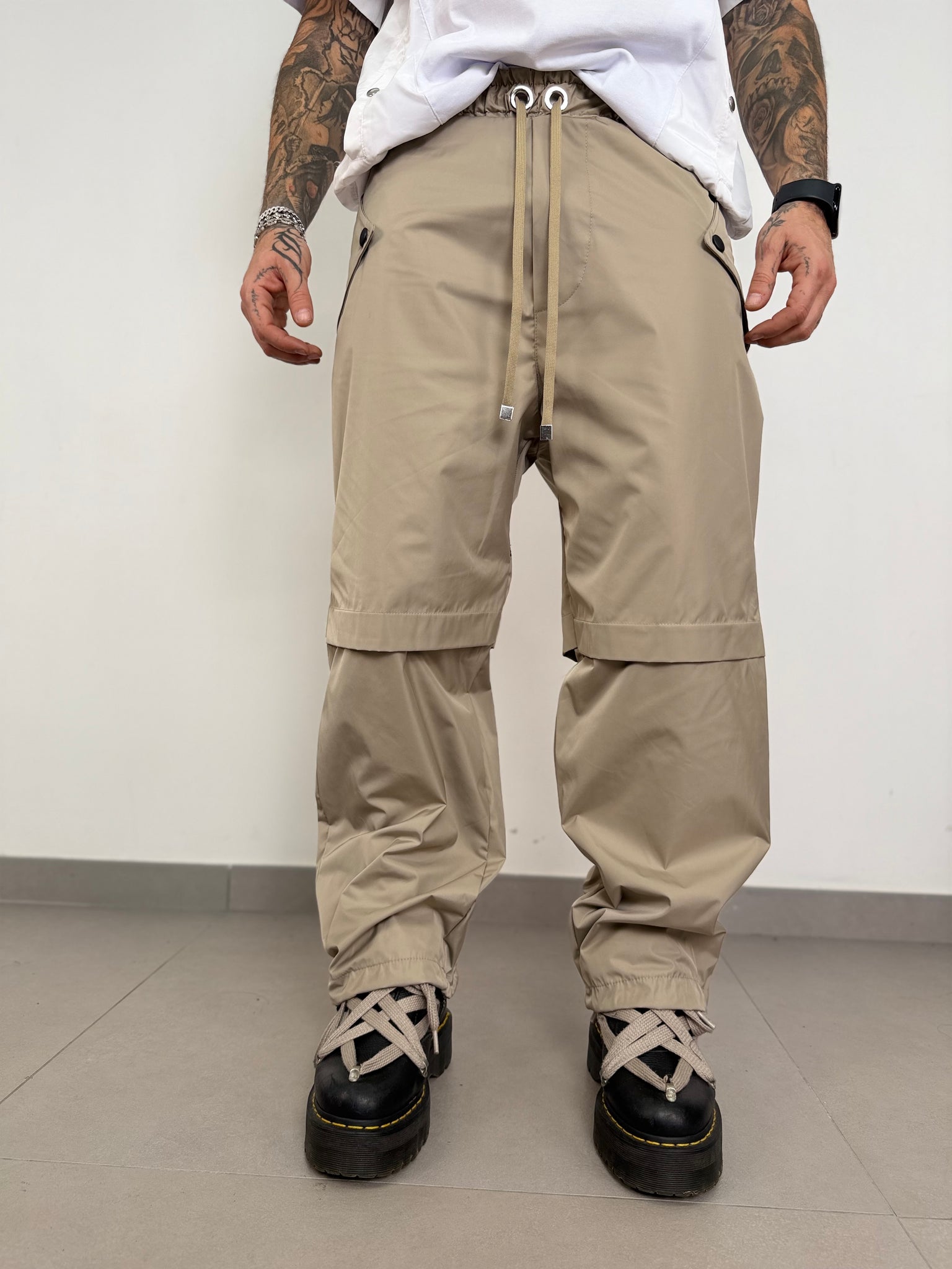 pantalone con elastico e laccio in vita e parachute regolabile sul fondo