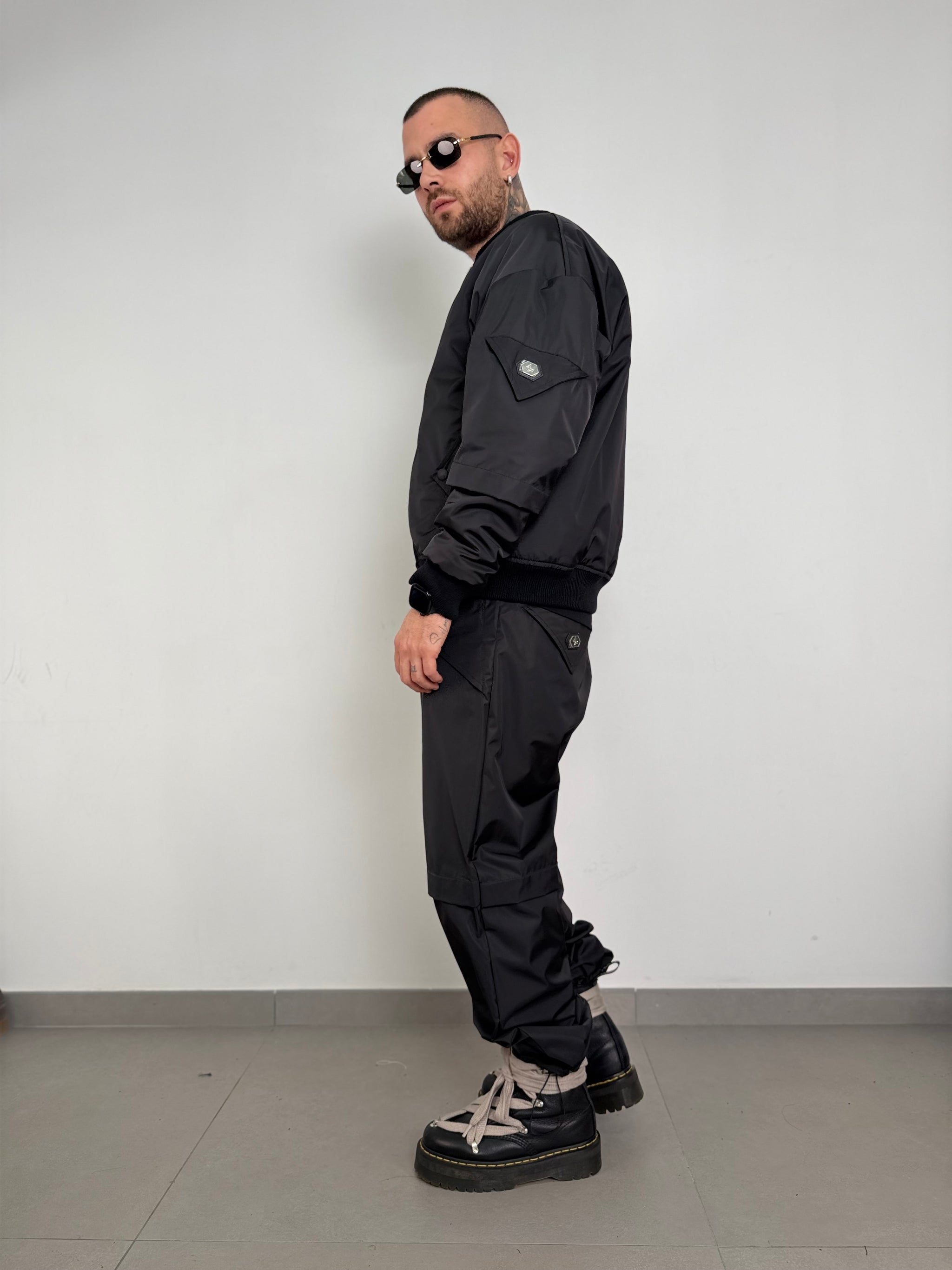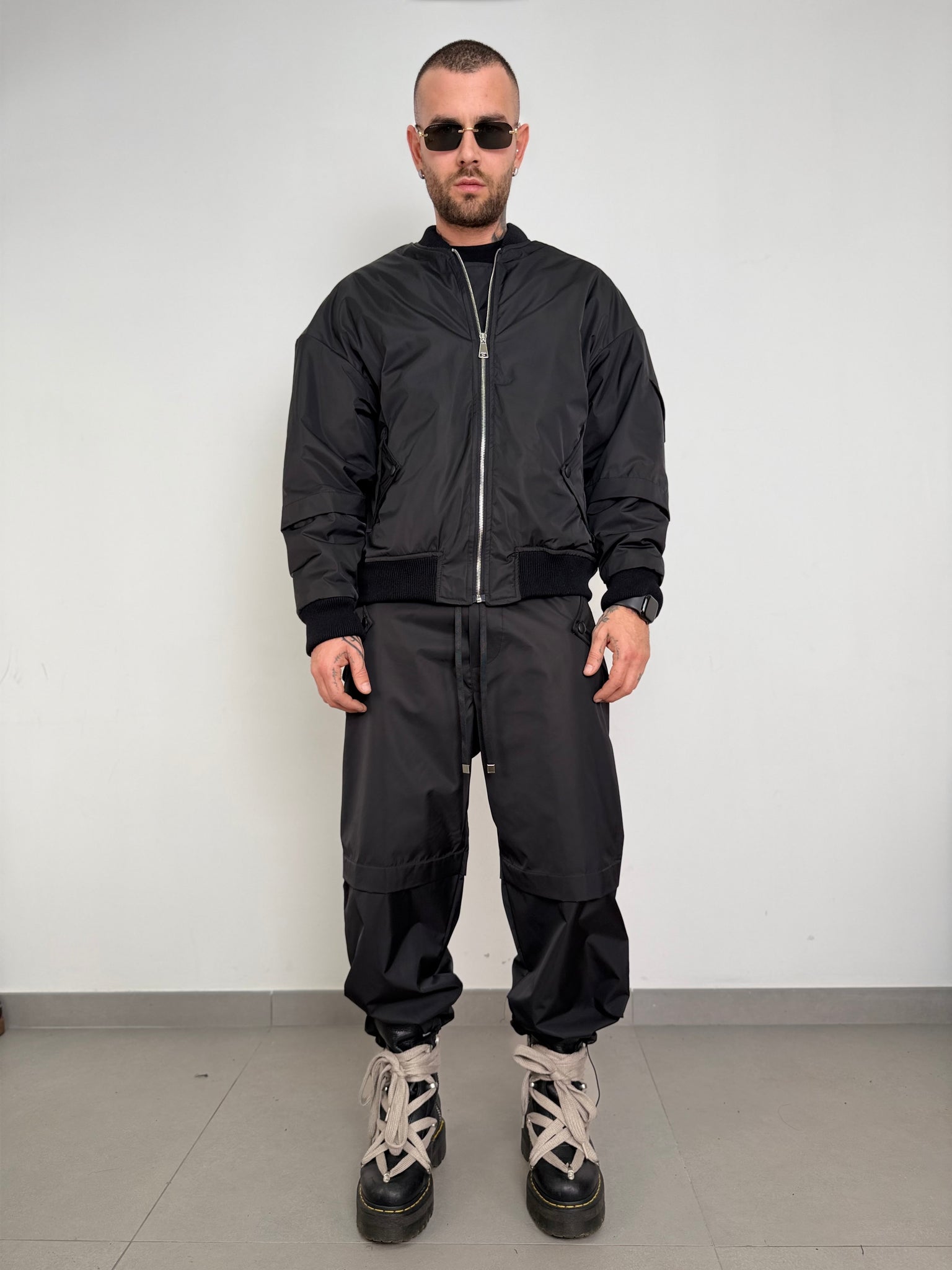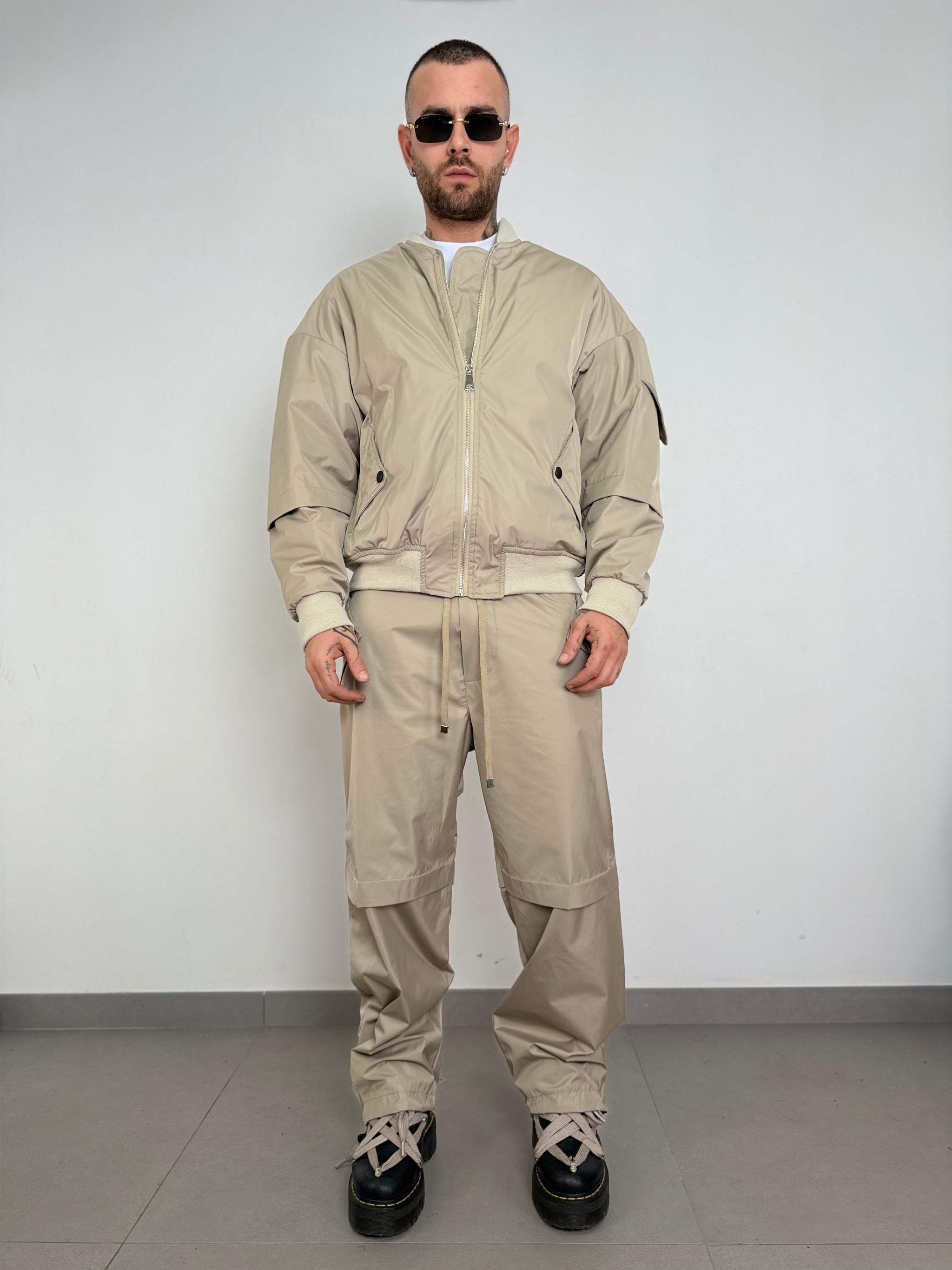 pantalone con elastico e laccio in vita e parachute regolabile sul fondo
