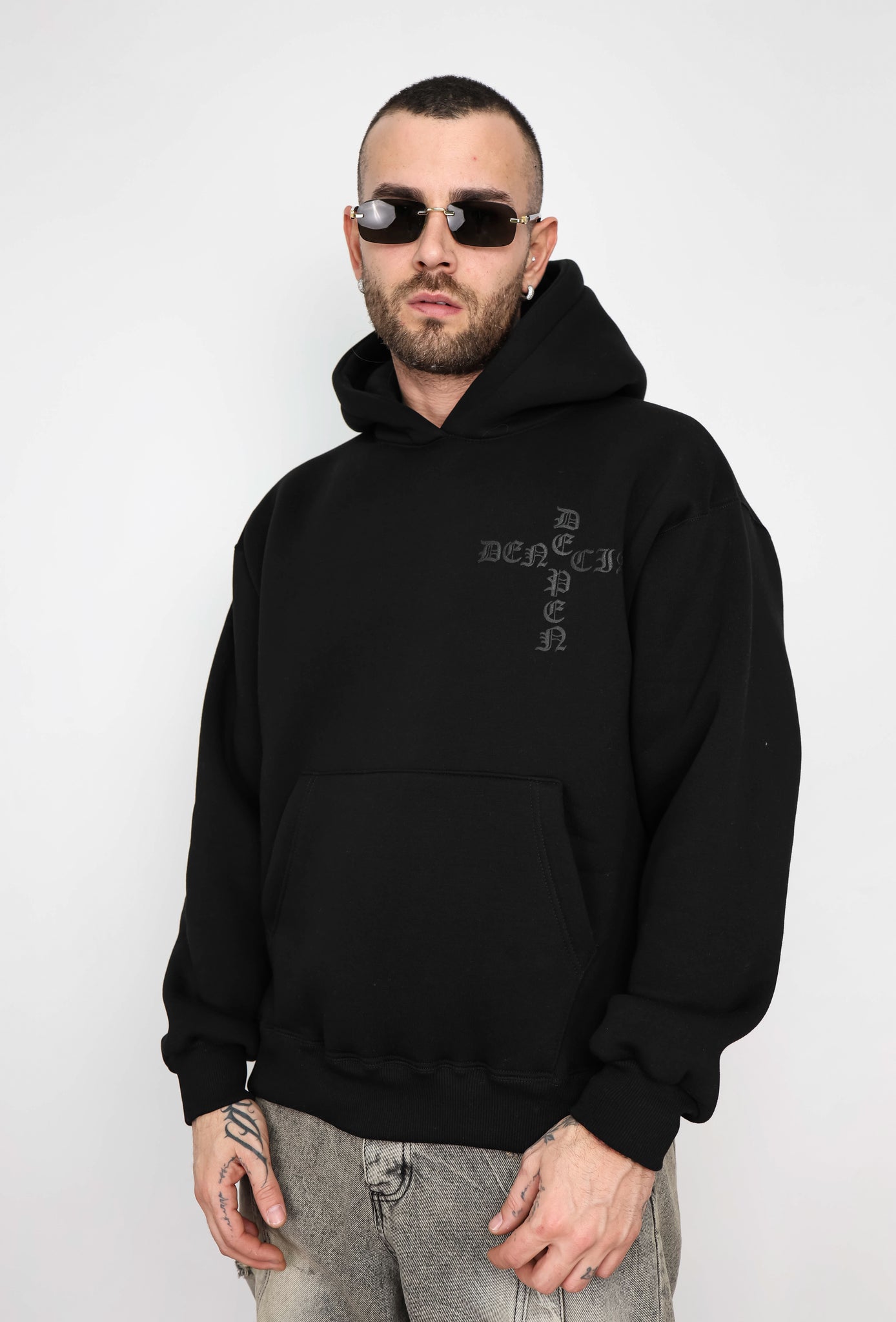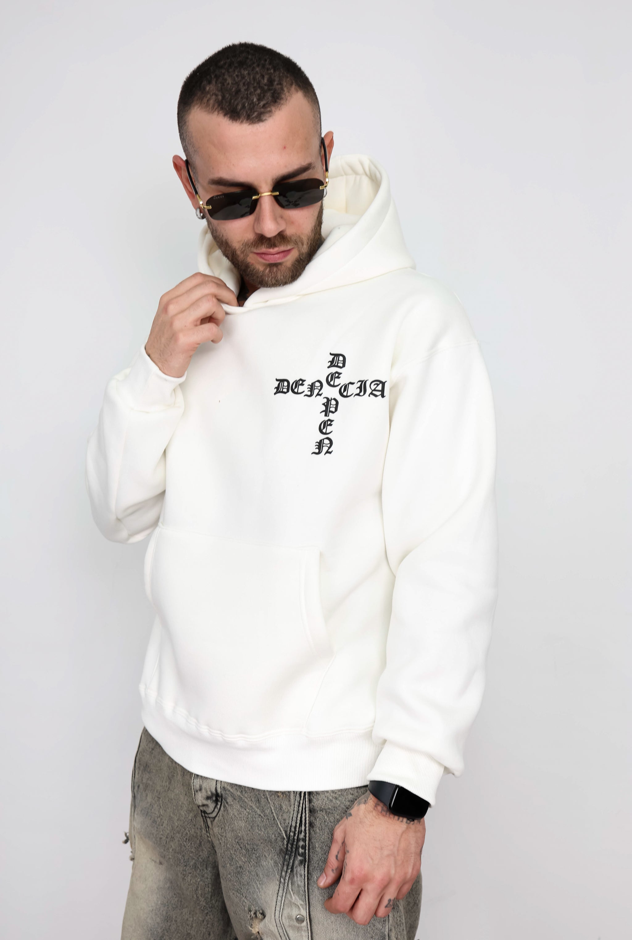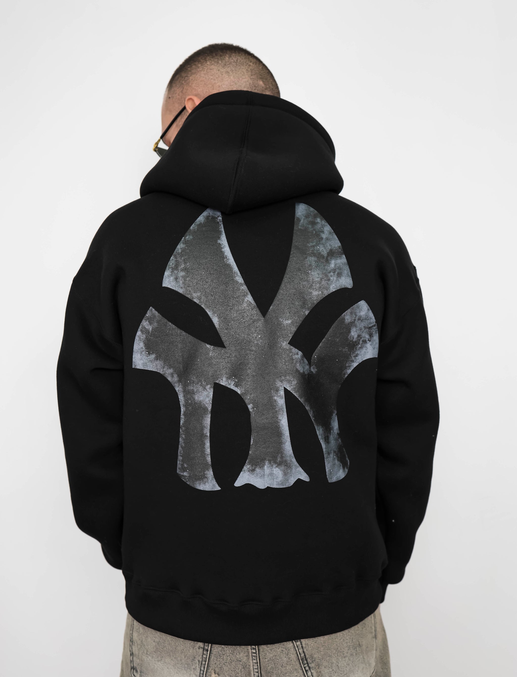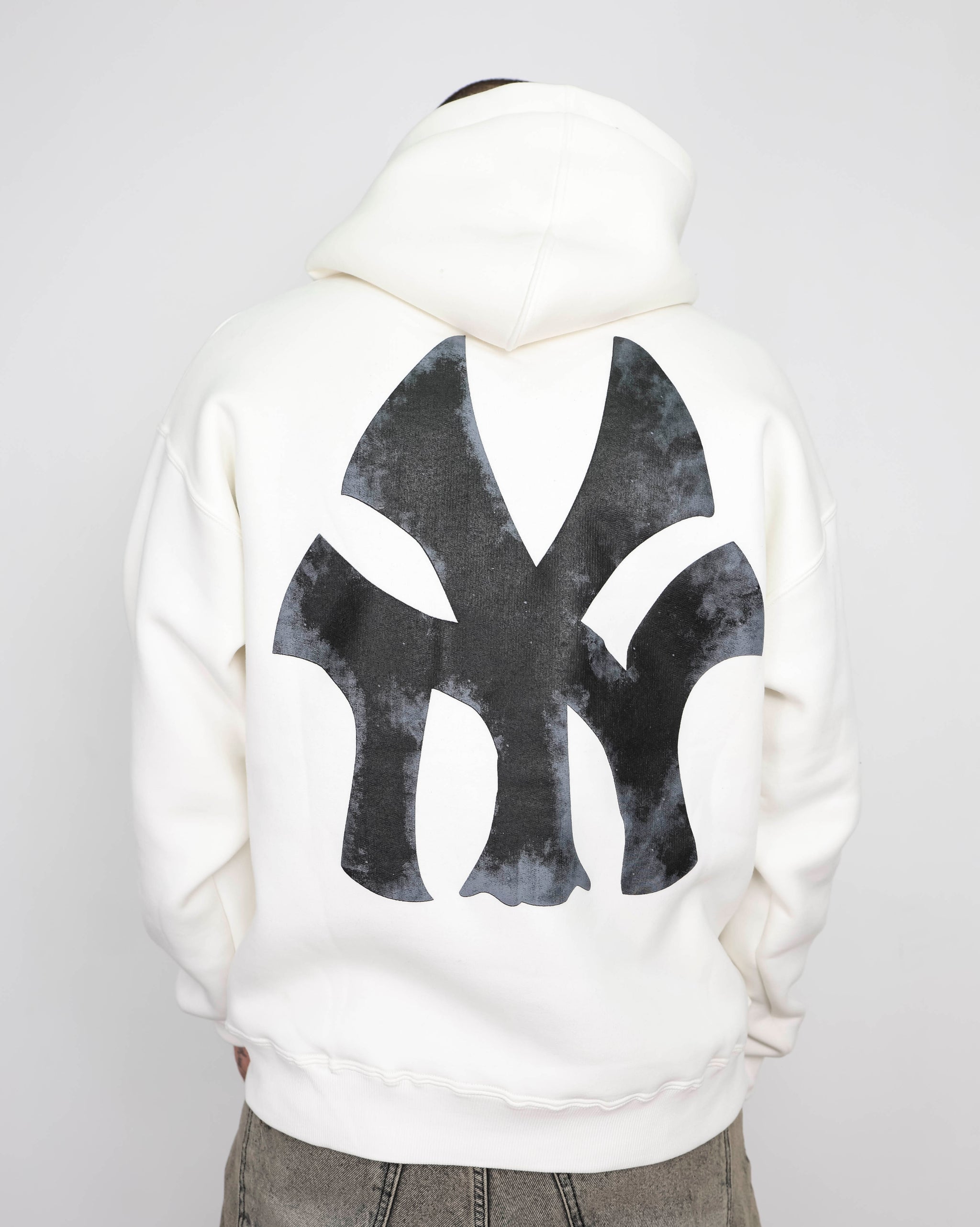 felpa boxy con cappuccio e tascone frontale,con stampa logo in petto e stampa sfumata a contrasto