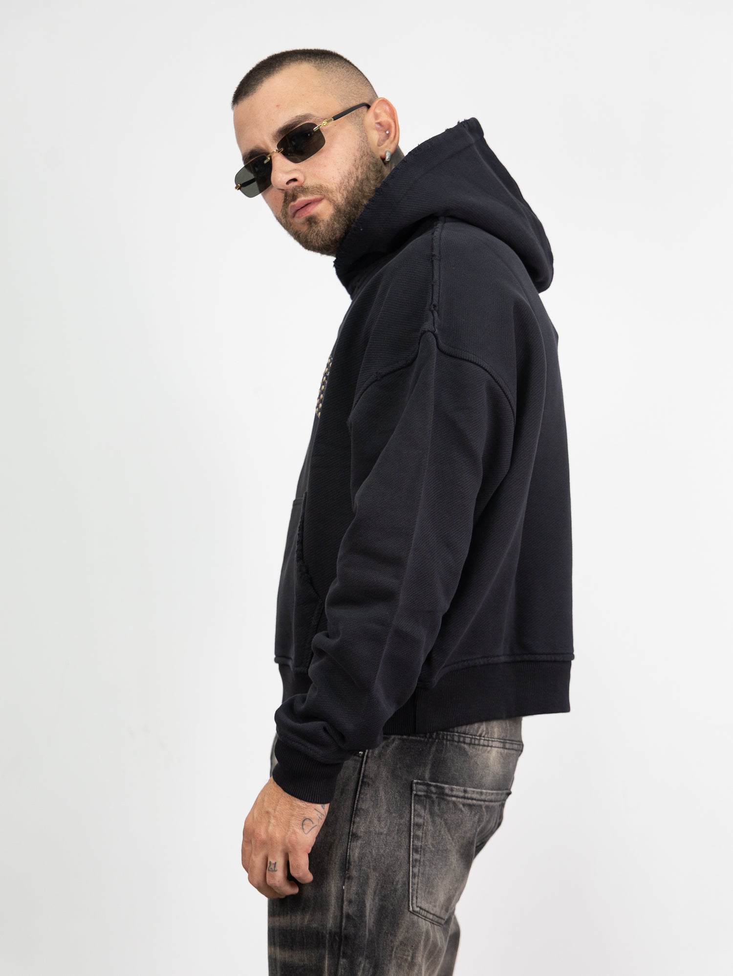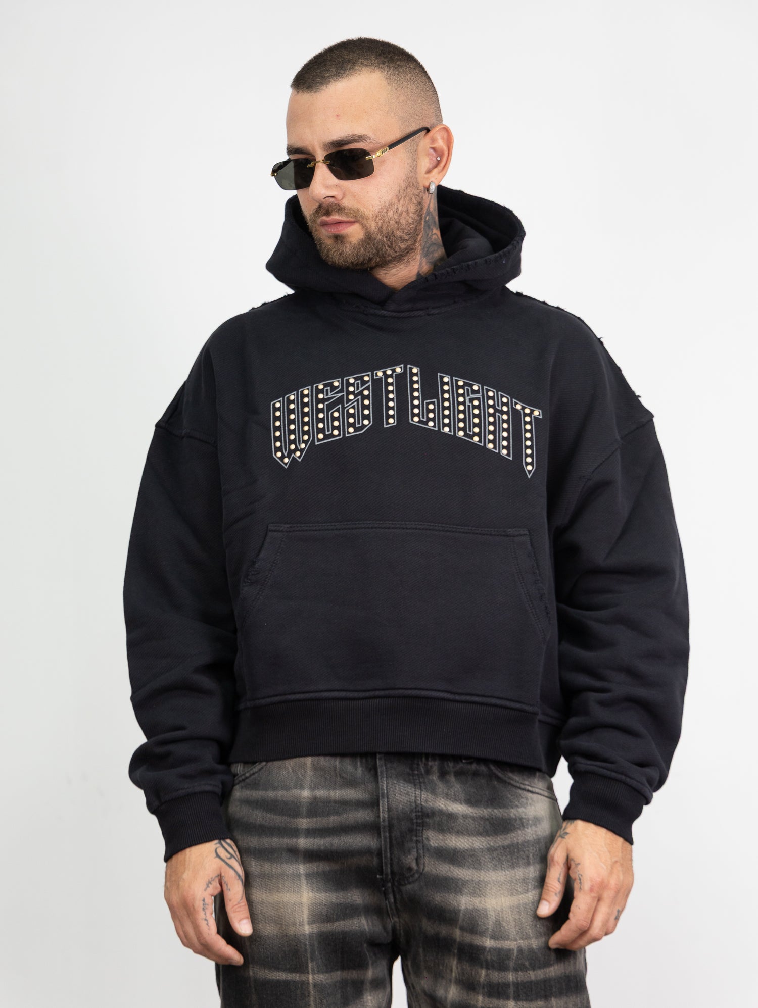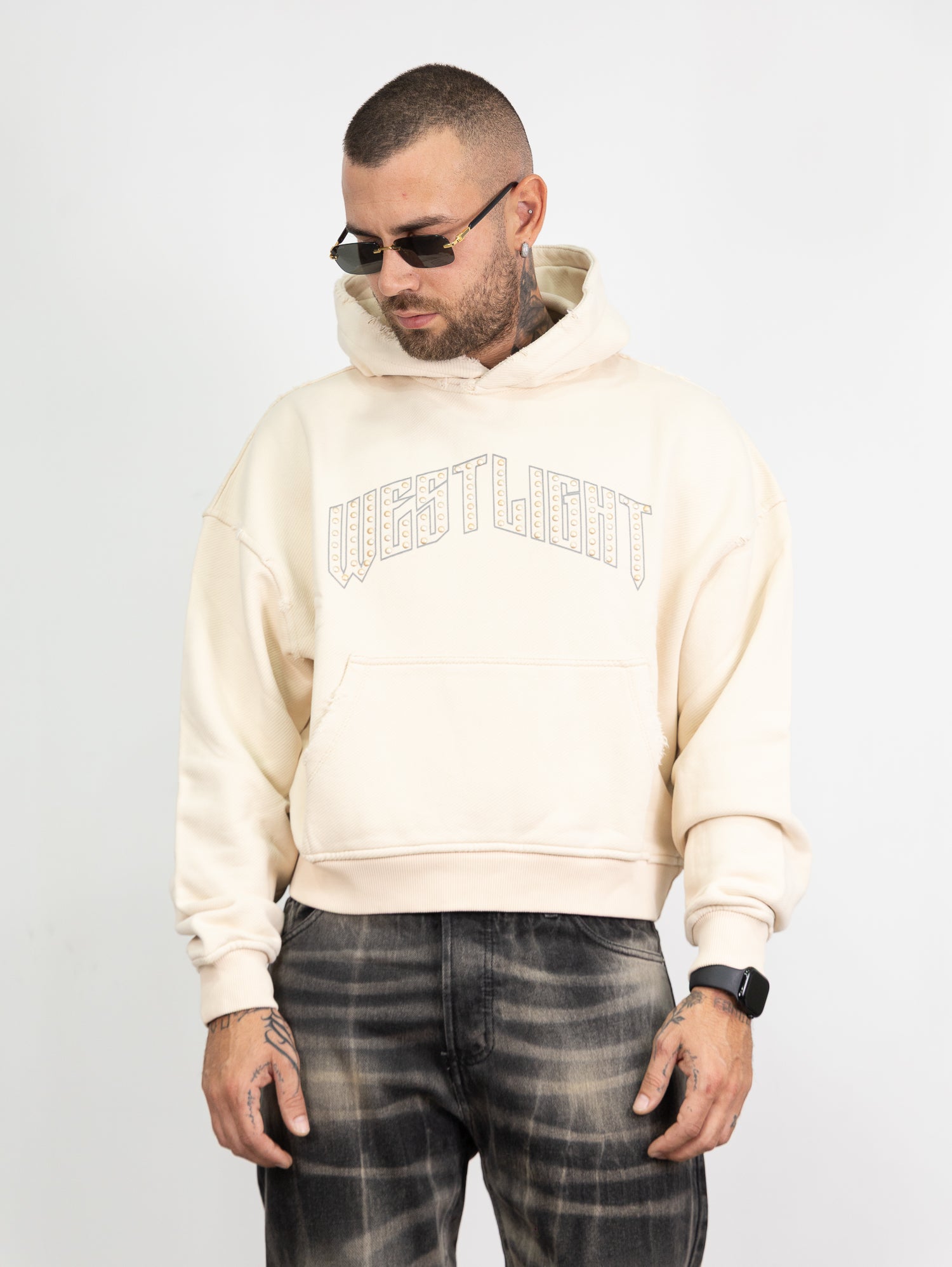 felpa boxy over con cappuccio e stampa logo borchie frontale