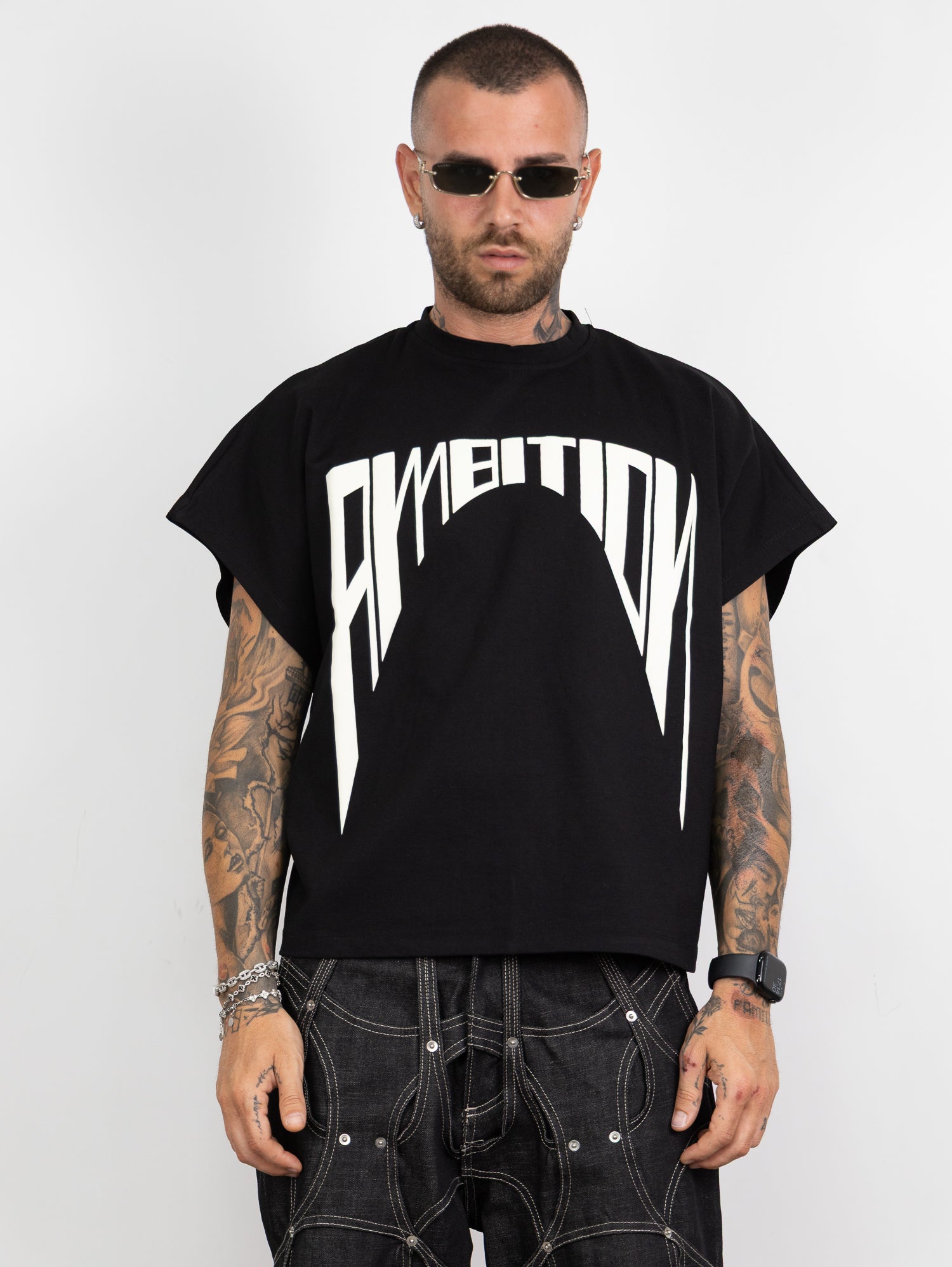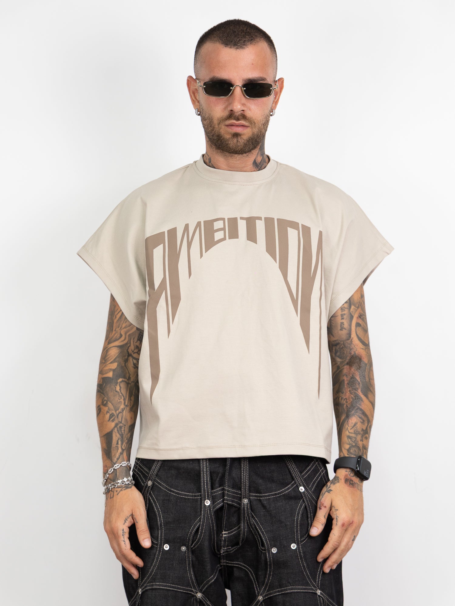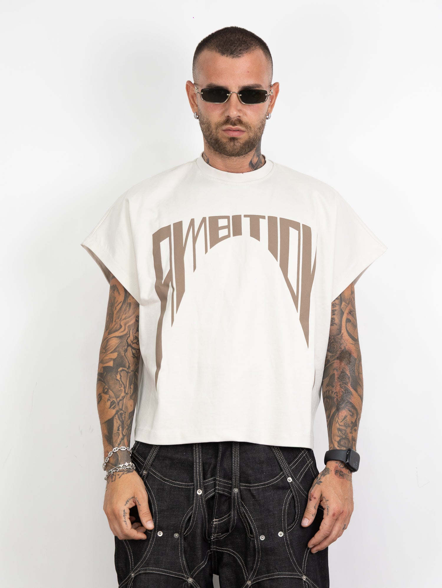 giromanica tessuto milano con stampa colore a contrasto frontale.