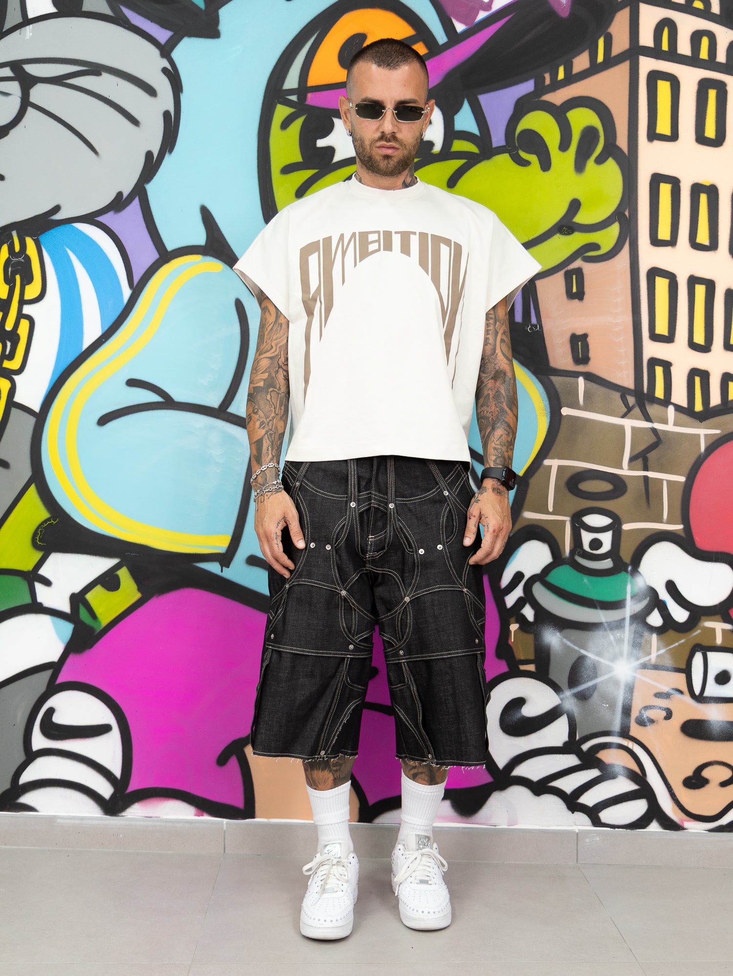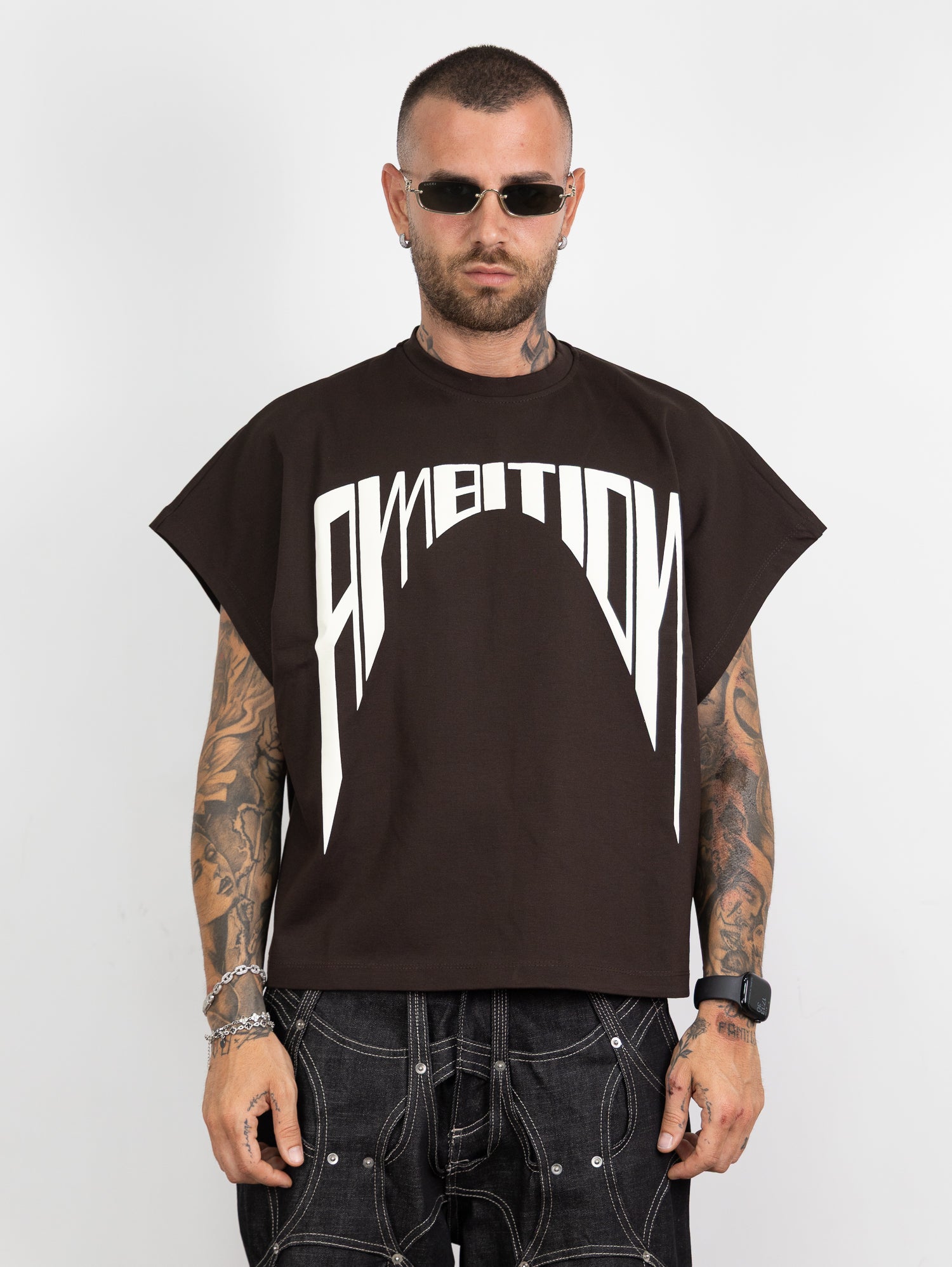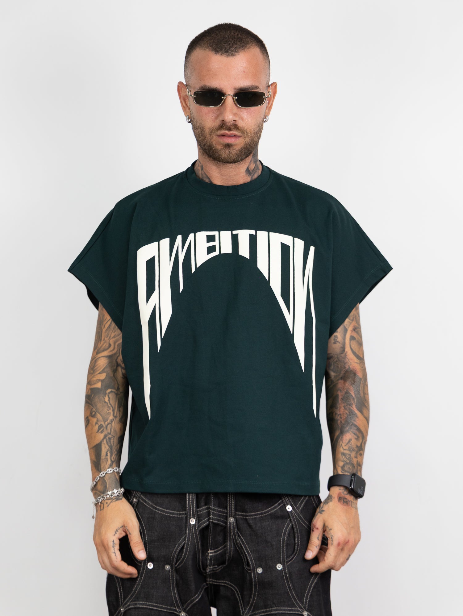 giromanica tessuto milano con stampa colore a contrasto frontale.
