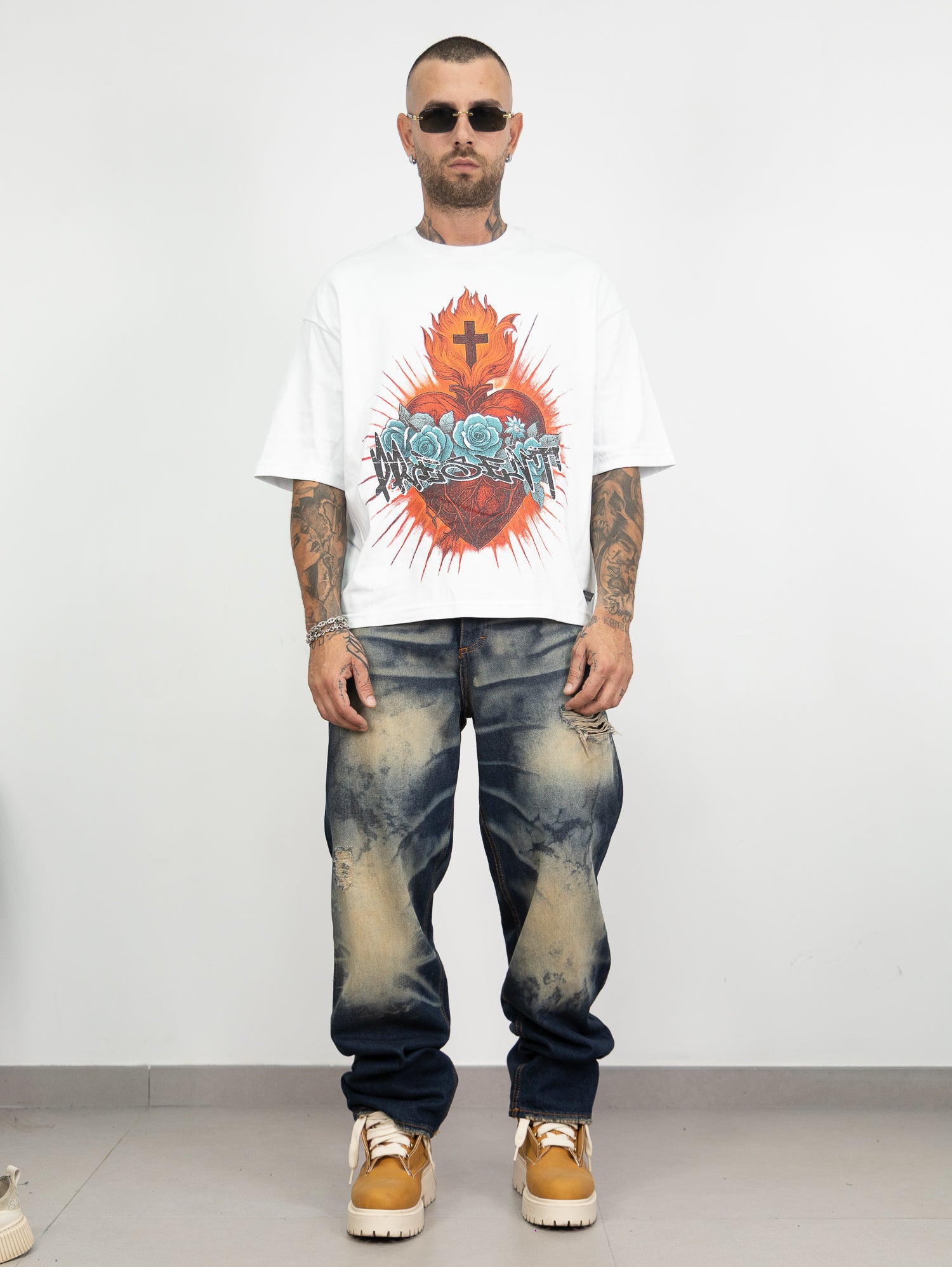 t-shirt over size con stampa frontale