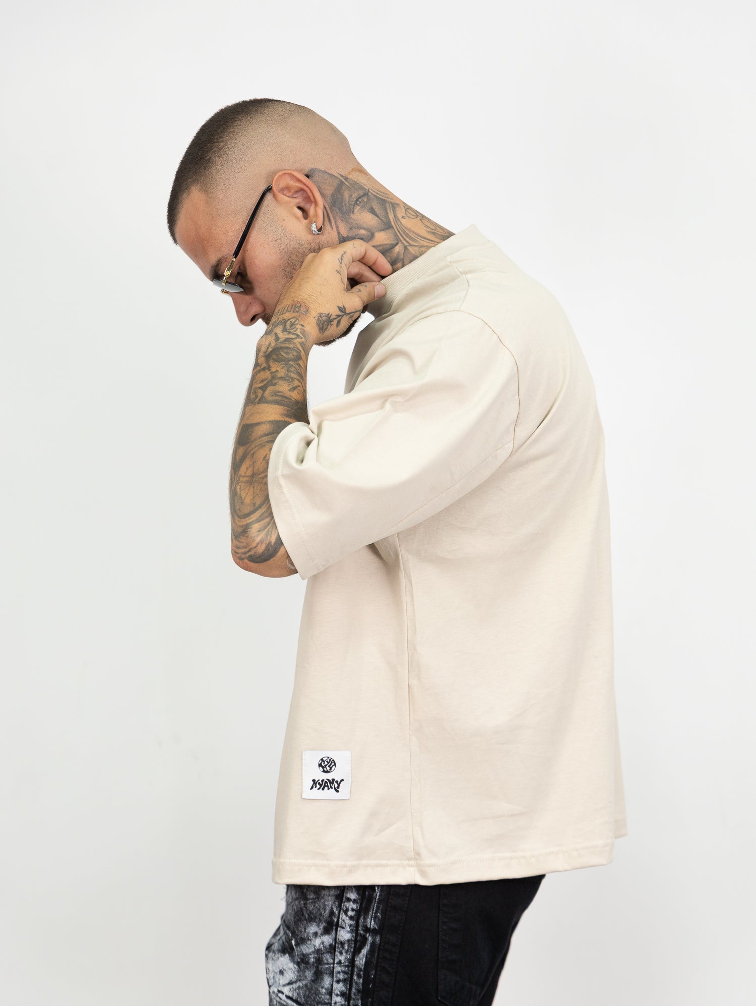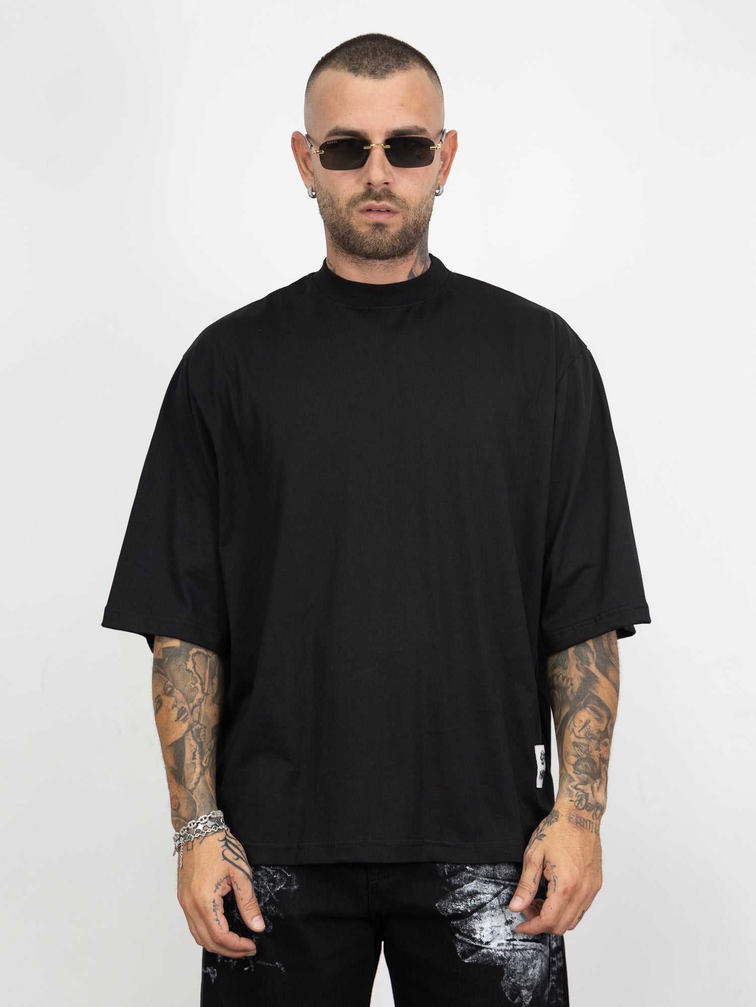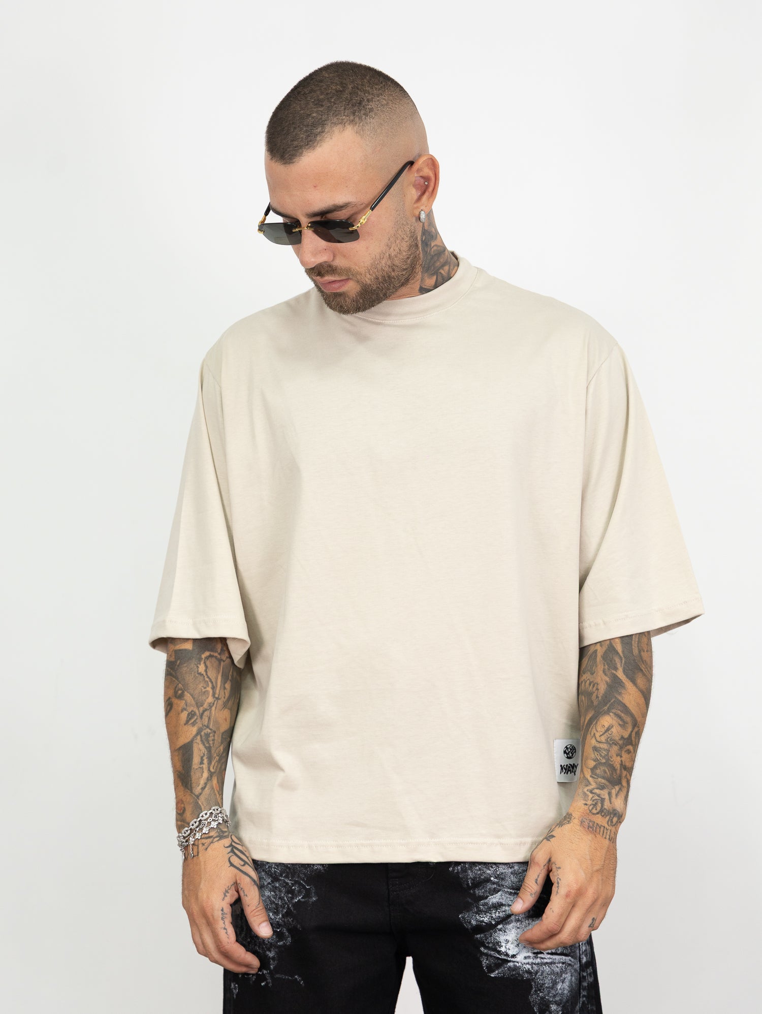 t-shirt over size con stampa retro e dettaglio logo sul fondo