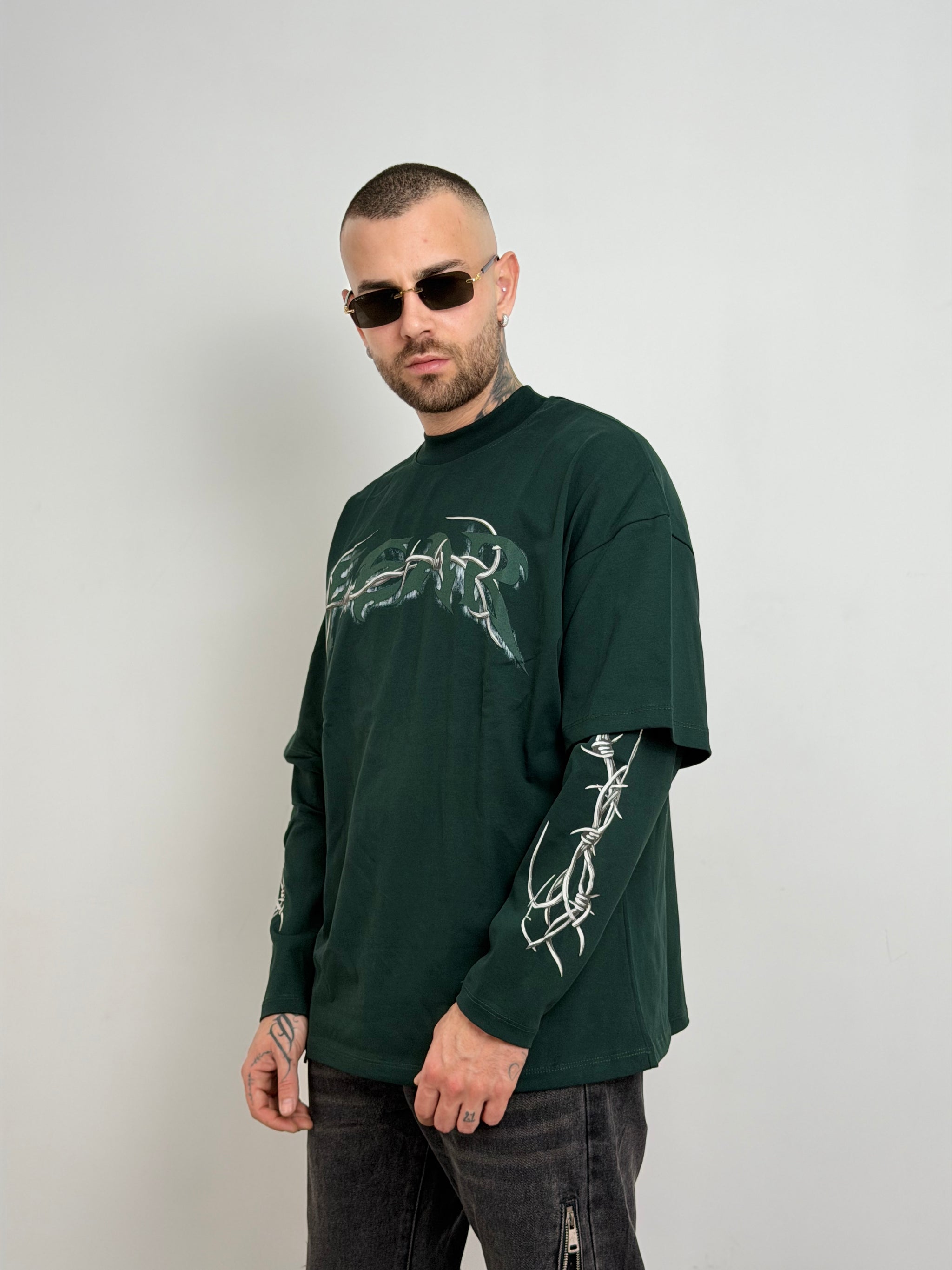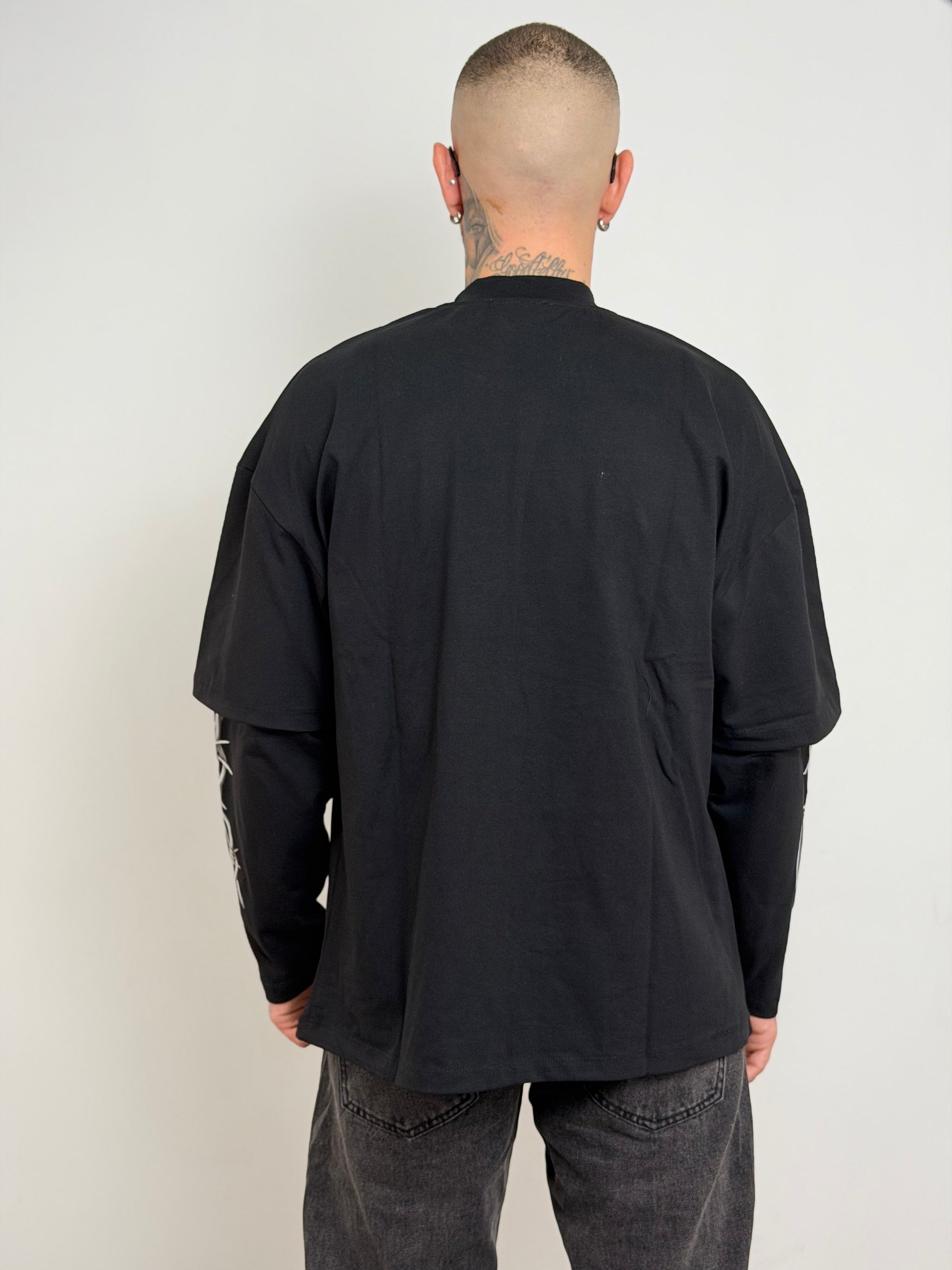 t-shirt doppia manica con stampa a contrasto