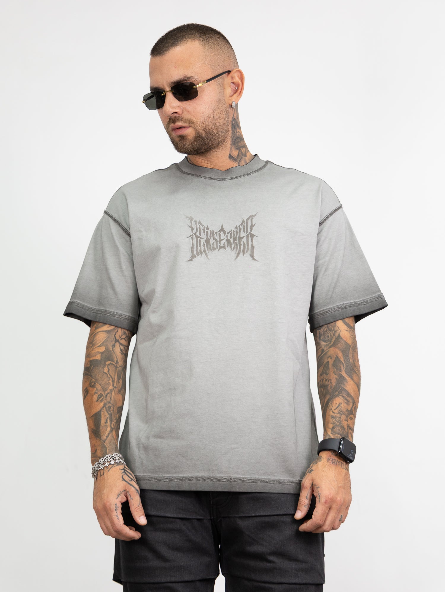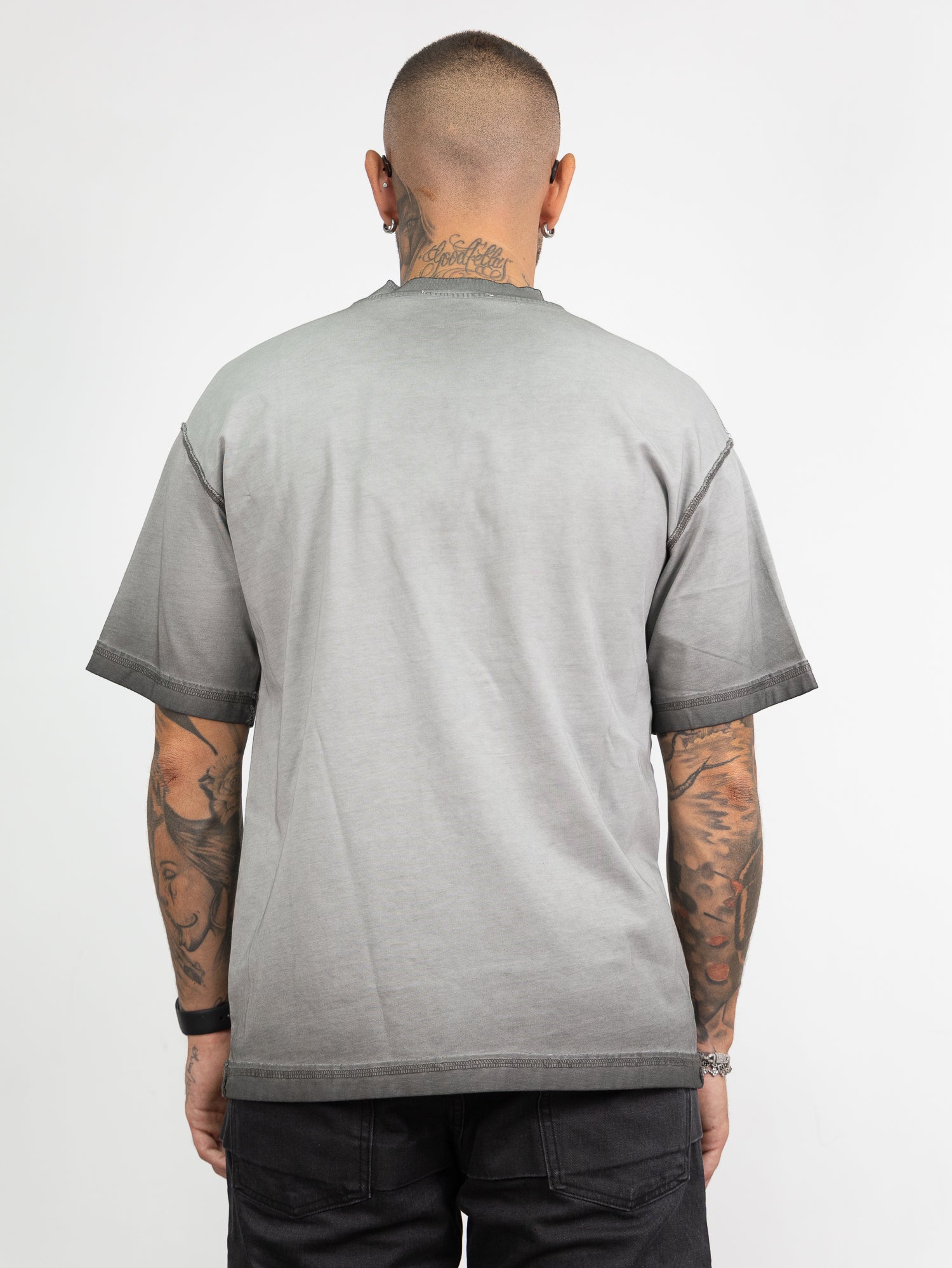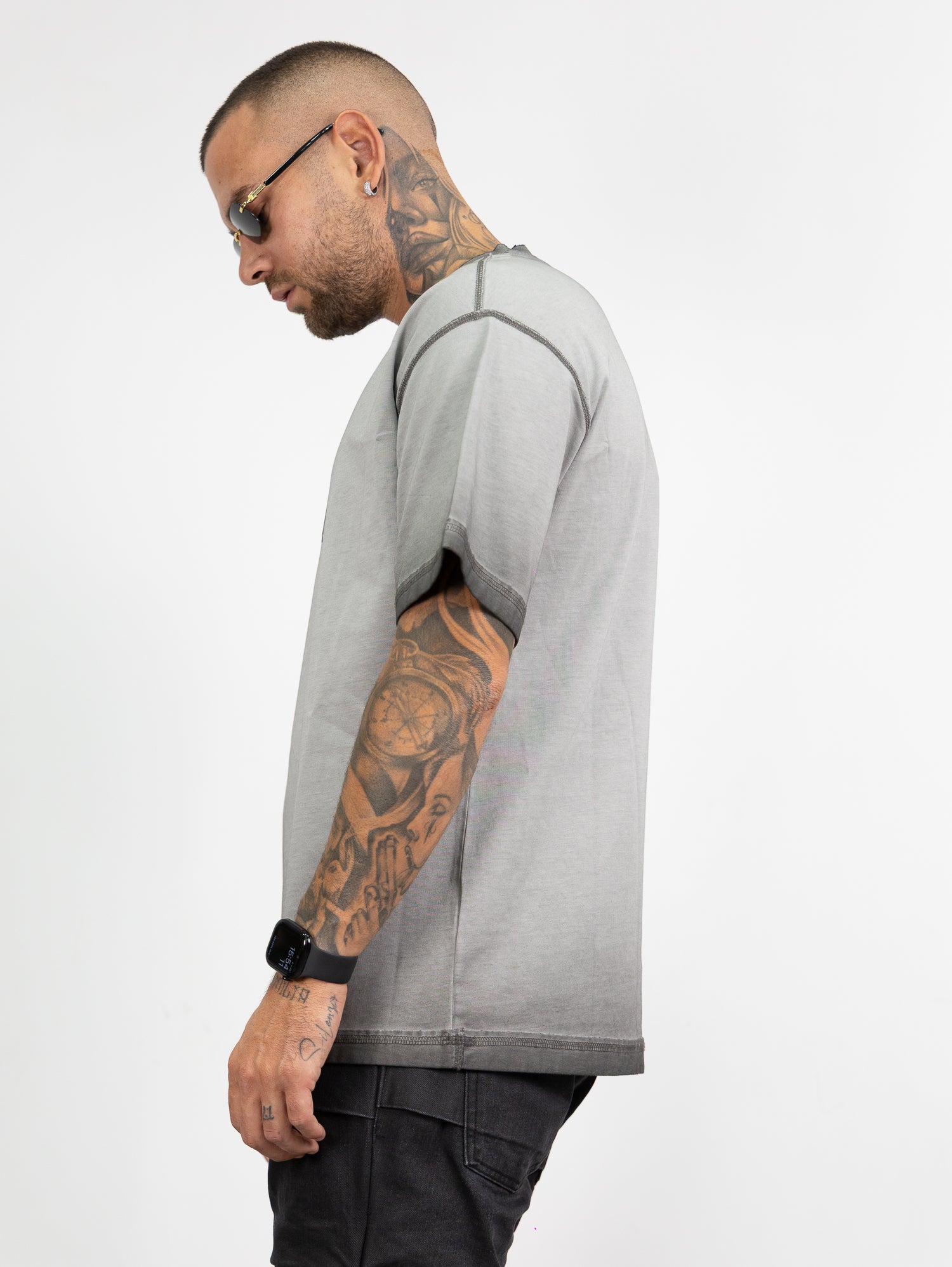 t-shirt over size,sfumata con stampa frontale e cuciture esterne in rilievo