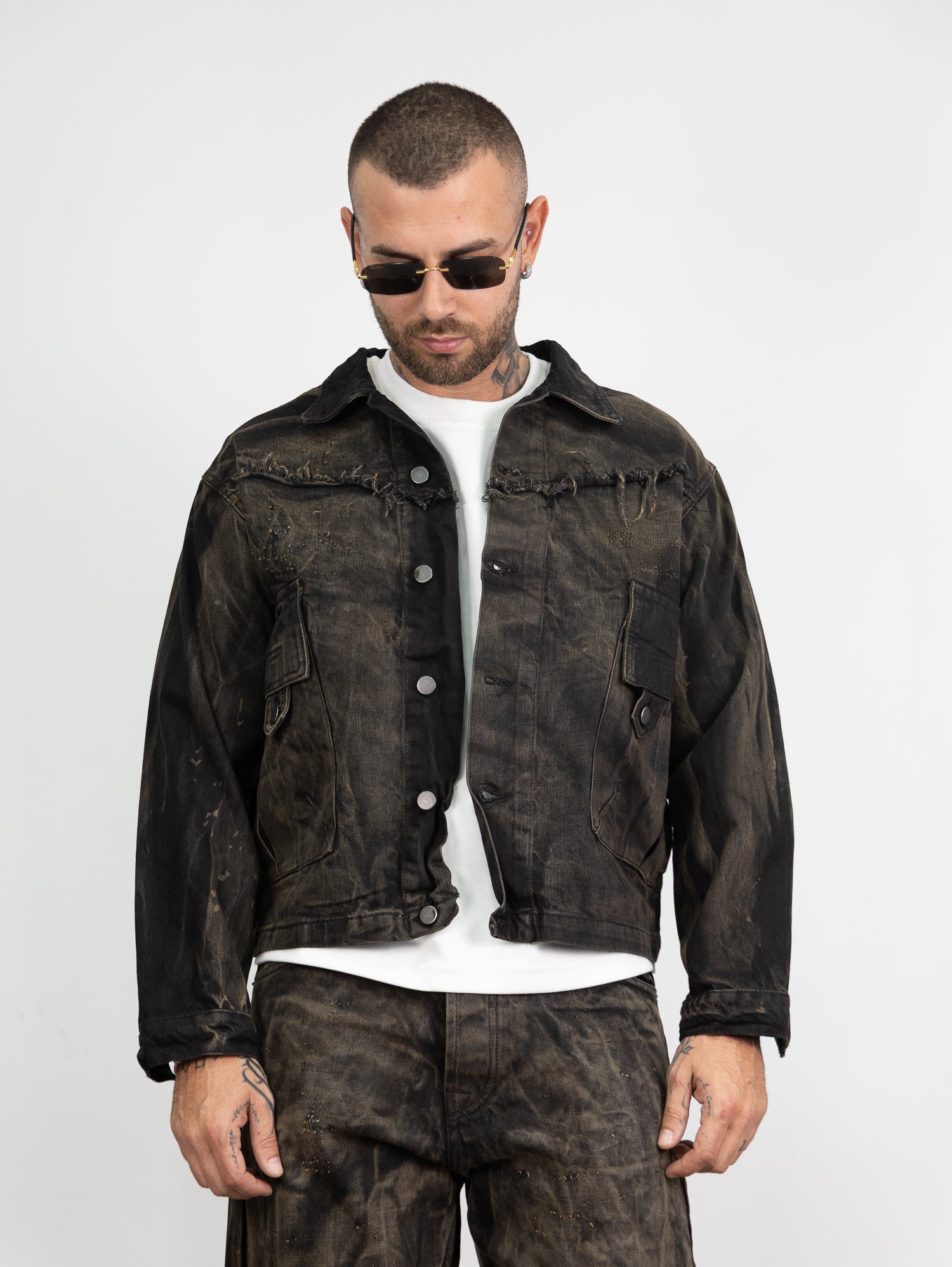 Jacket con bottoni apribili,tasconi frontali e dettaglitaglio vivo fronte\retro