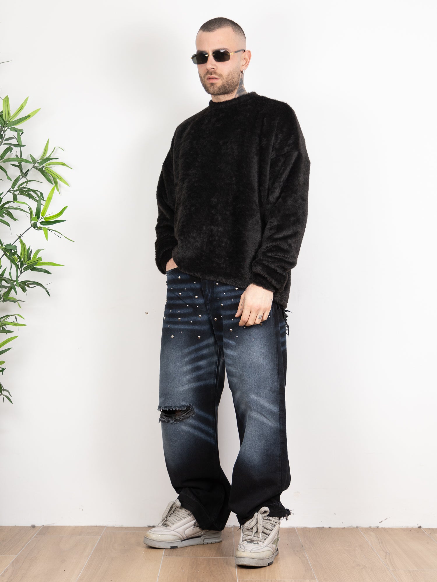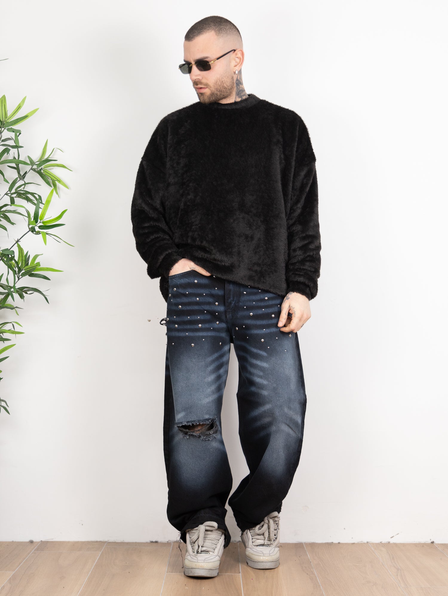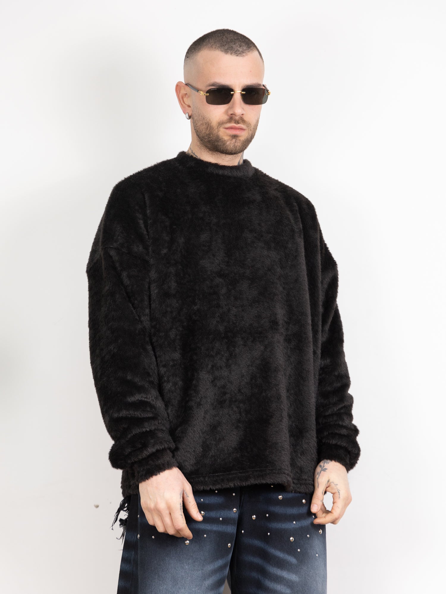 shirt girocollo peluche con dettaglio catenina in oro retro.