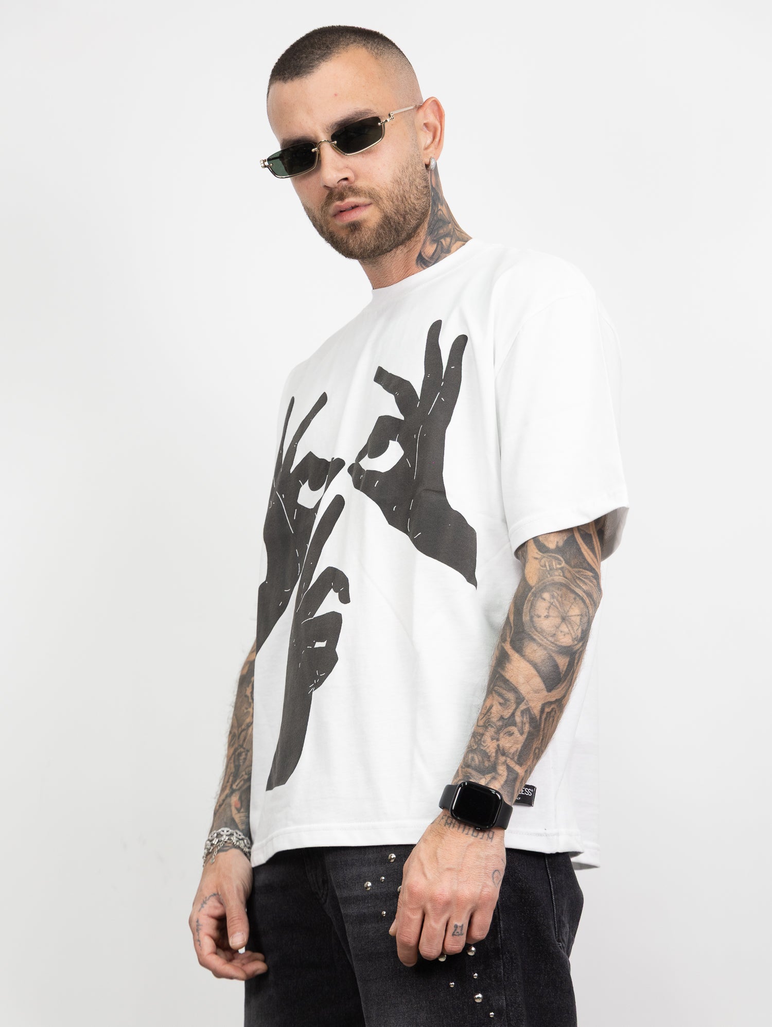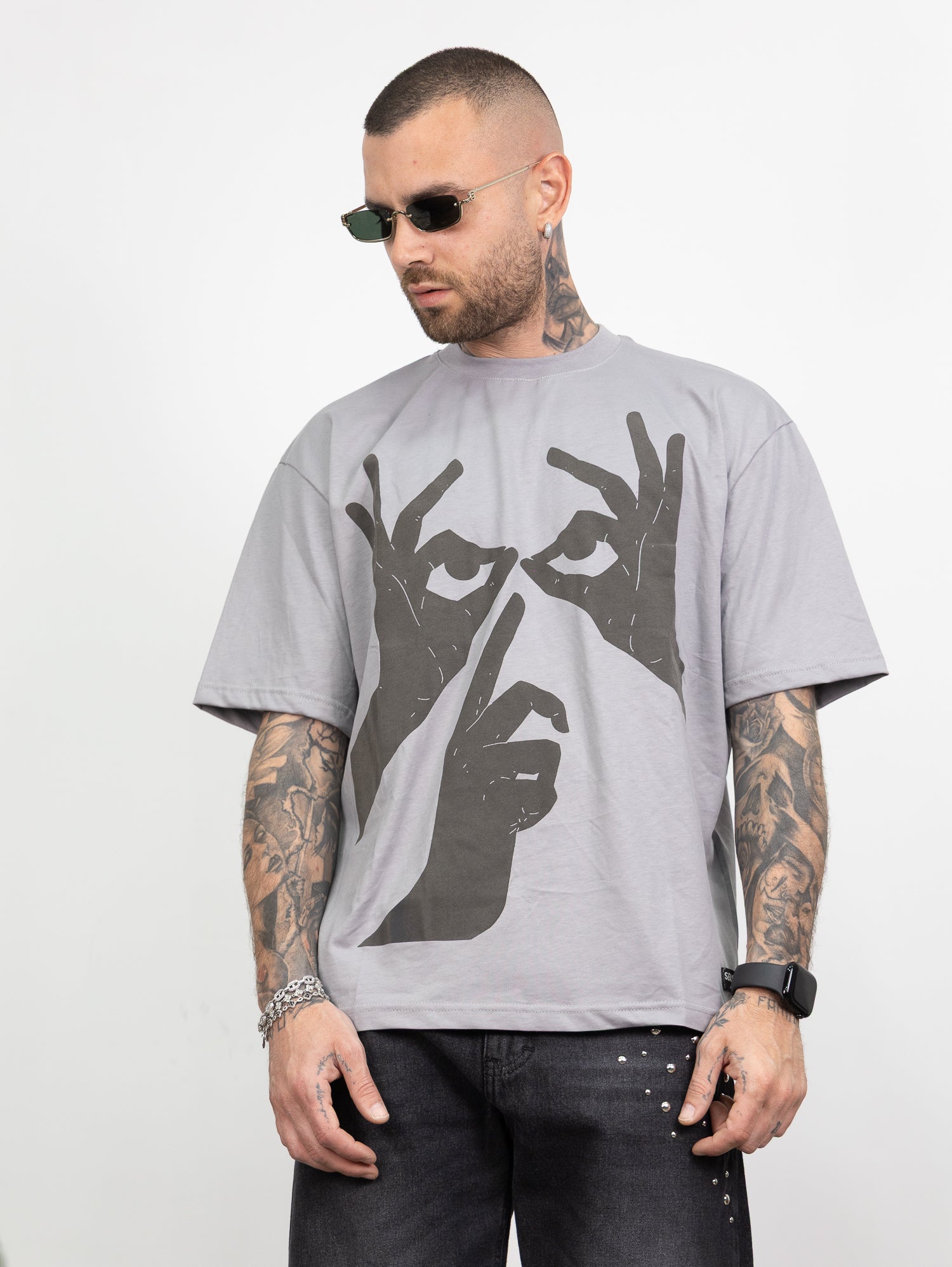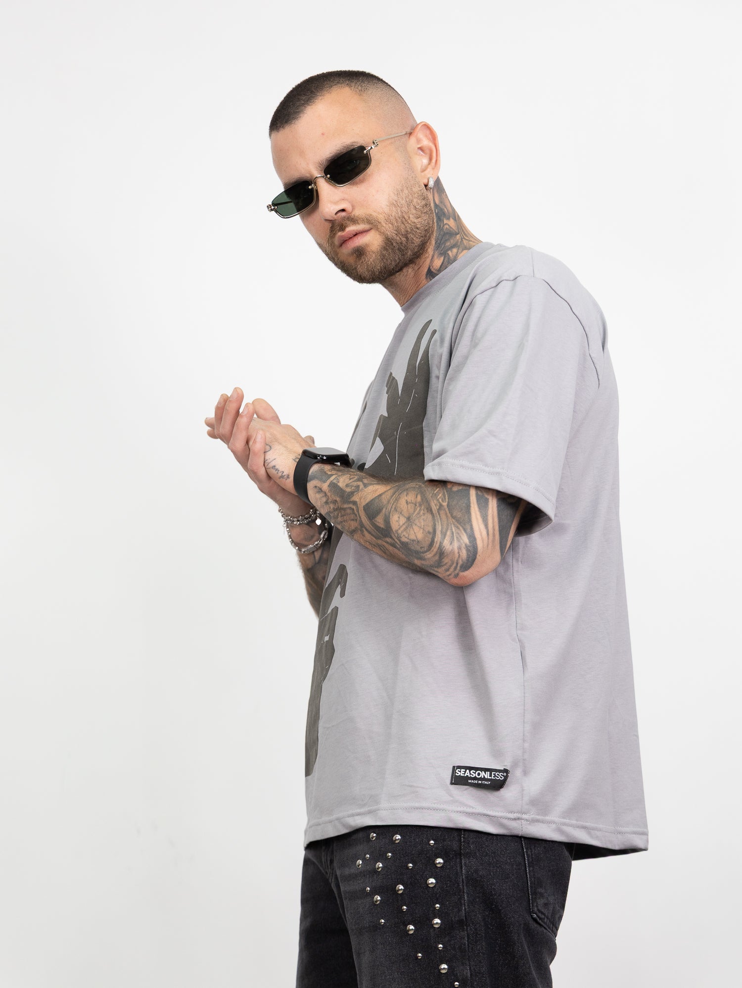 T-shirt oversize,con stampa frontale a contrasto e logo sul fondo.