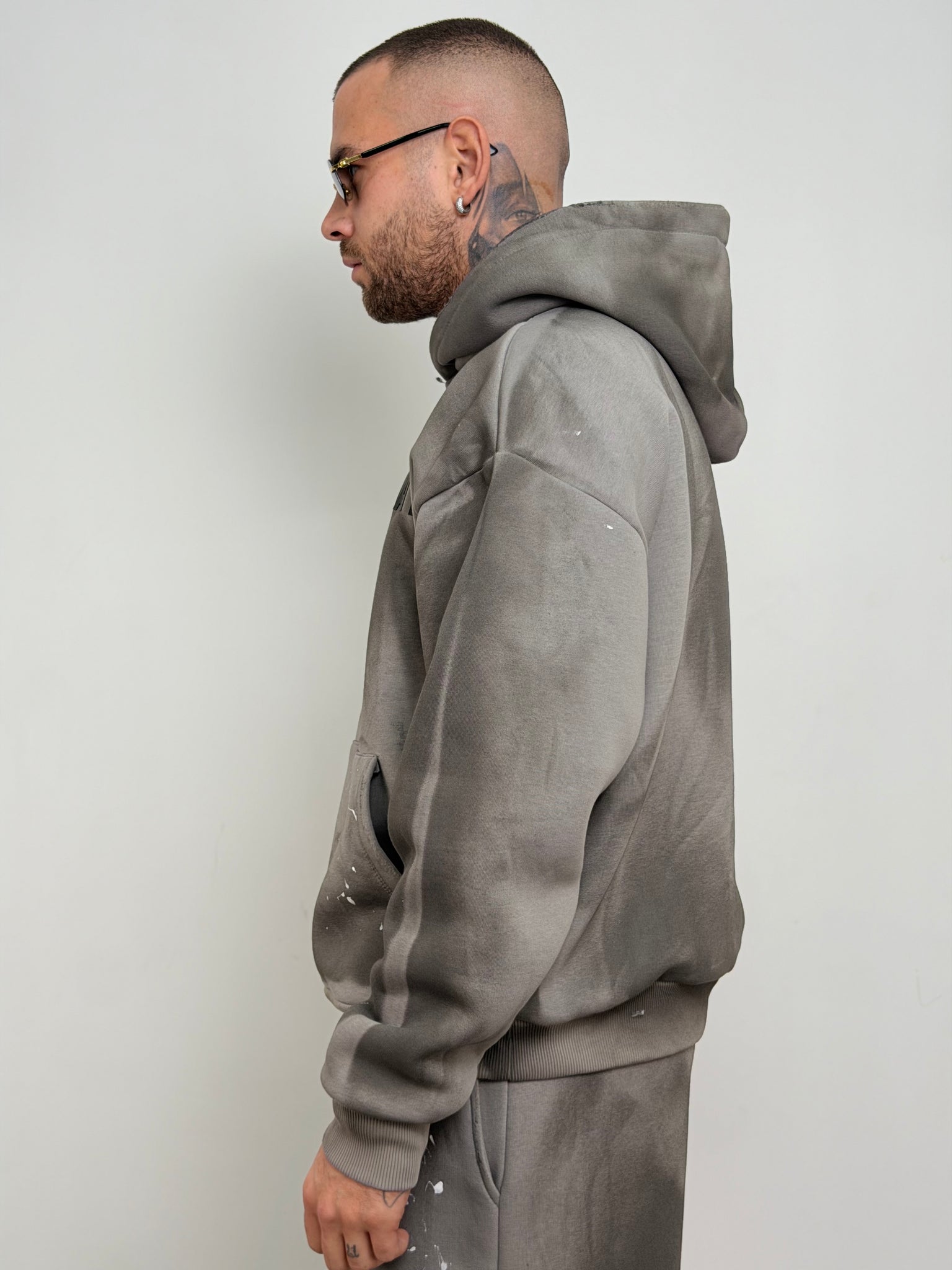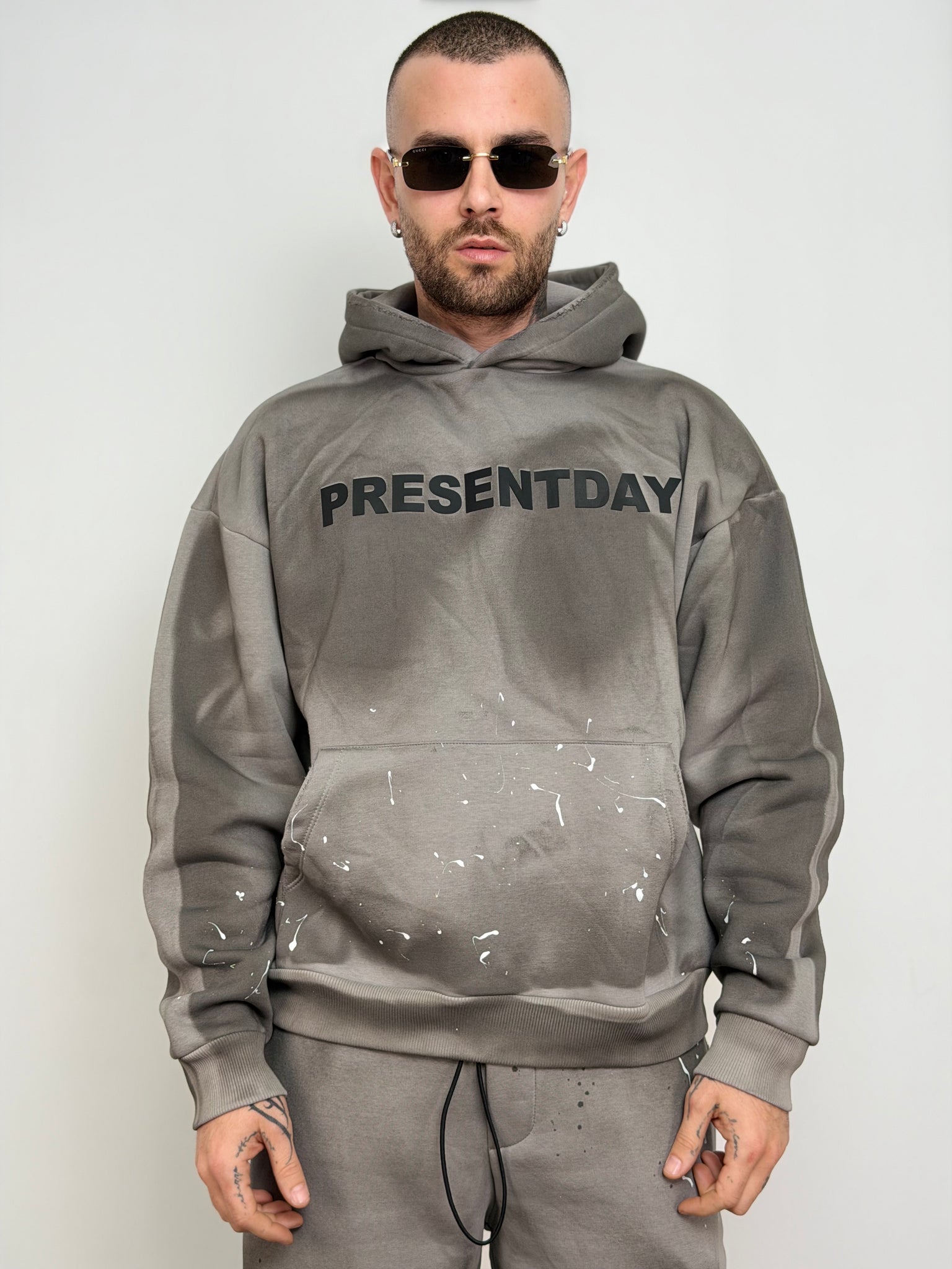 felpa boxy con cappuccio e stampa frontale con schizzi di pittura