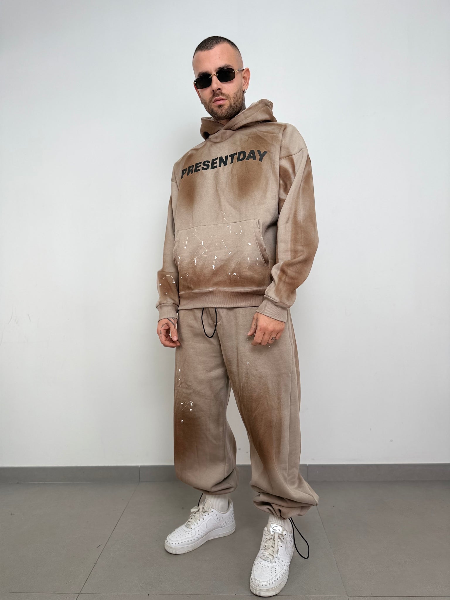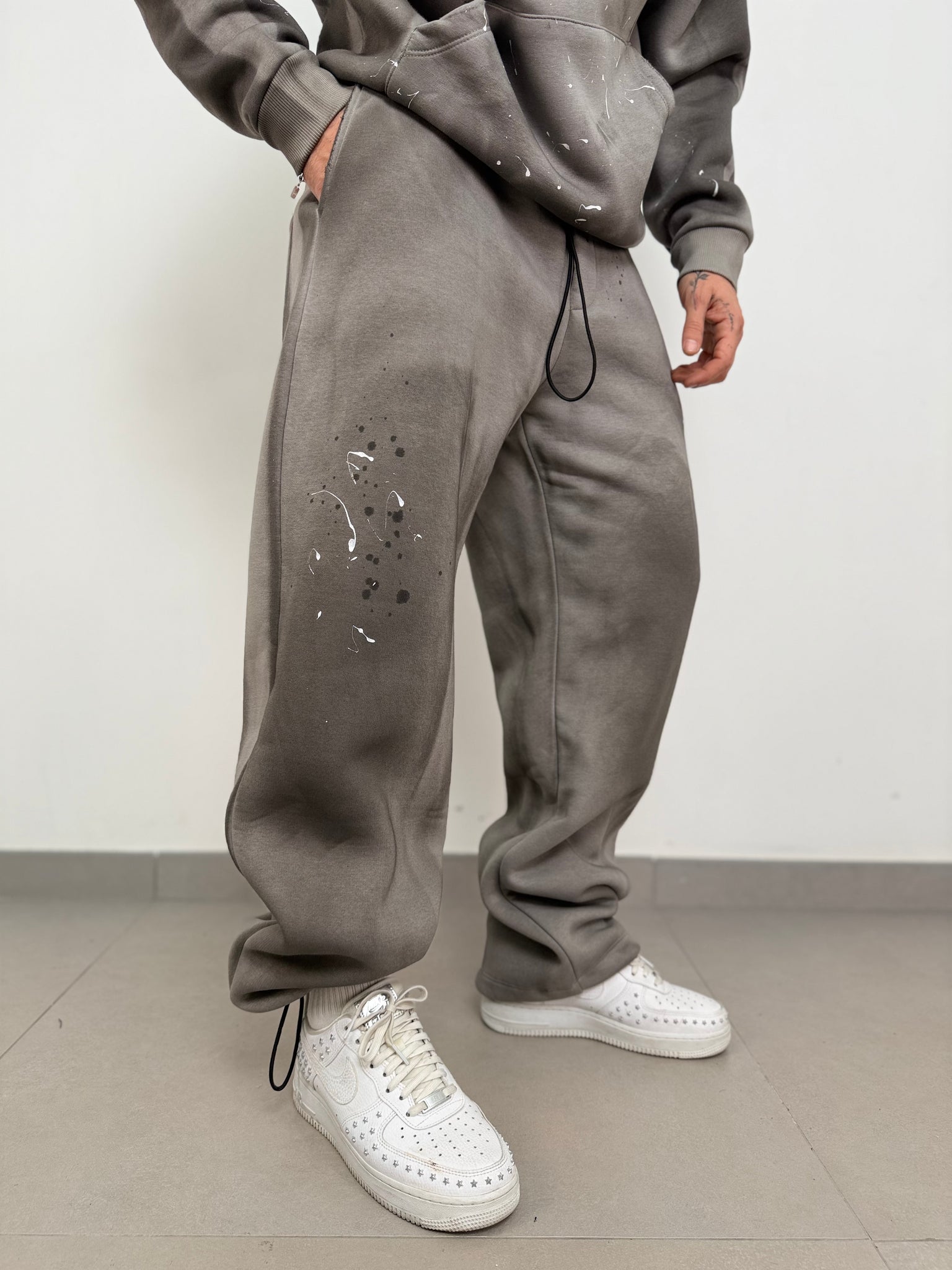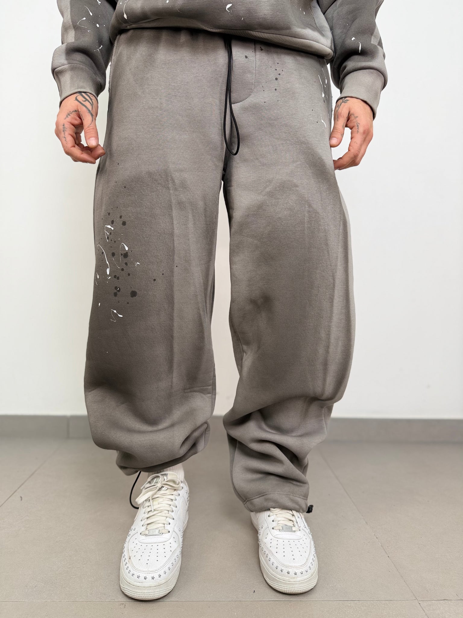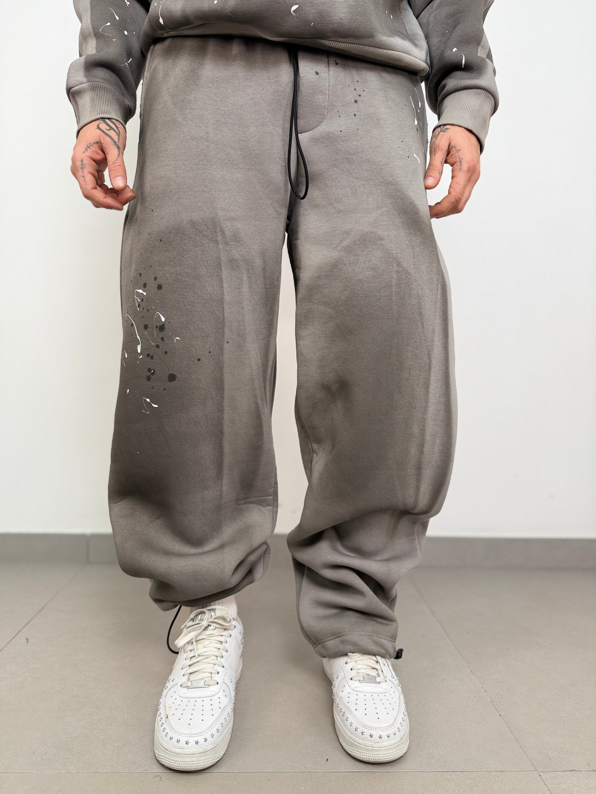 pantatuta con elastico e laccio in vita e parachute regolabile sul fondo con schizzi di pittura