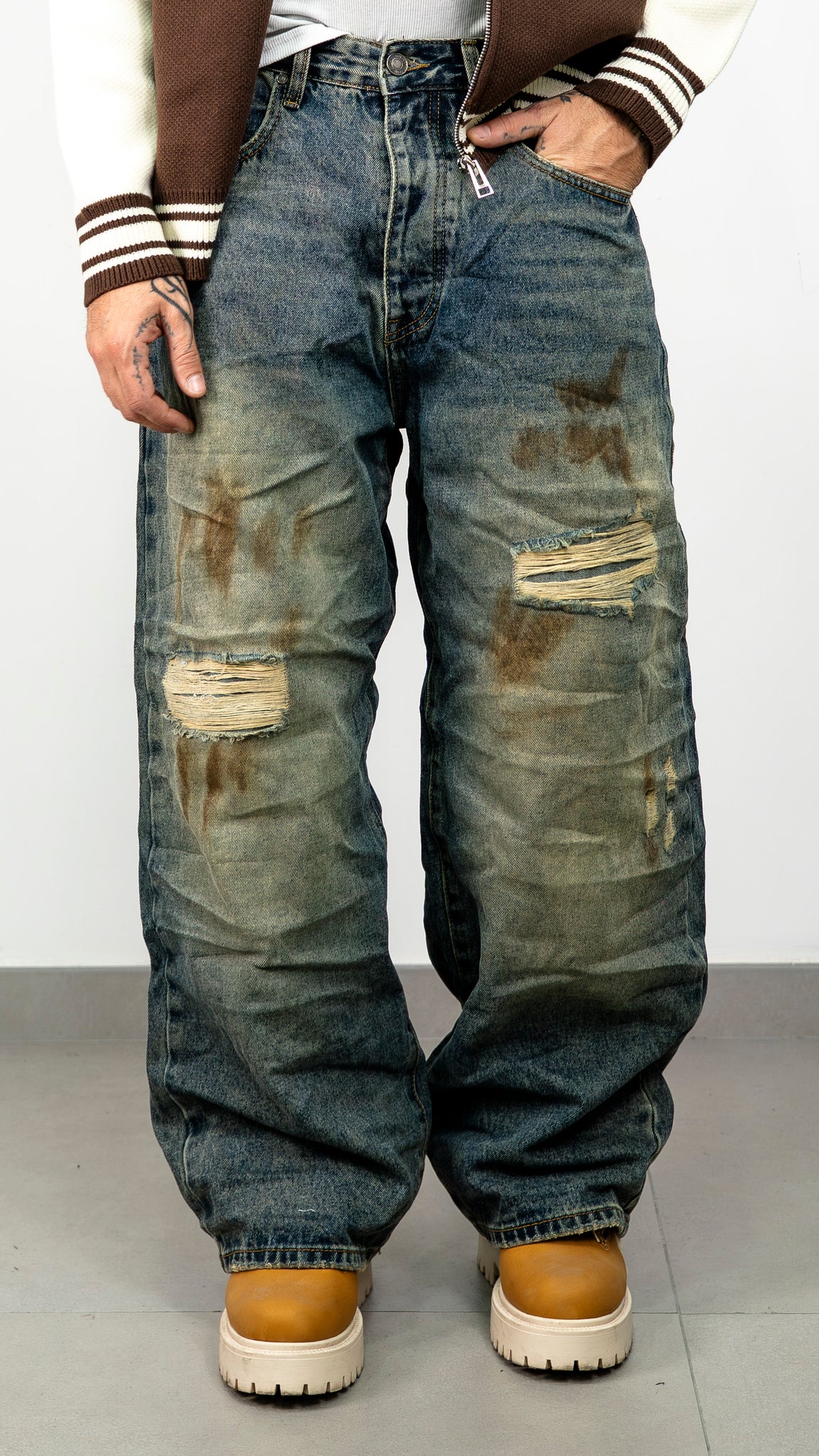 baggy sfumato doppio colore con rotture frontali