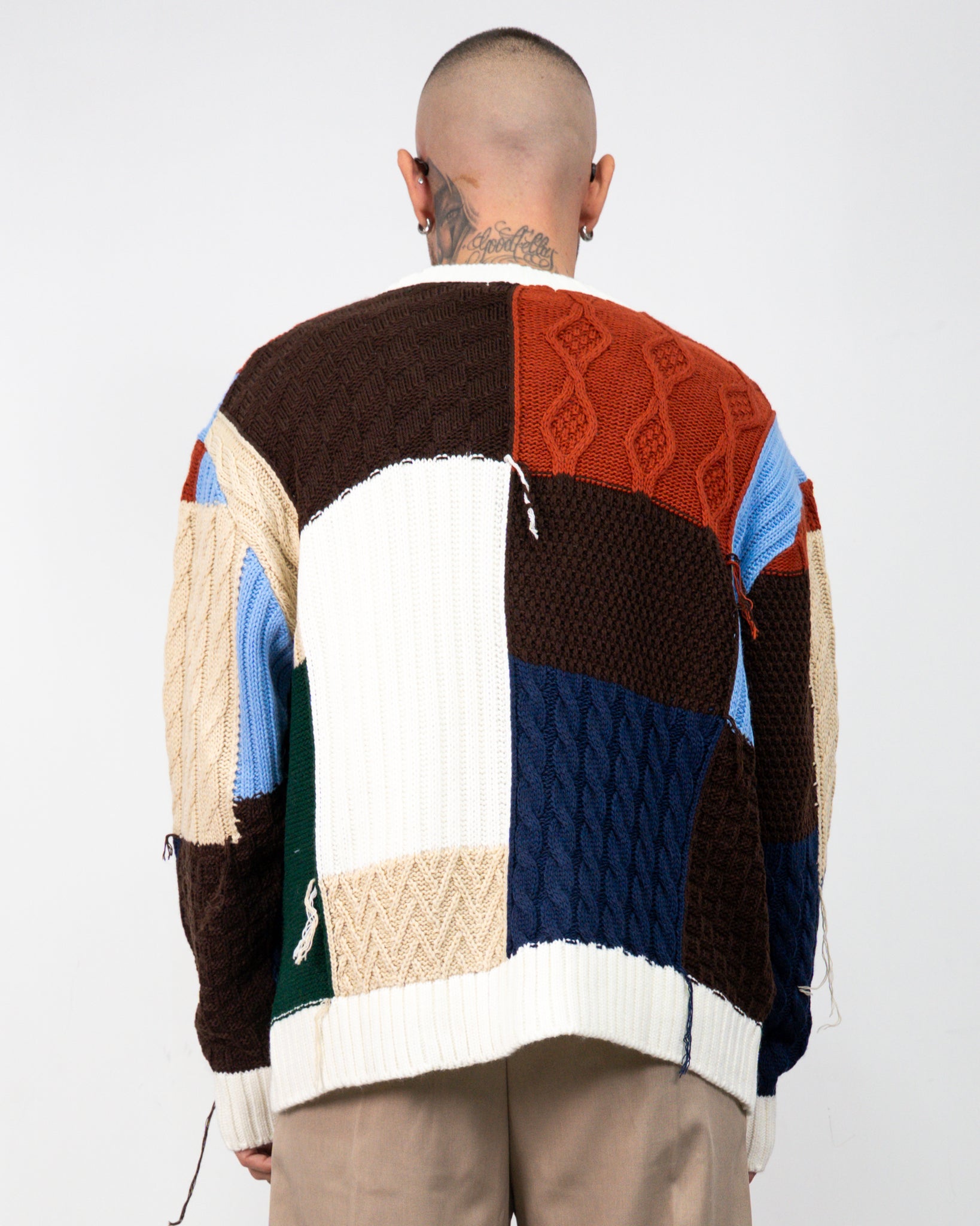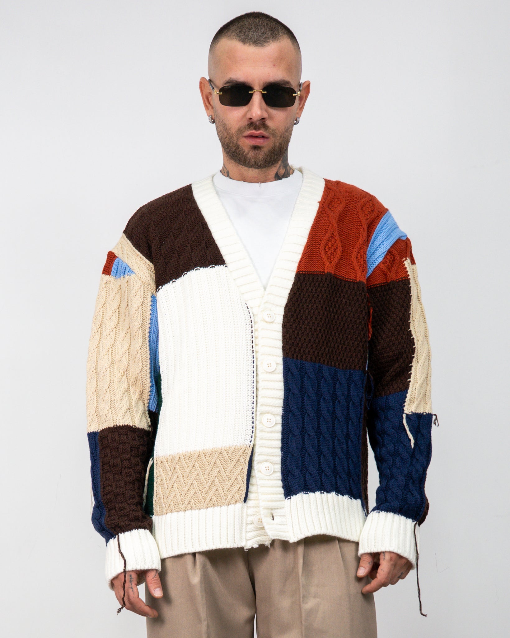 cardigan in maglia con bottoni apribili colore su colore,con dettagli a contrasto