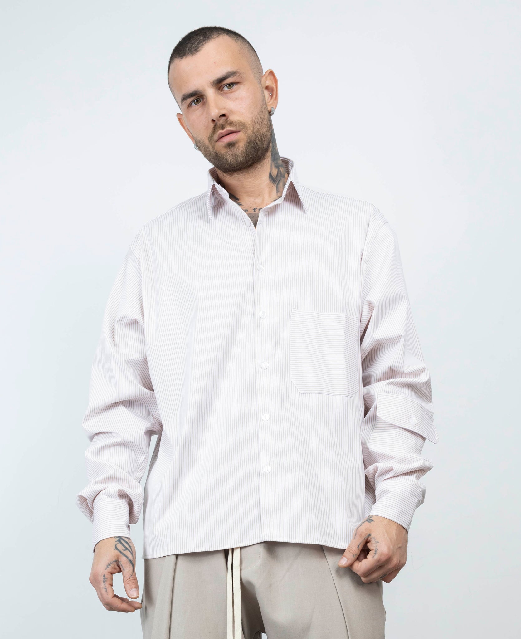 camicia manica lunga over size con tasca lungo la manica e sul petto,con colletto e bottoni apribili
