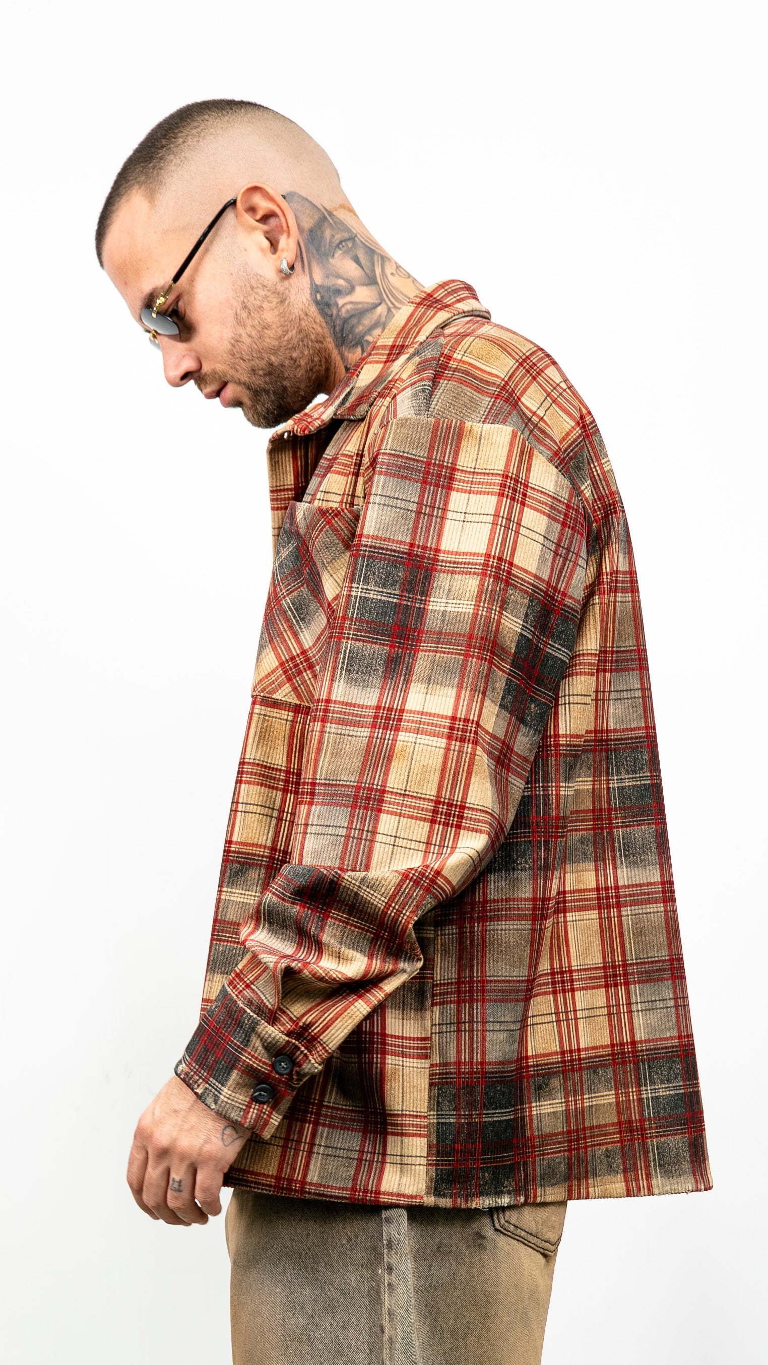 camicione a quadri imbottita all'interno,con tasconi frontali