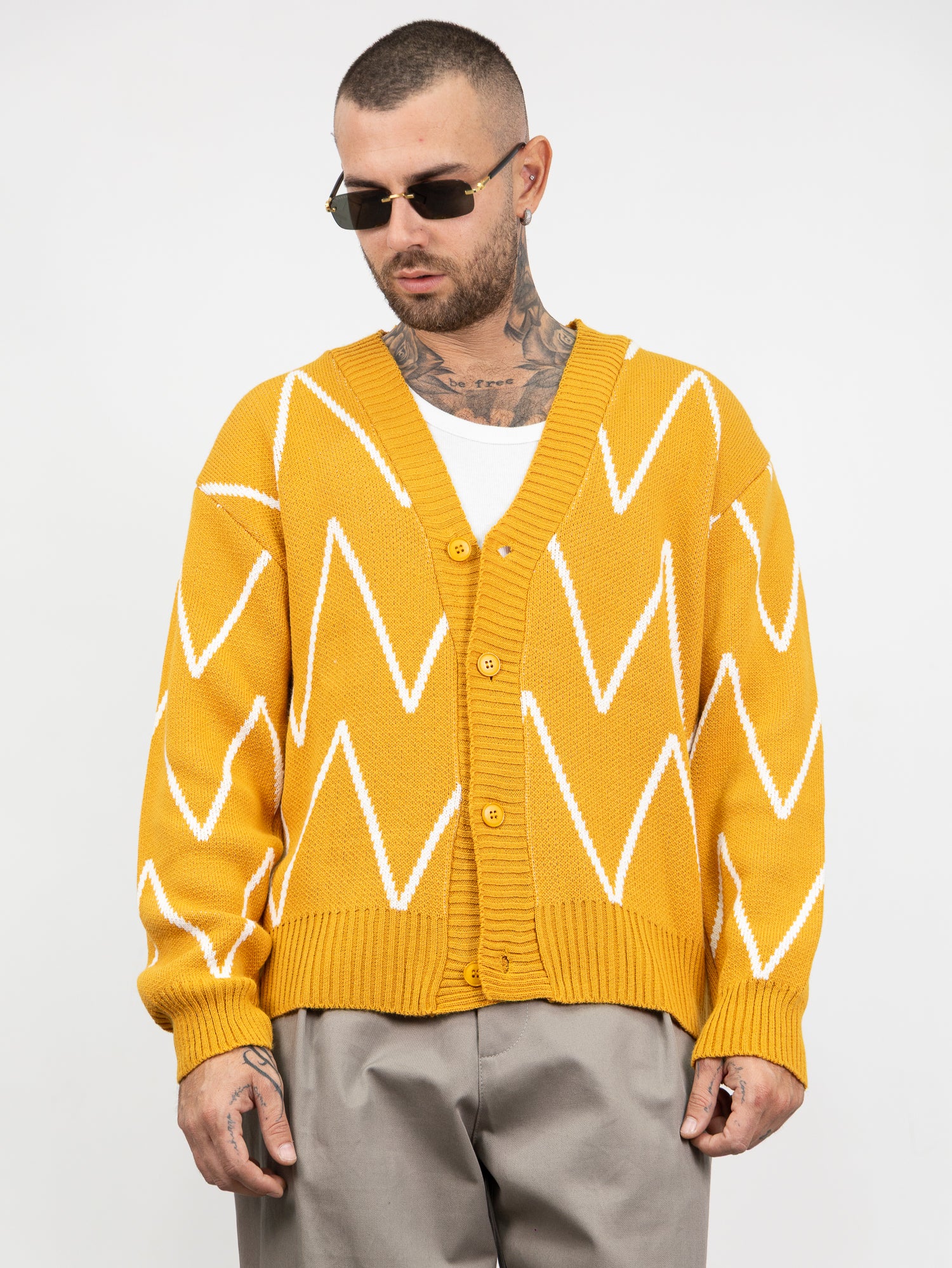 cardigan in maglia,con bottoni apribili colore su colore e dettagli a contrasto