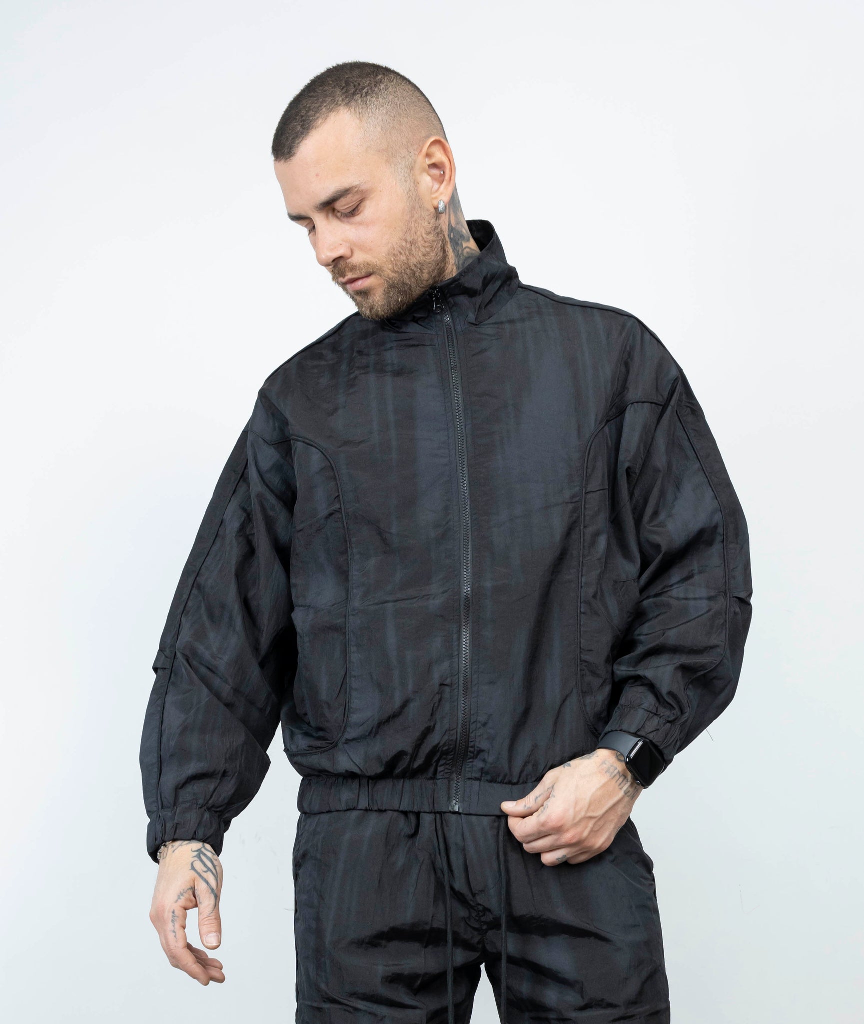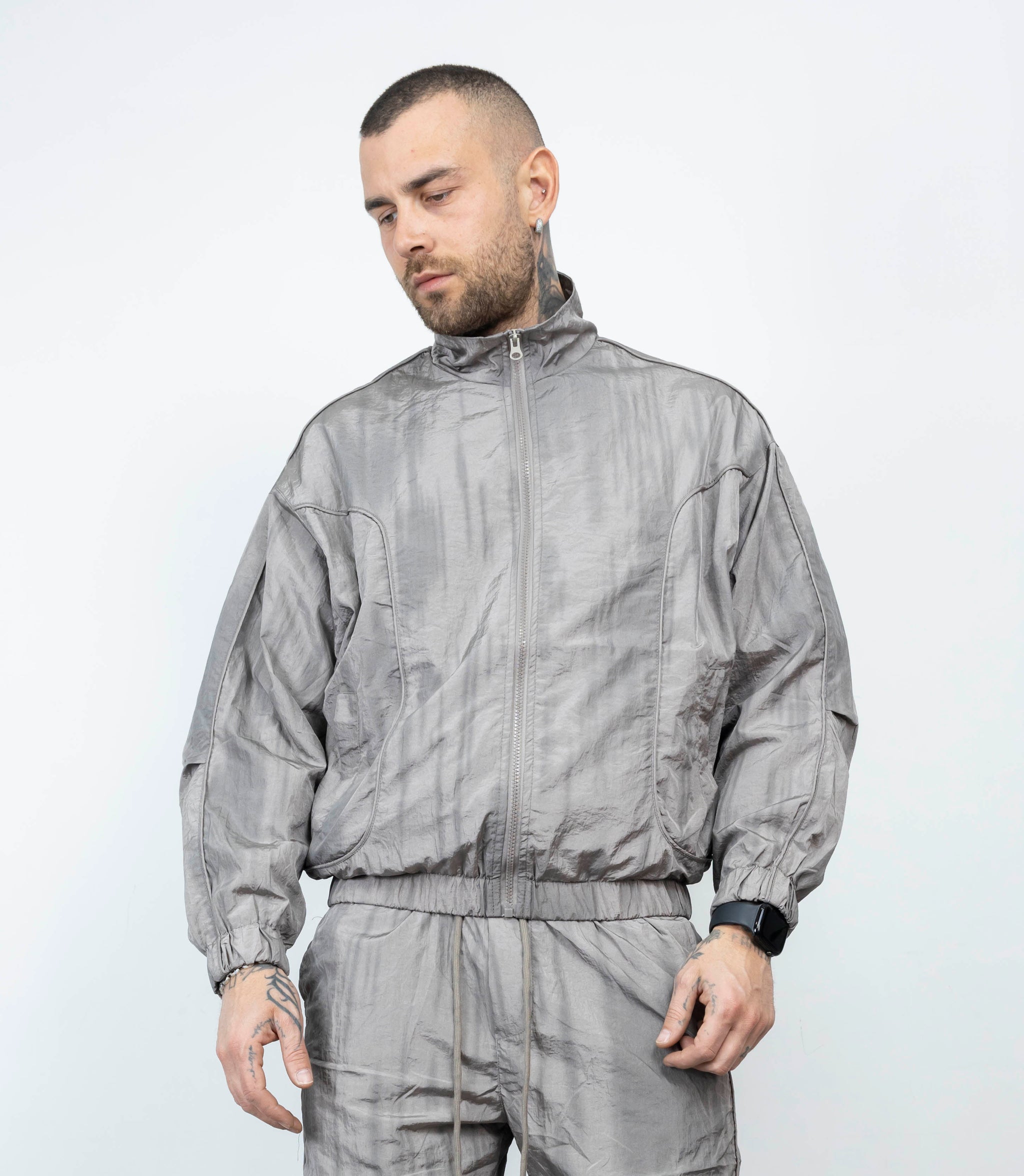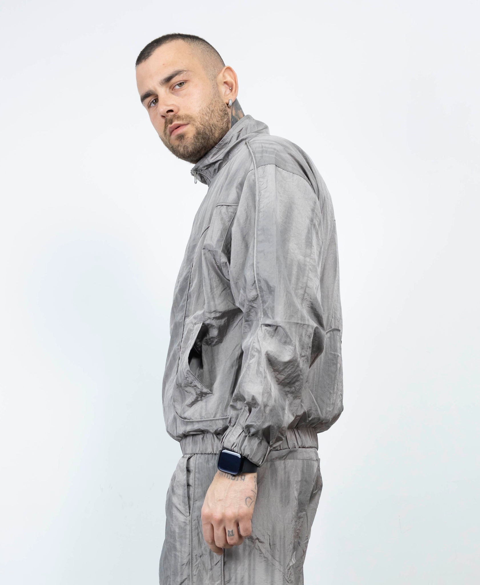 jacket con zup apribile e cuciture esterne in rilievo colore su colore
