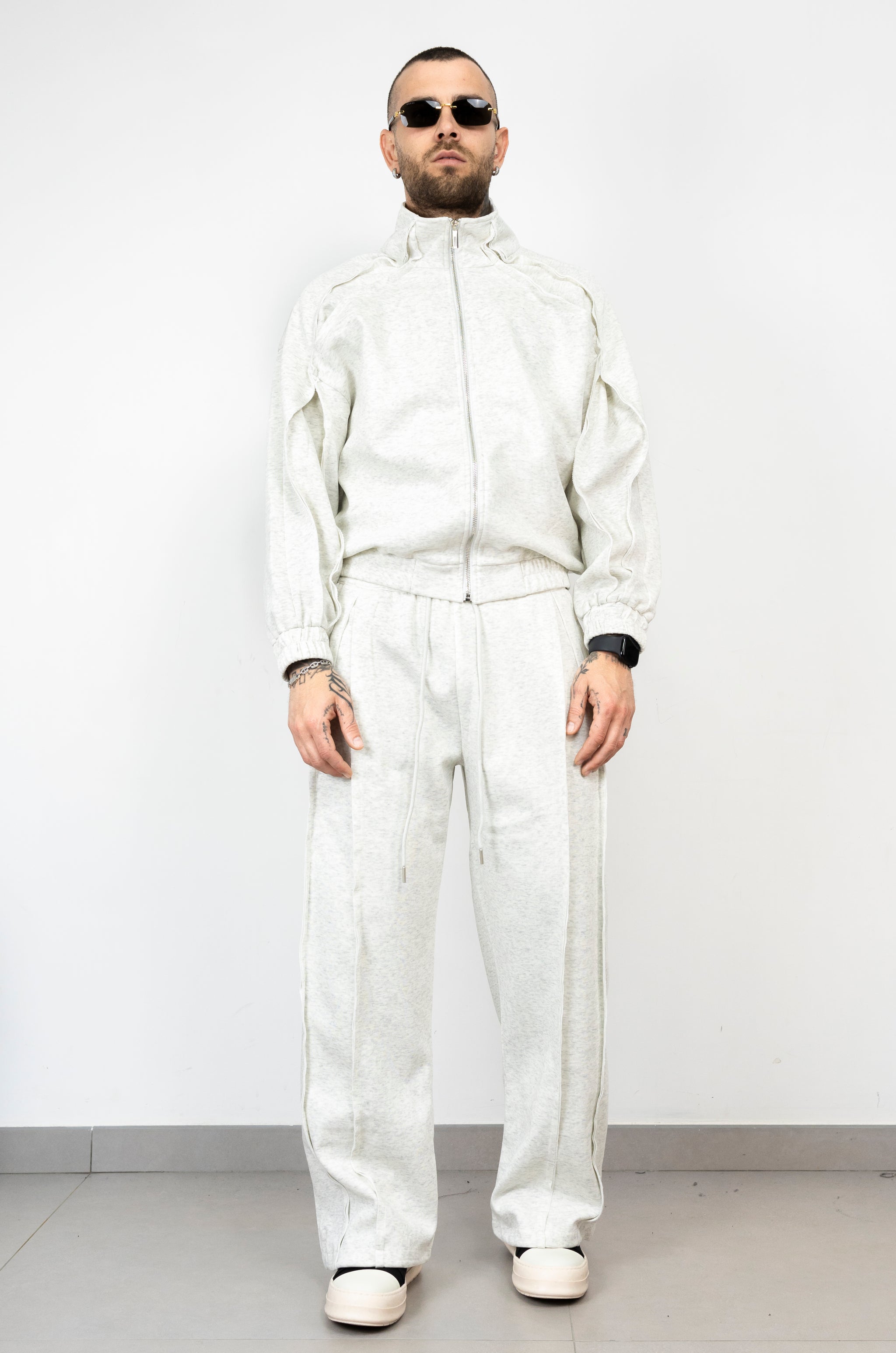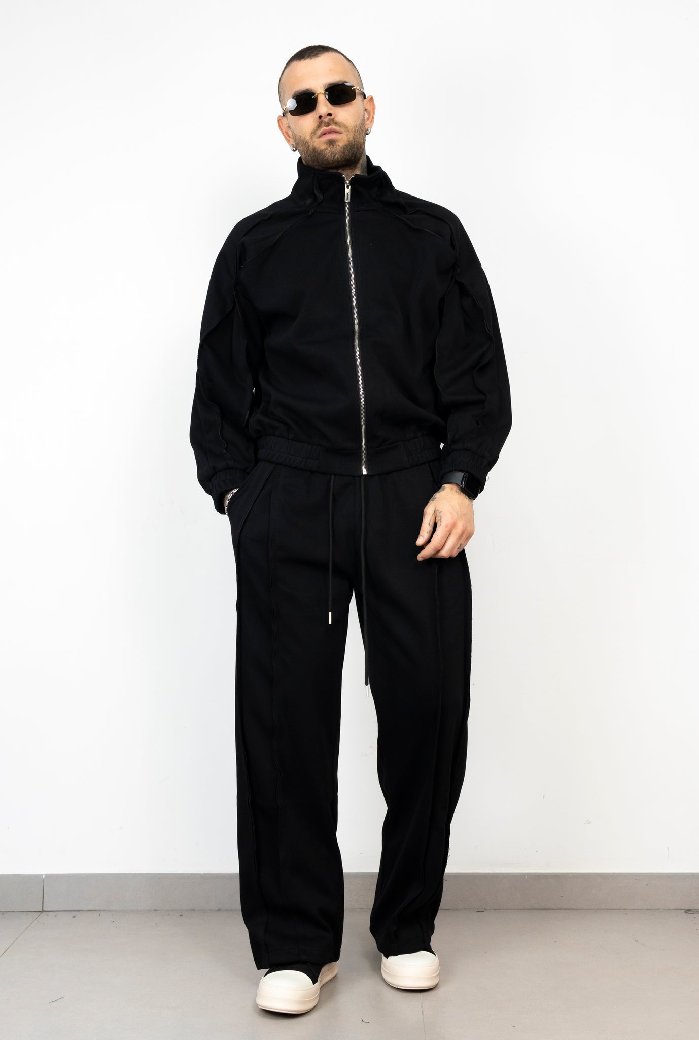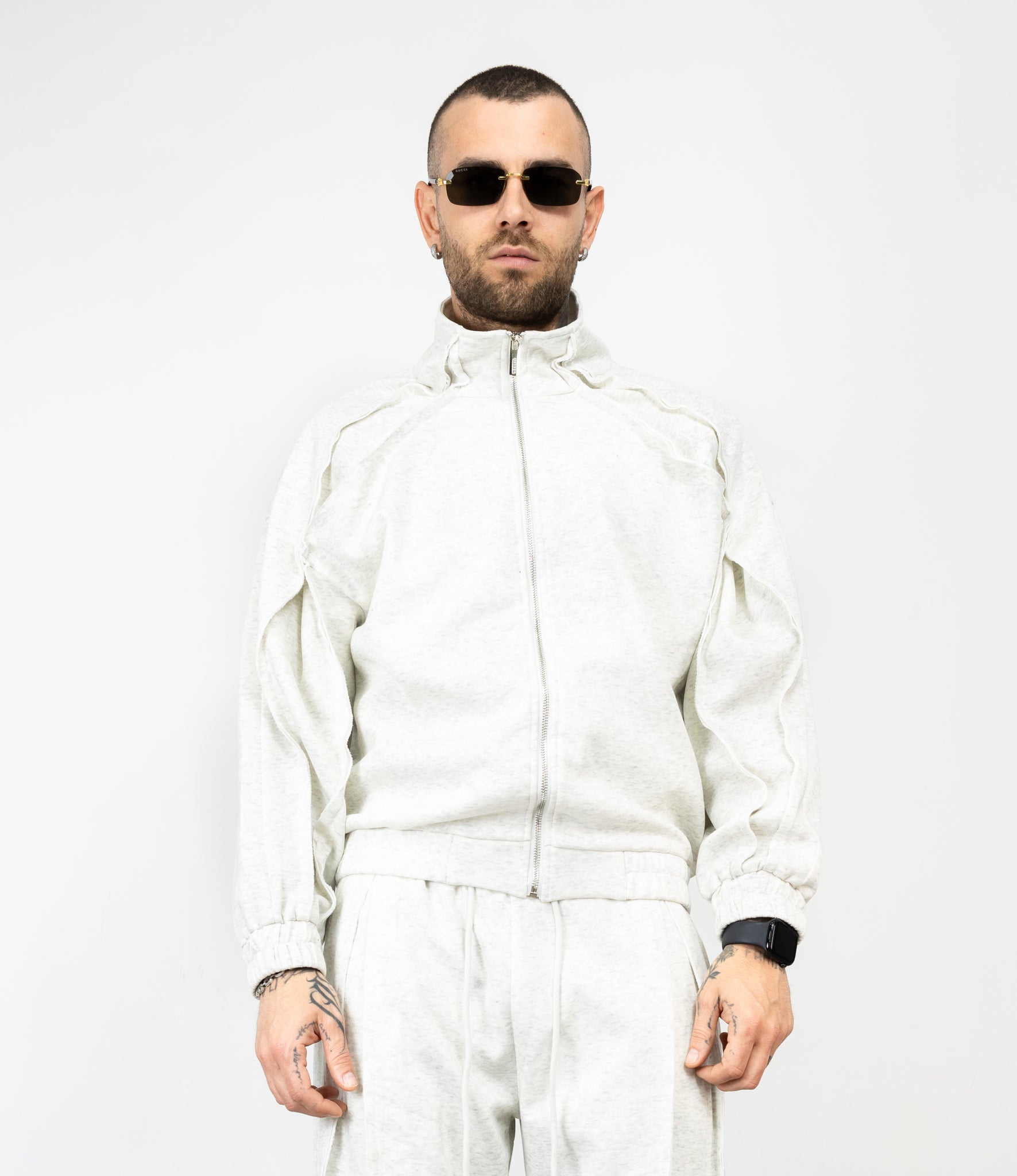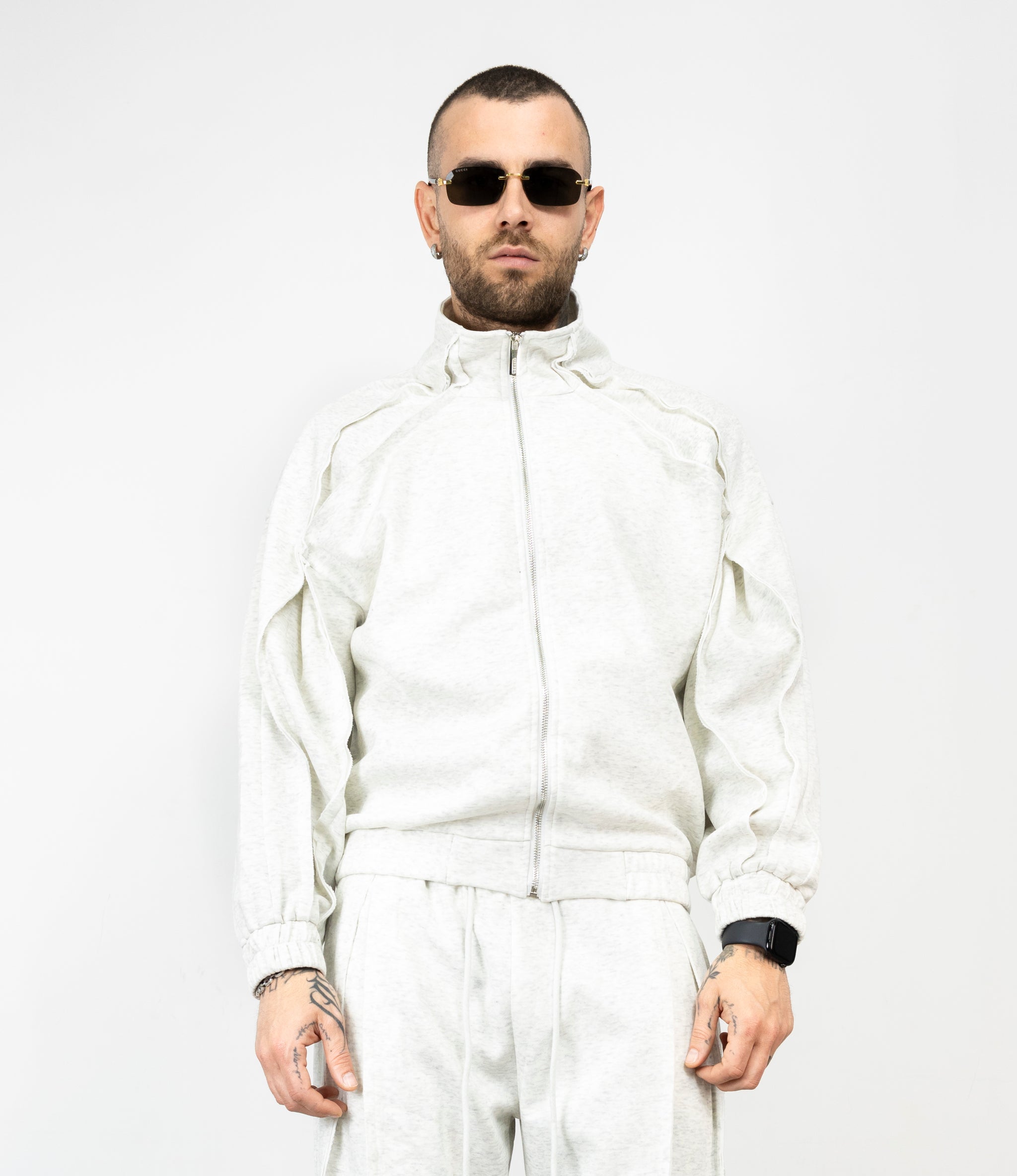 felpa con collo alto zip apribile e cuciture esterne taglio vivo in rilievo