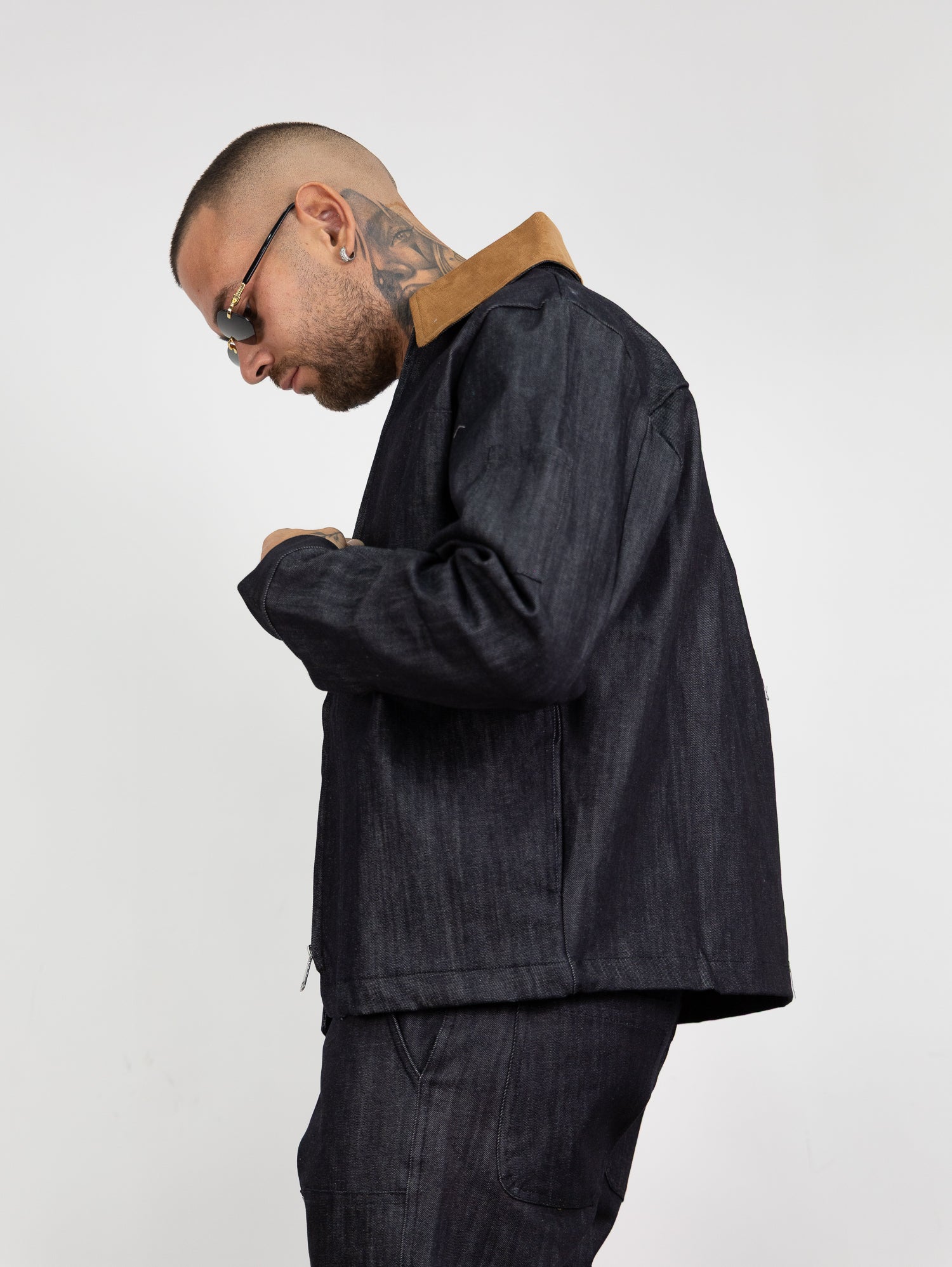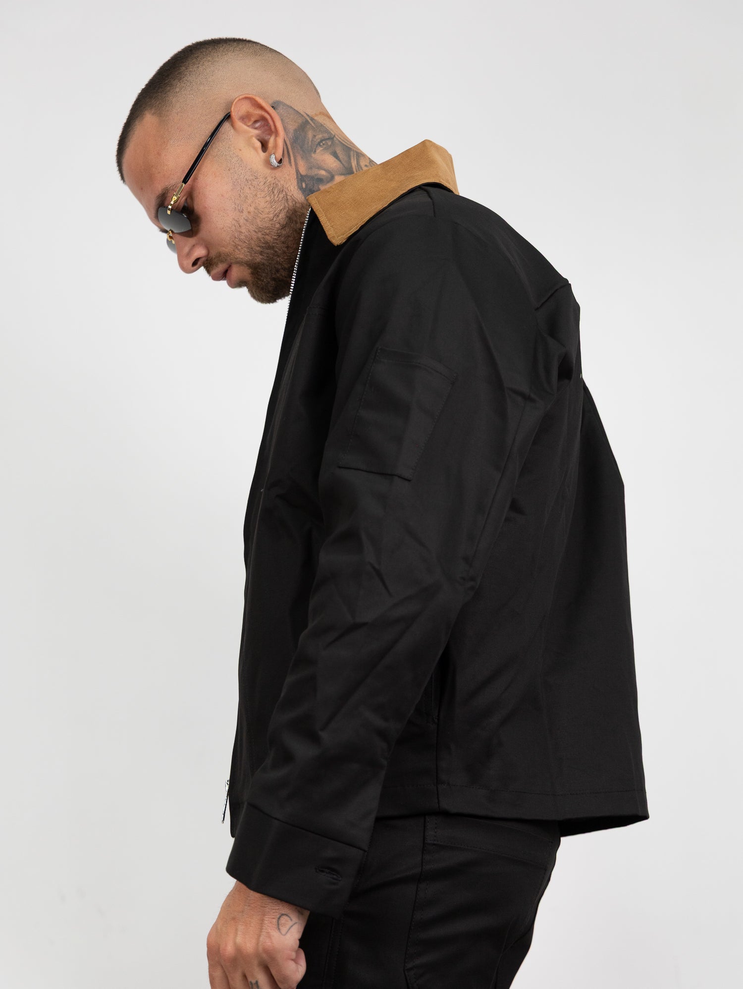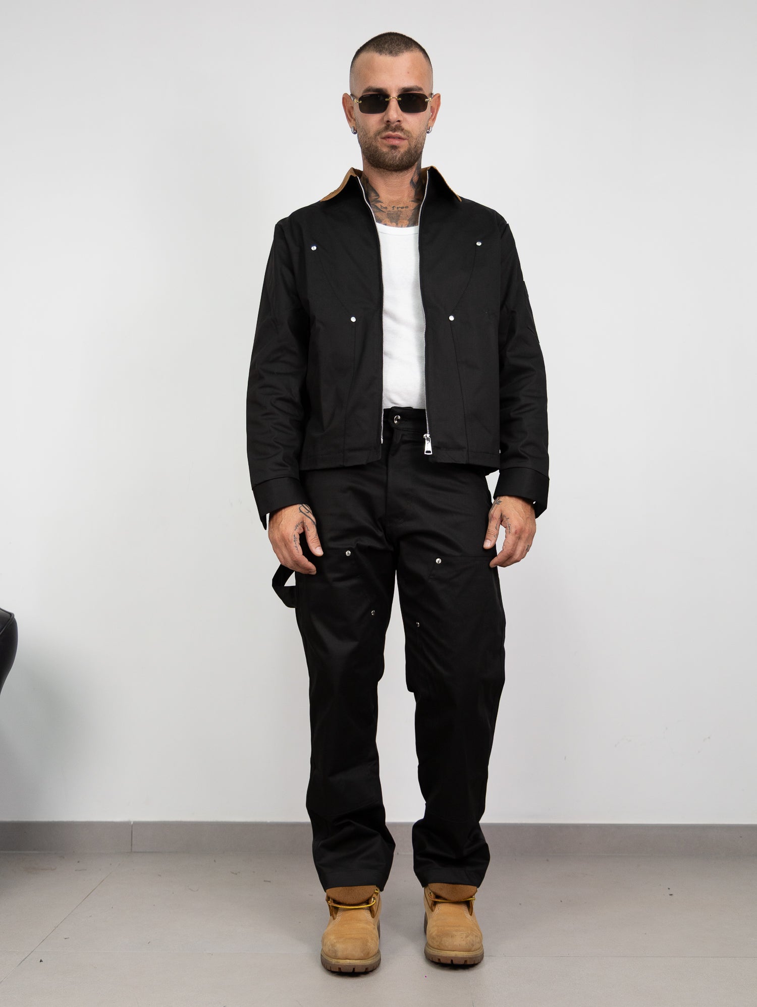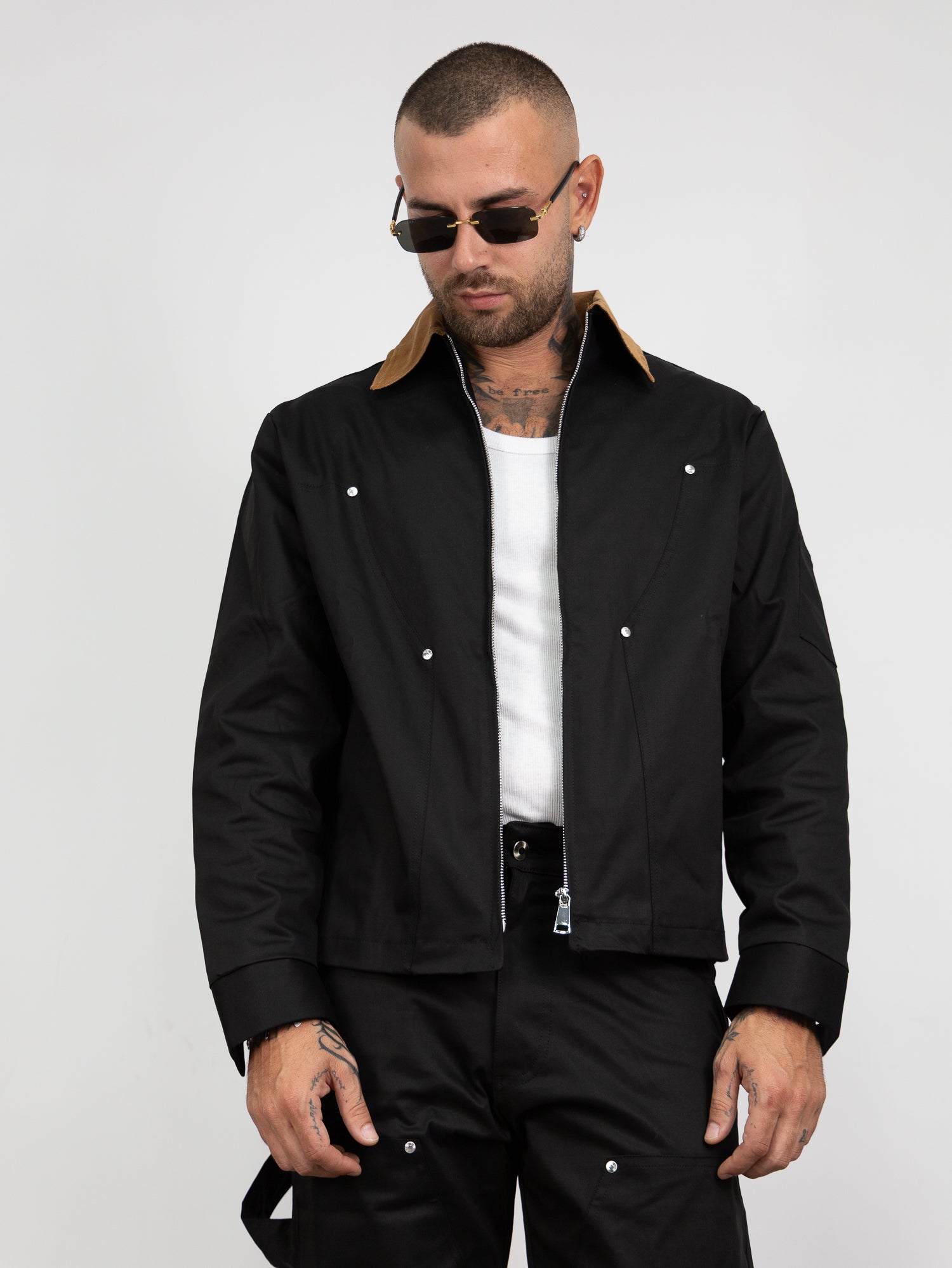 jacket con zip frontale,dettaglio carpenter e taschino sulla manica,con colletto colore a contrasto