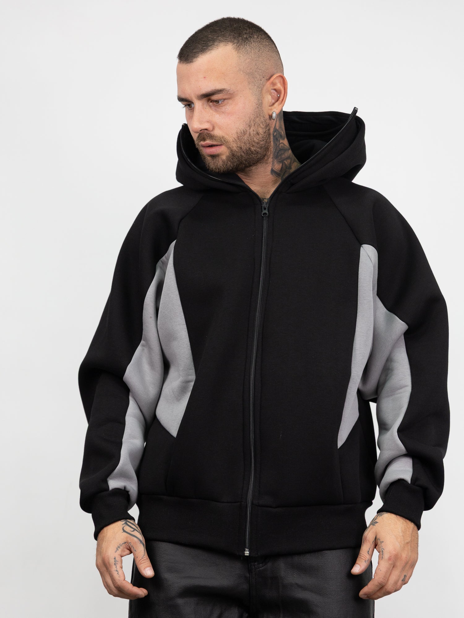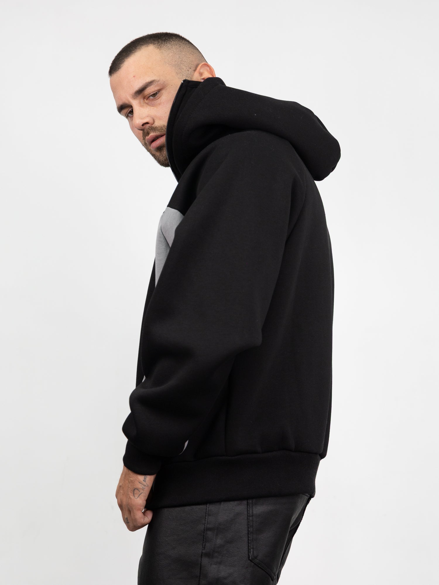 felpa balaclava con zip apribile e dettagli a contrasto