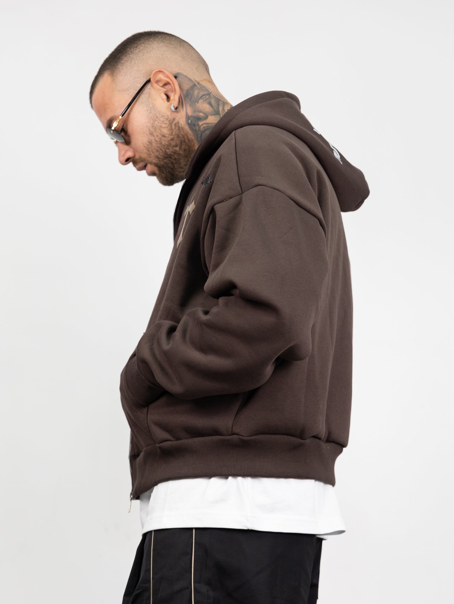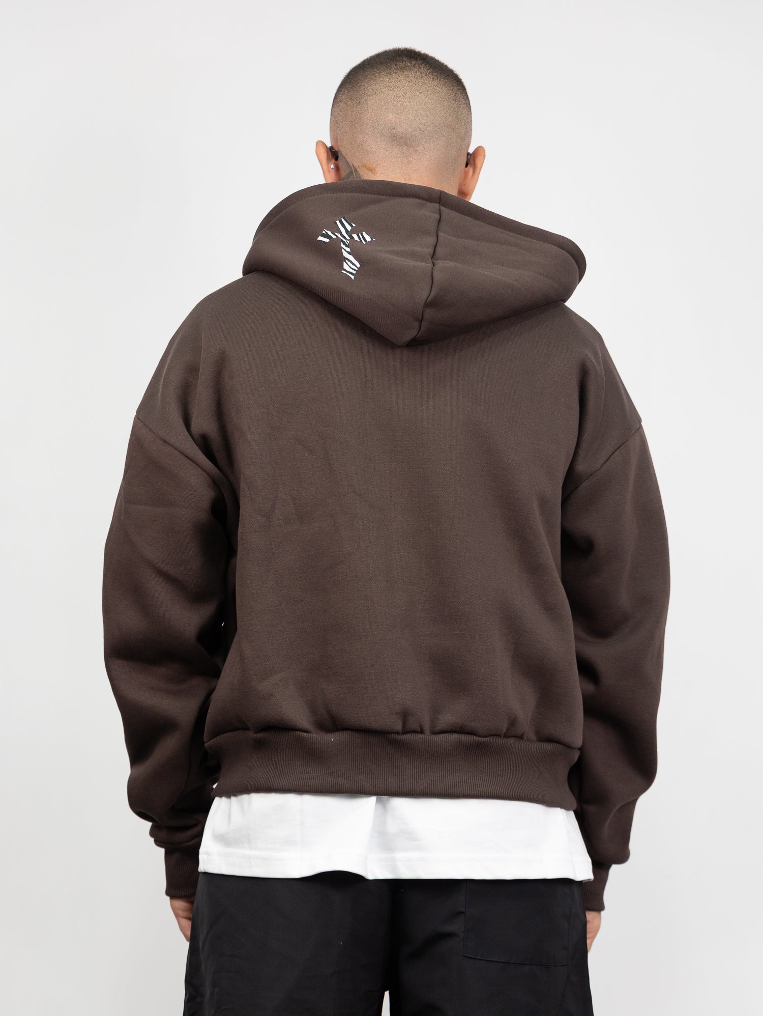 felpa boxy con cappuccio e zip apribile con stampa croci a contrasto