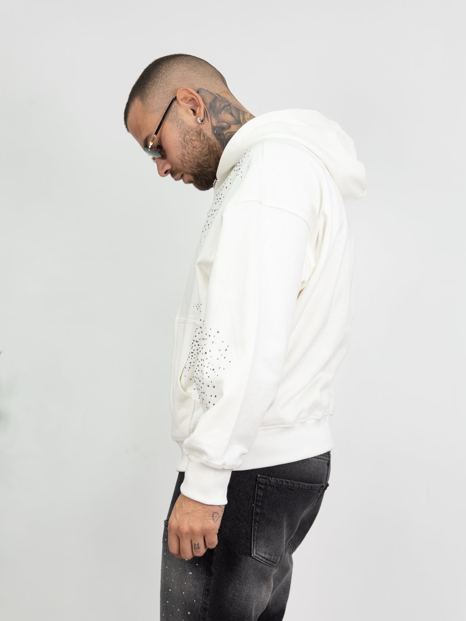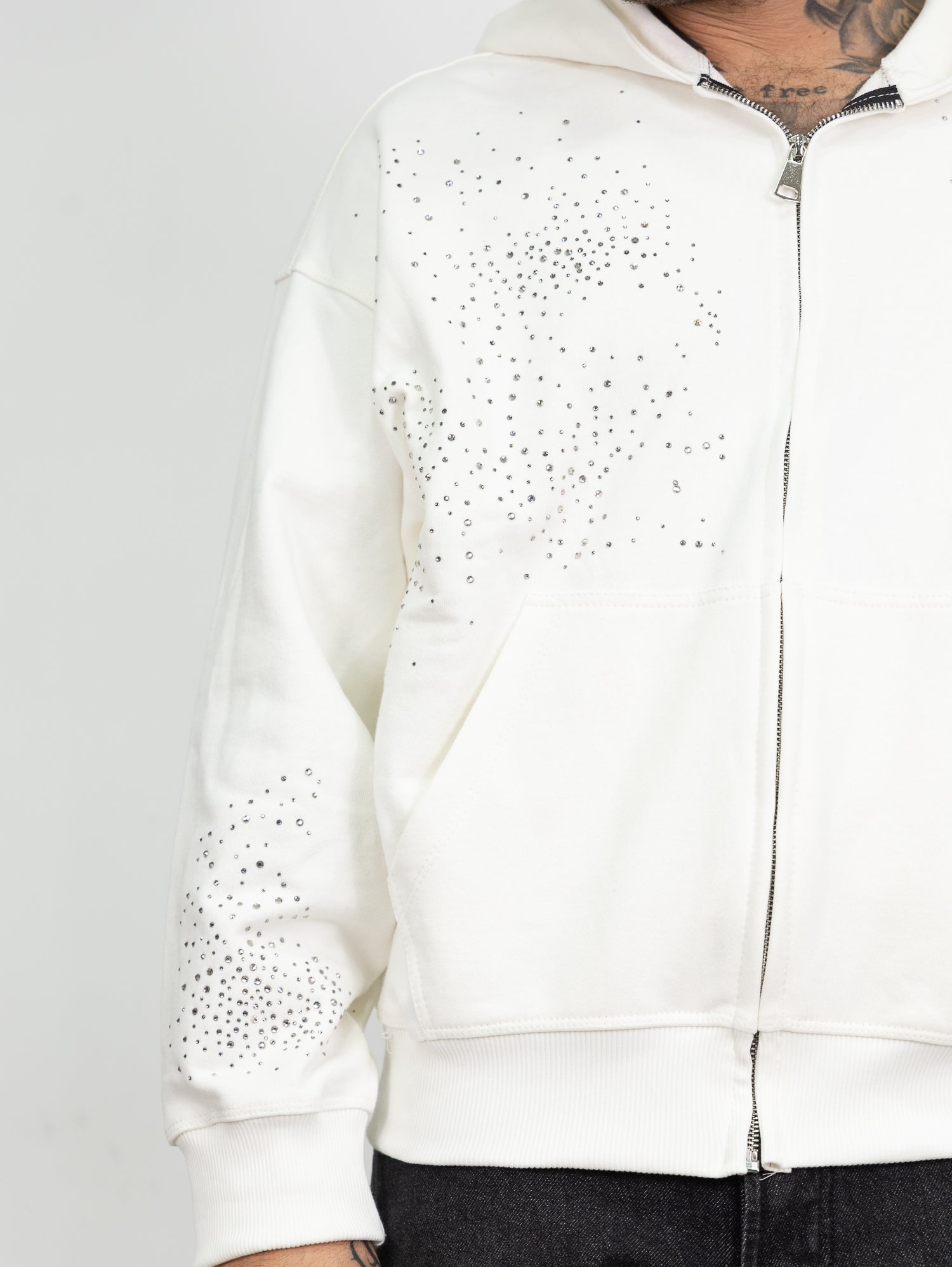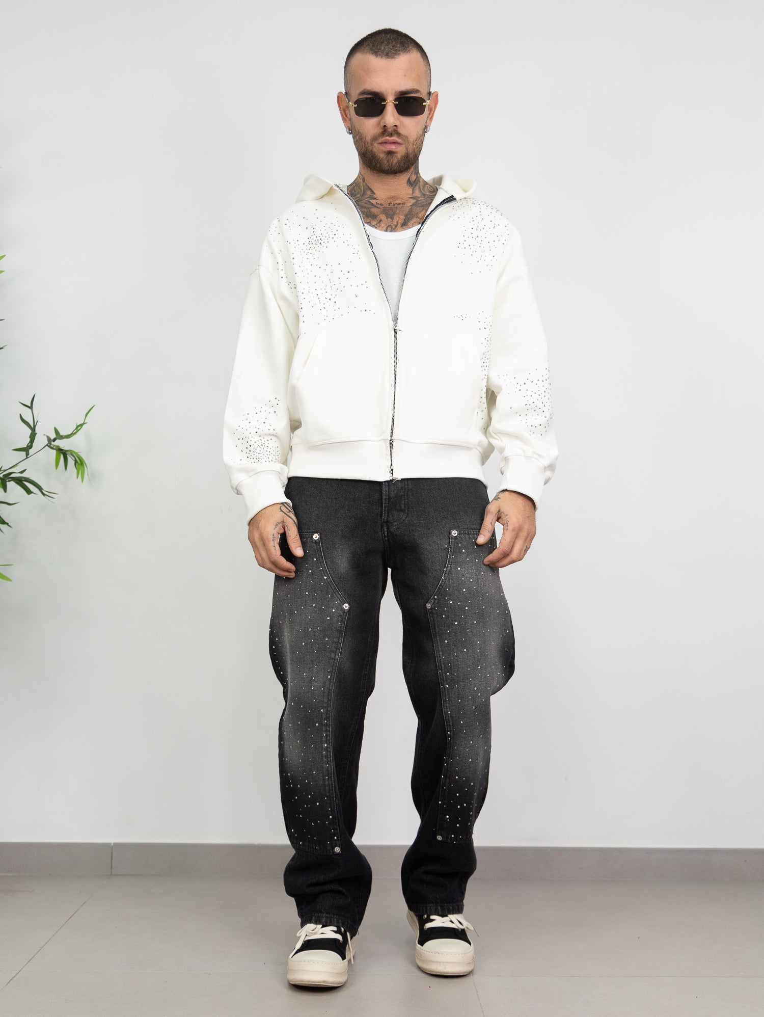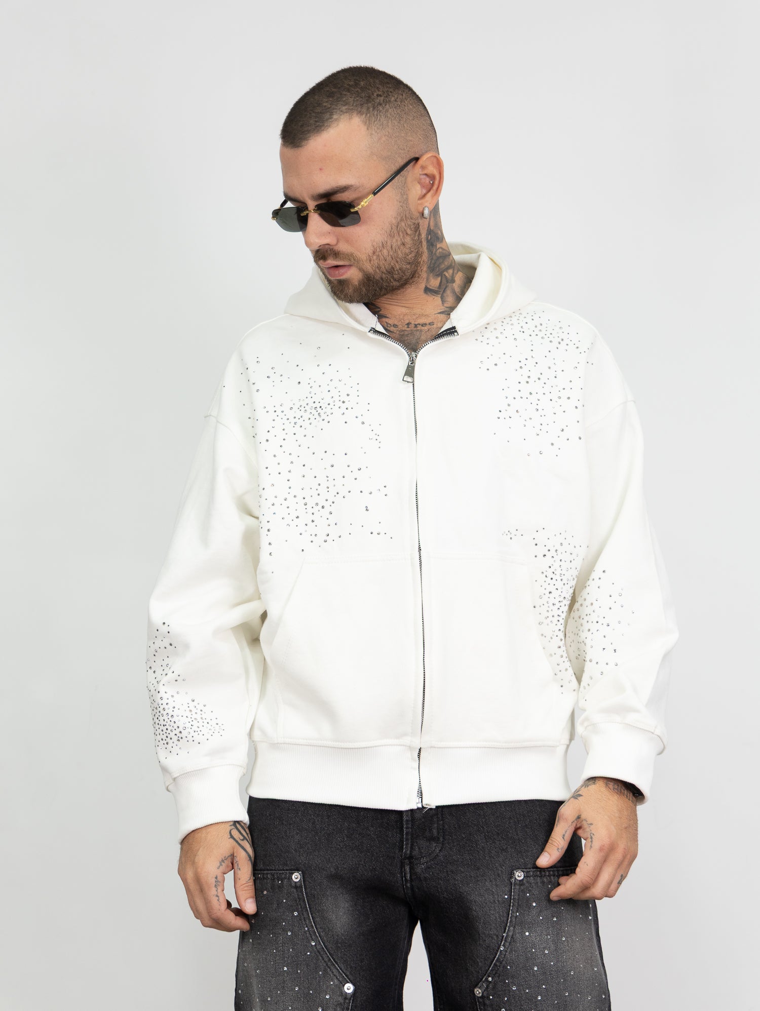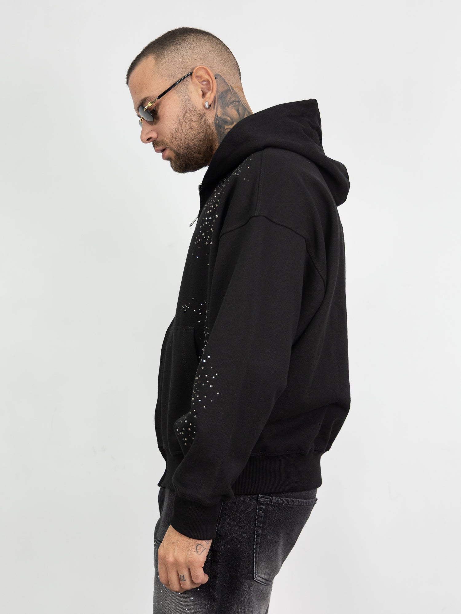 felpa con zip apribile,cappuccio e apllicazioni di strass frontali