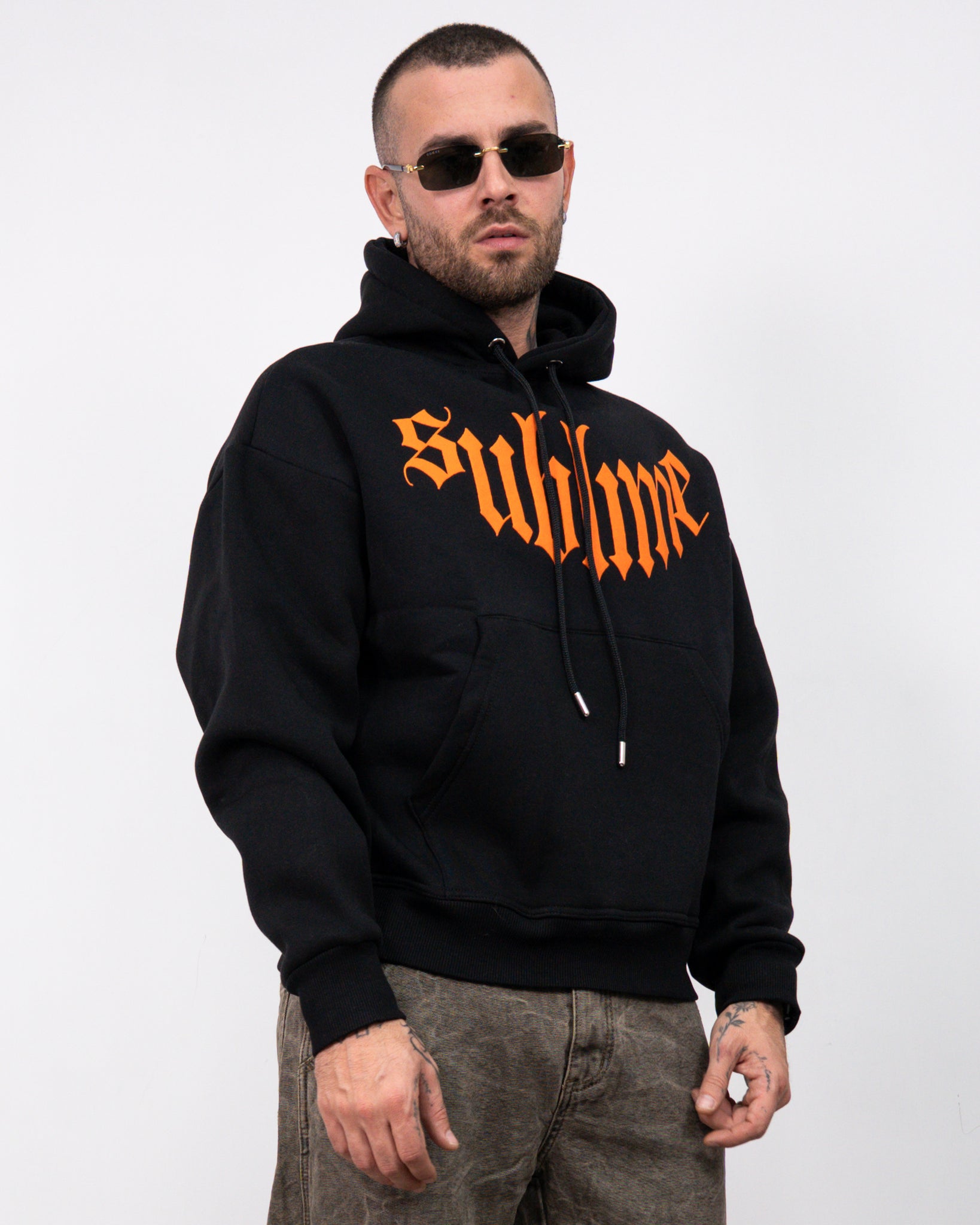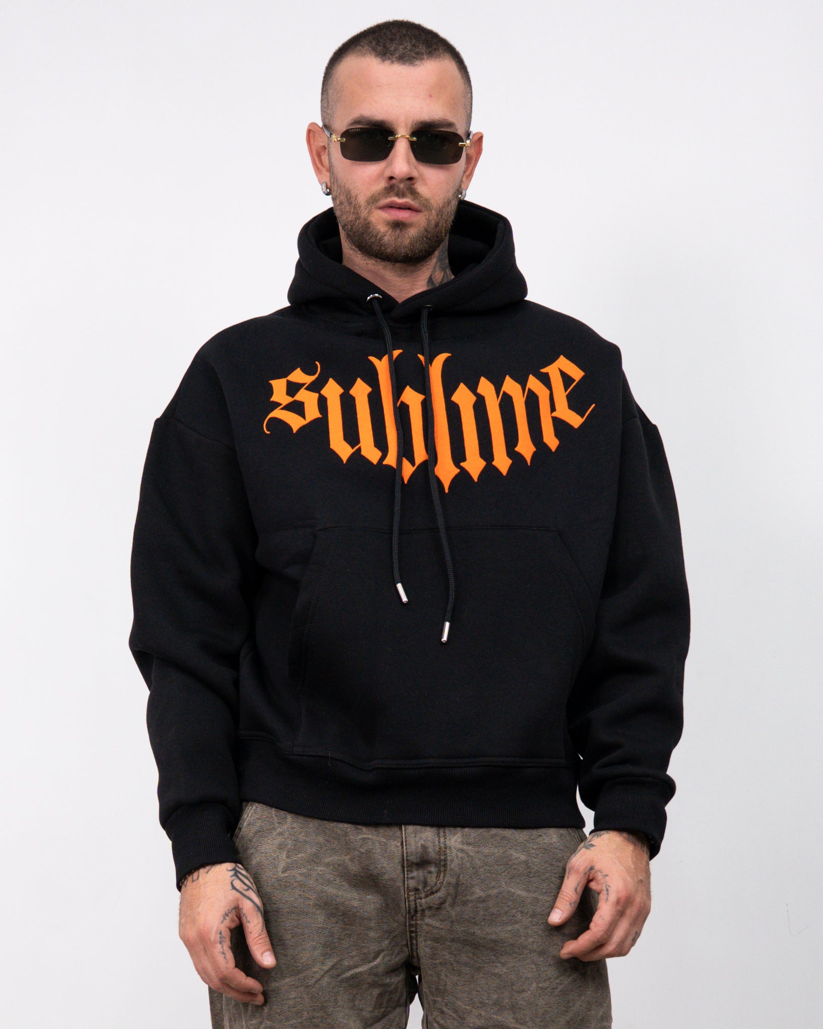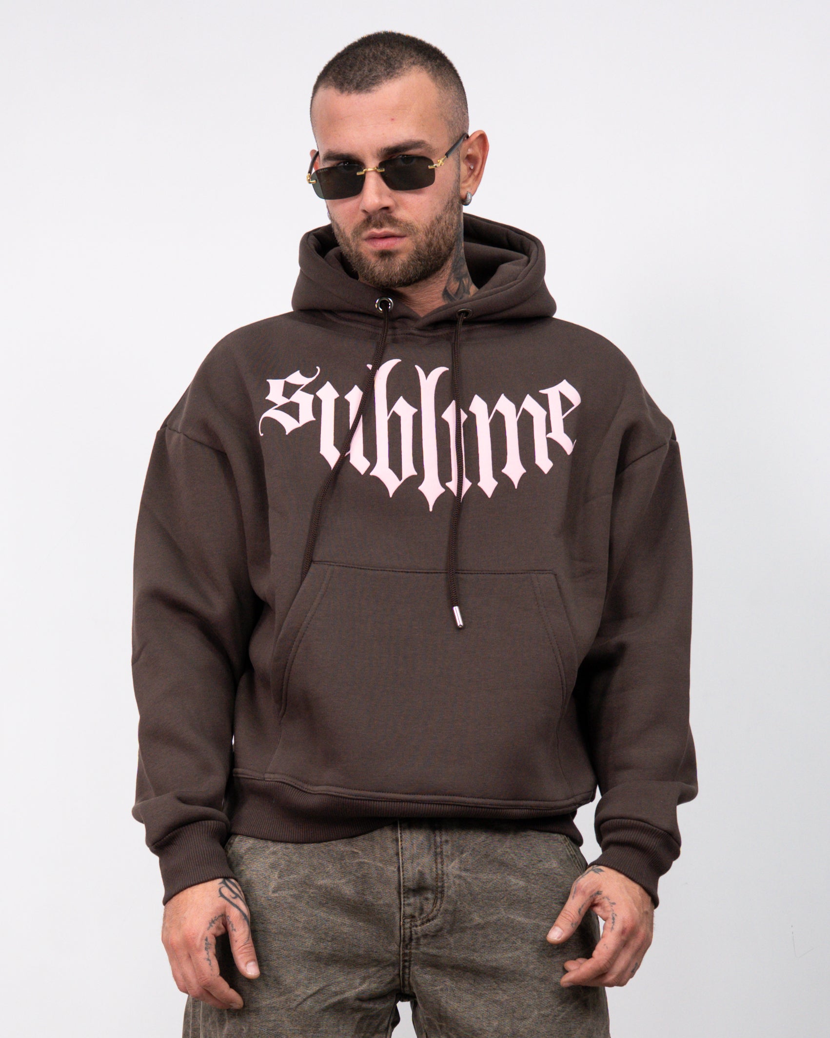 felpa boxy con cappuccio e laccio,tascone e stampa frontale a contrasto