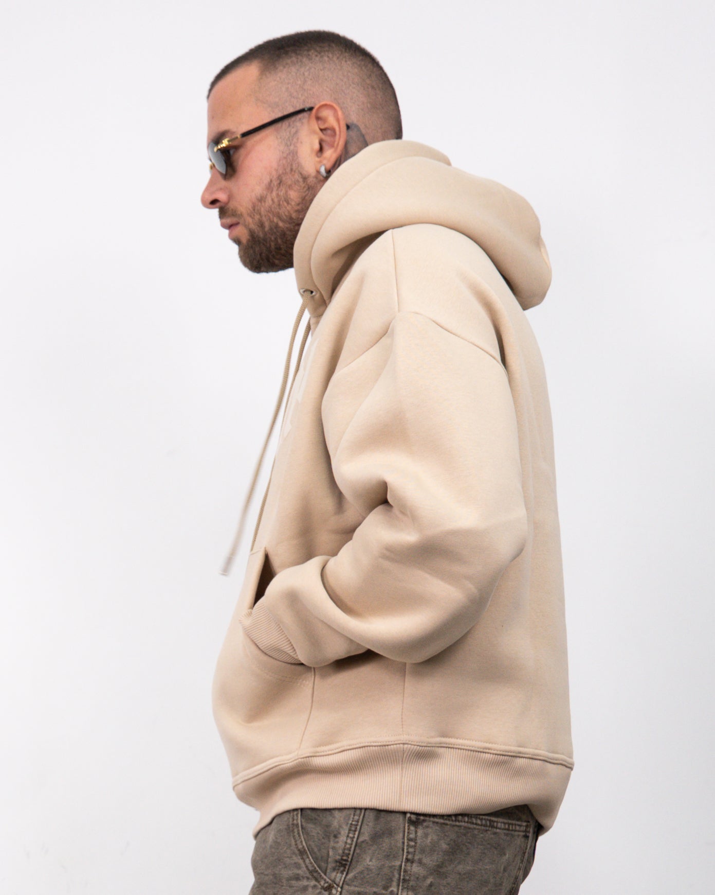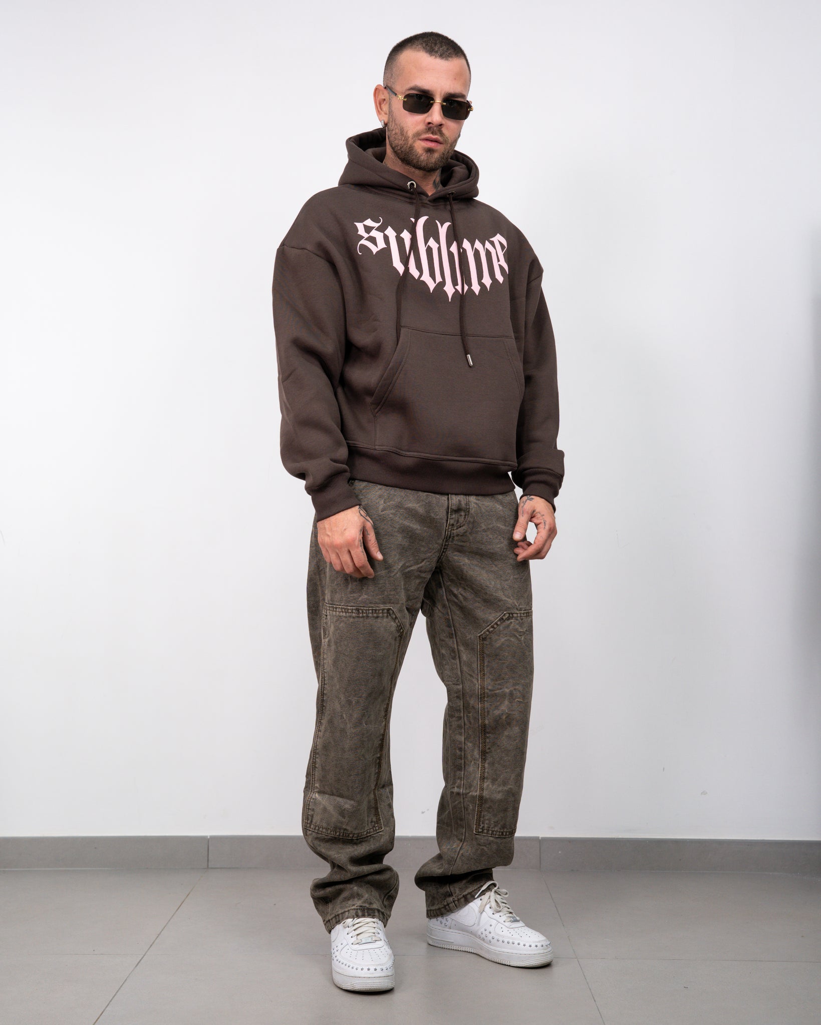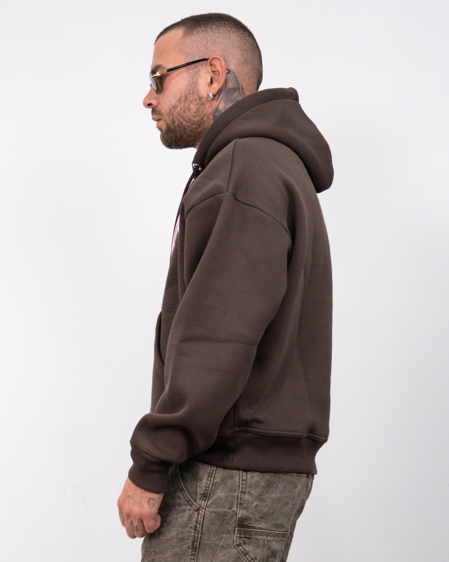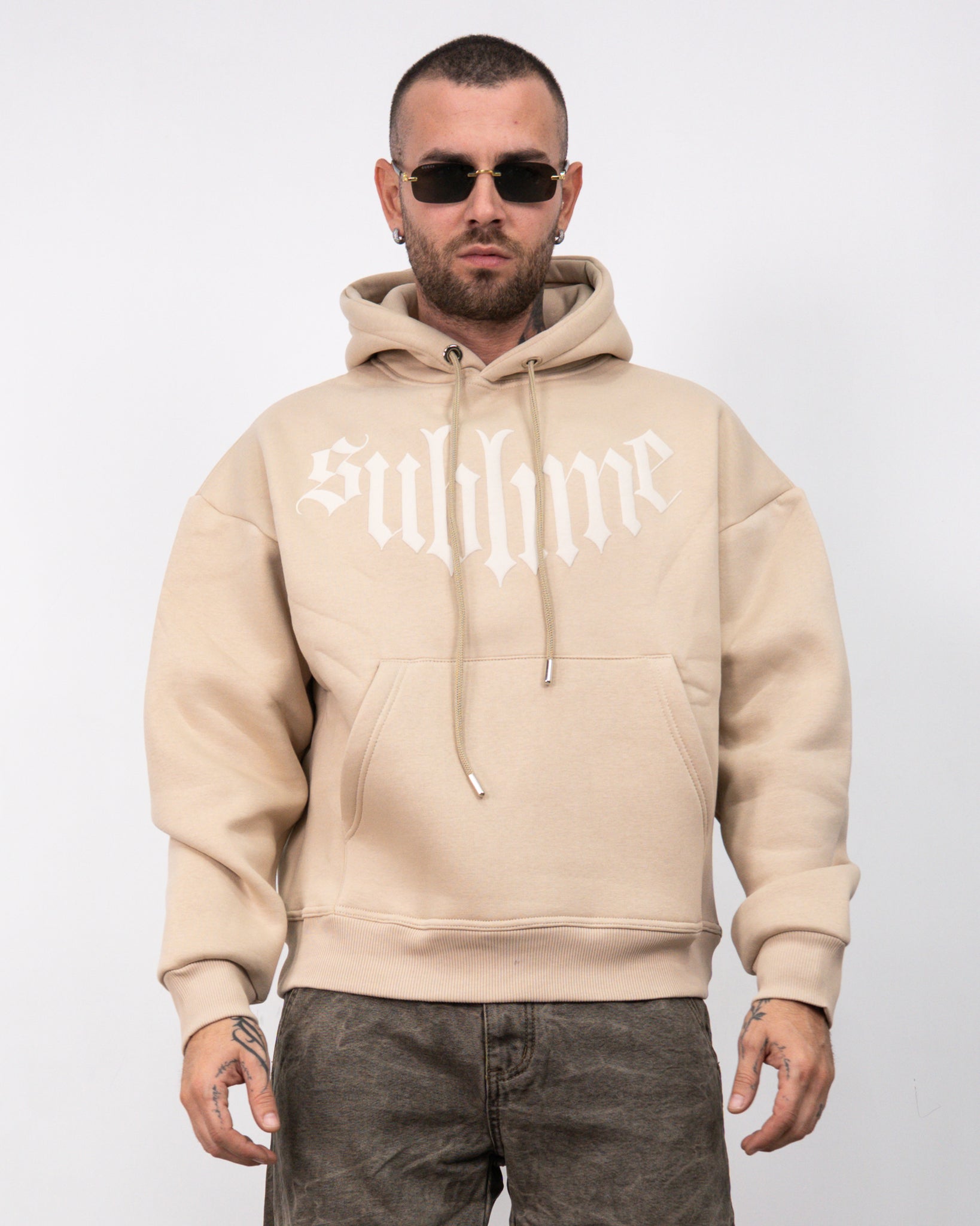 felpa boxy con cappuccio e laccio,tascone e stampa frontale a contrasto
