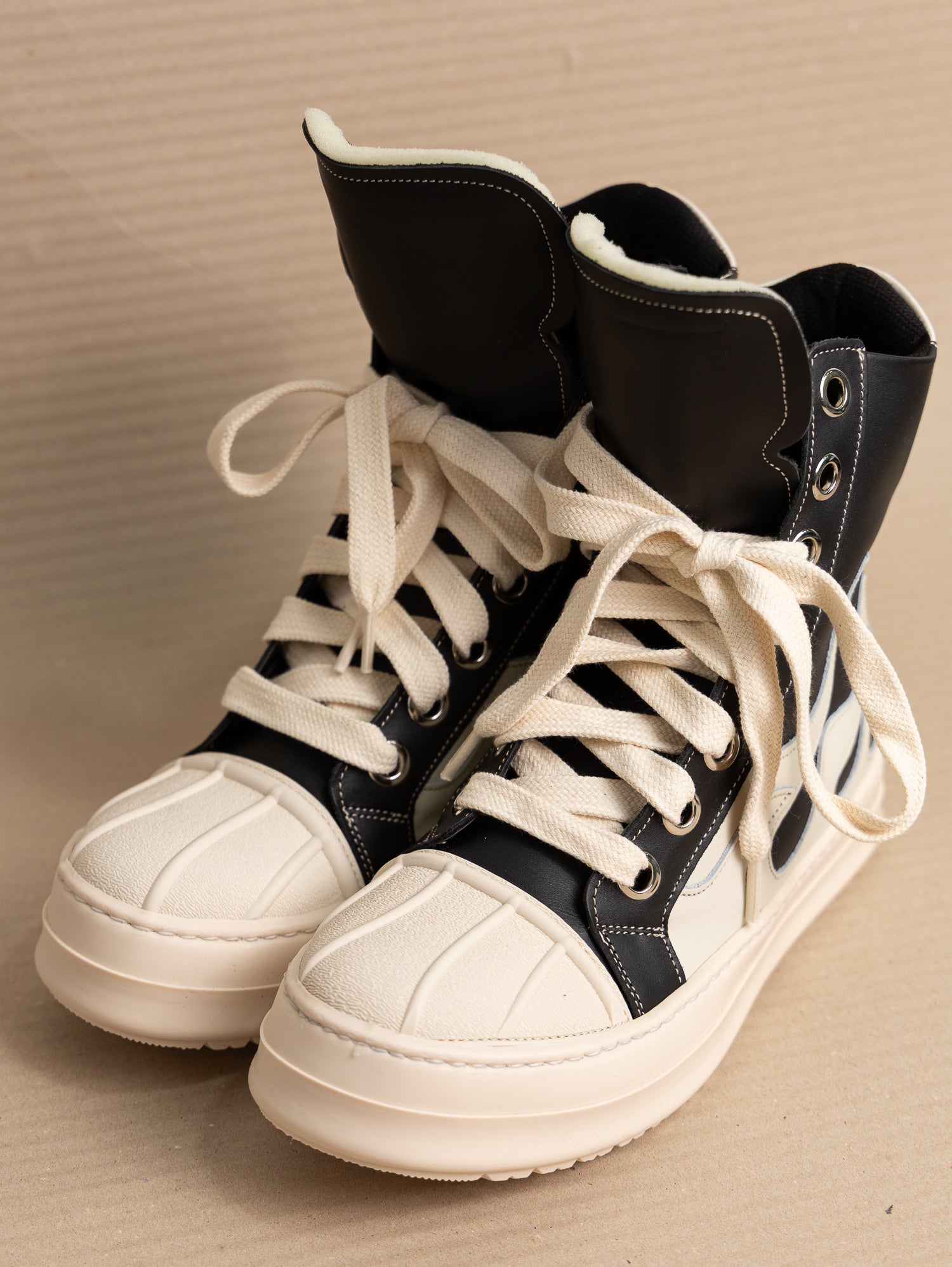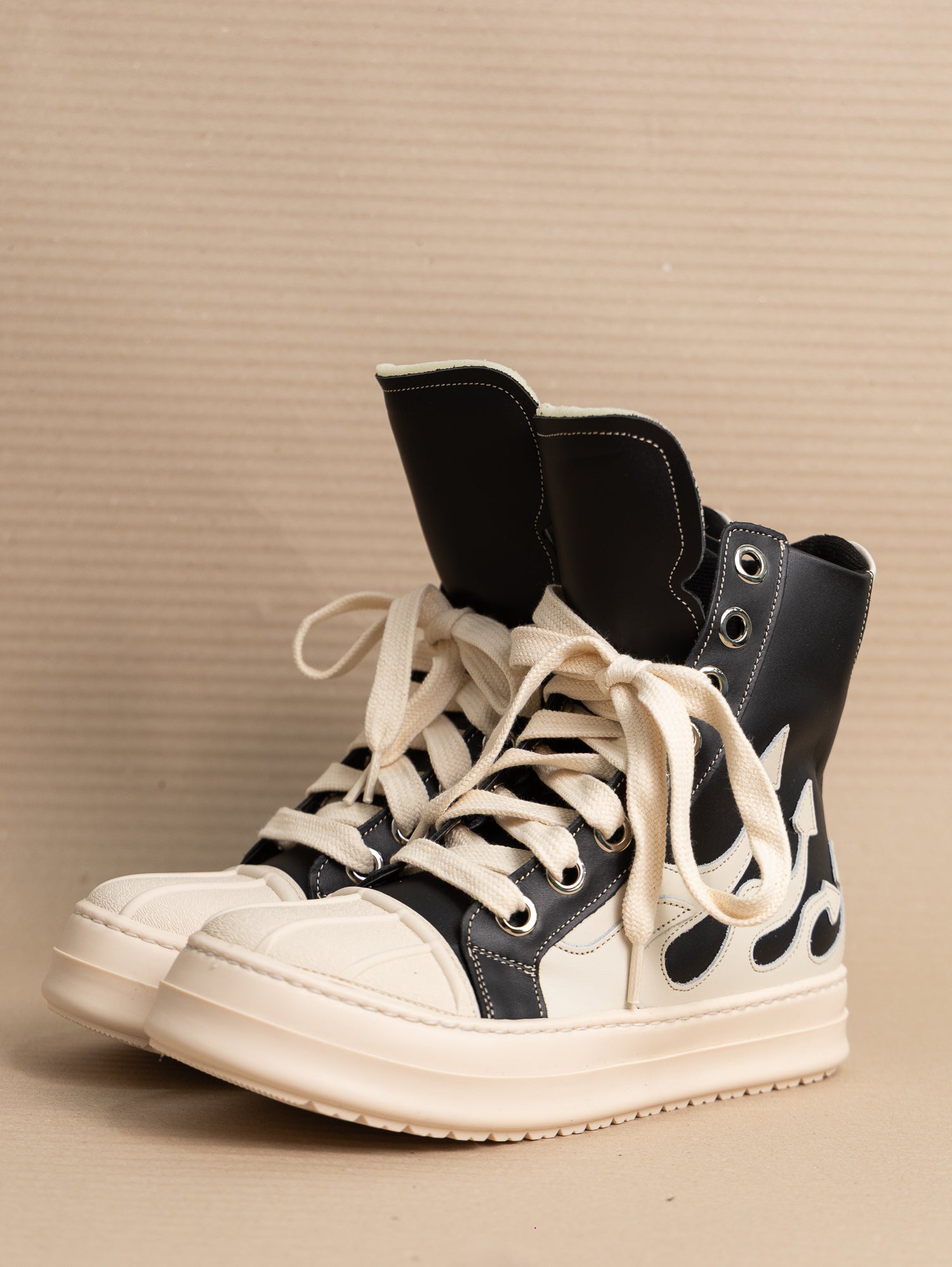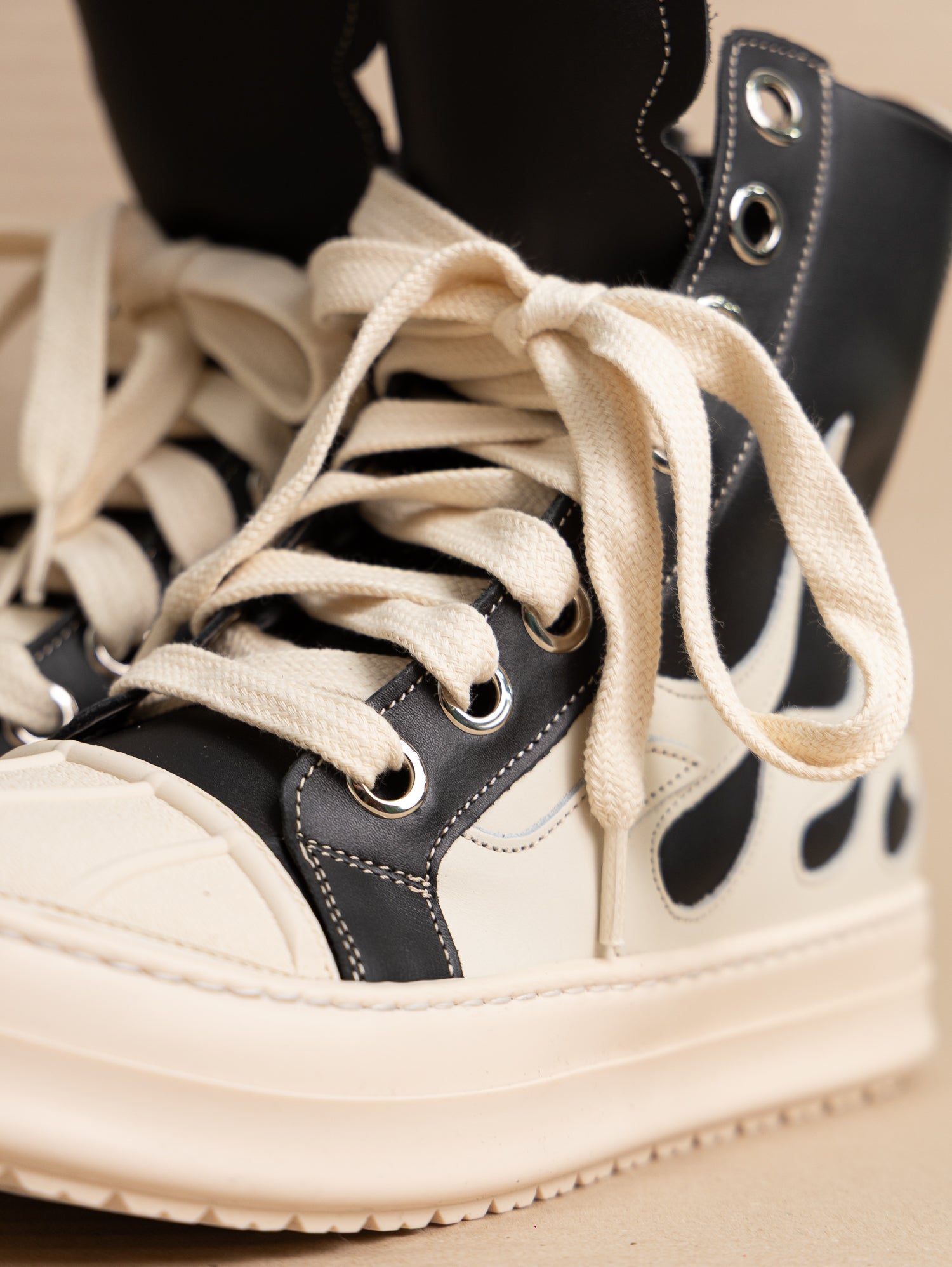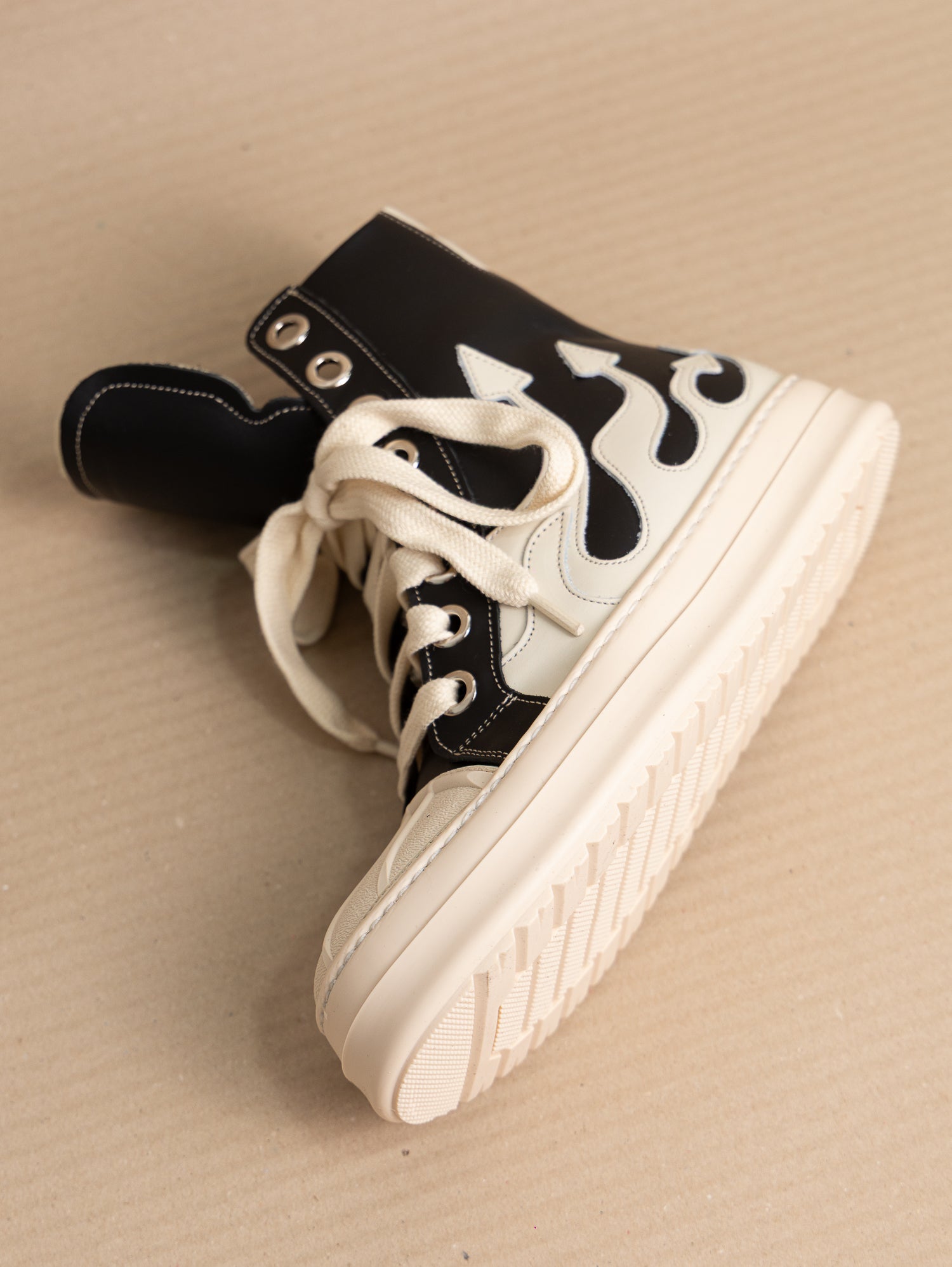 scapa alta in eco pelle con dettagli fiamme a contrasto
