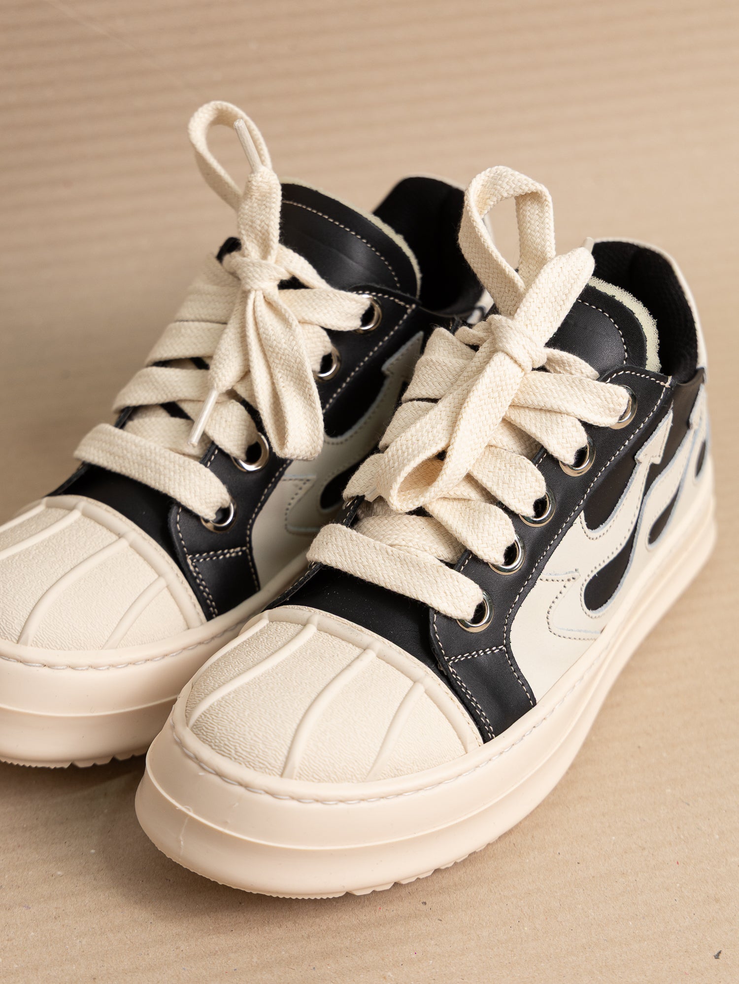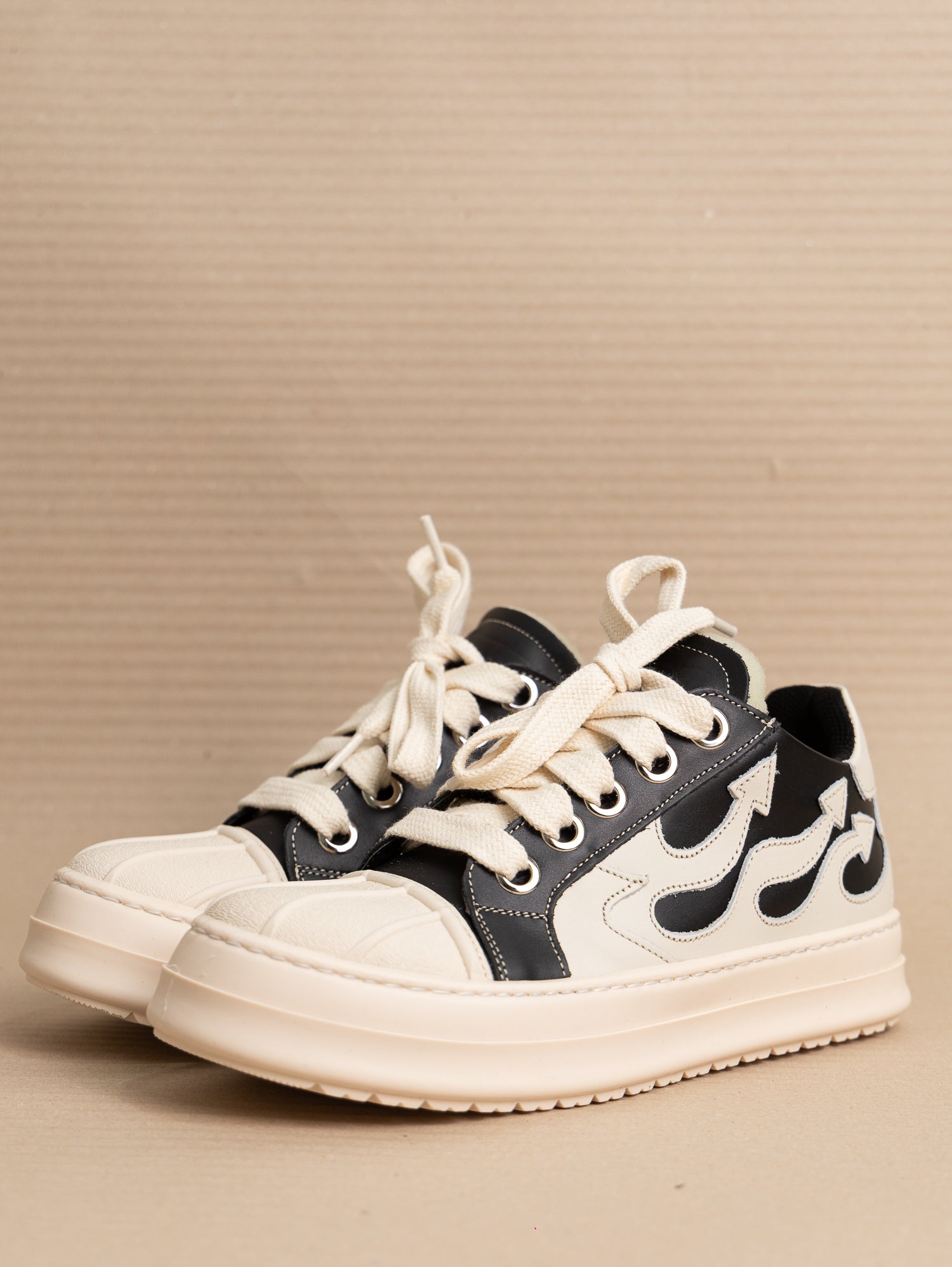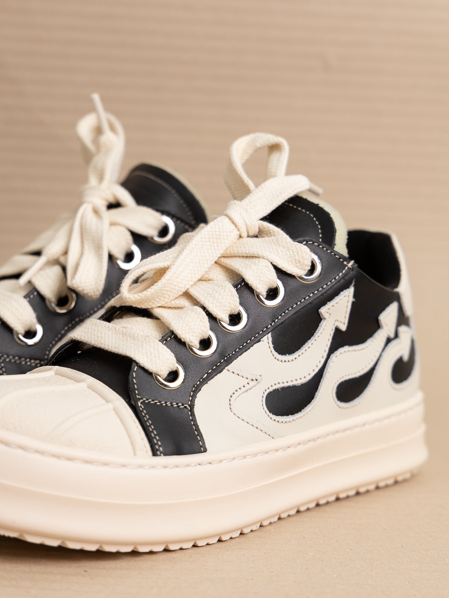 scarpa bassa in eco pelle con dettagli fiamme a contrasto