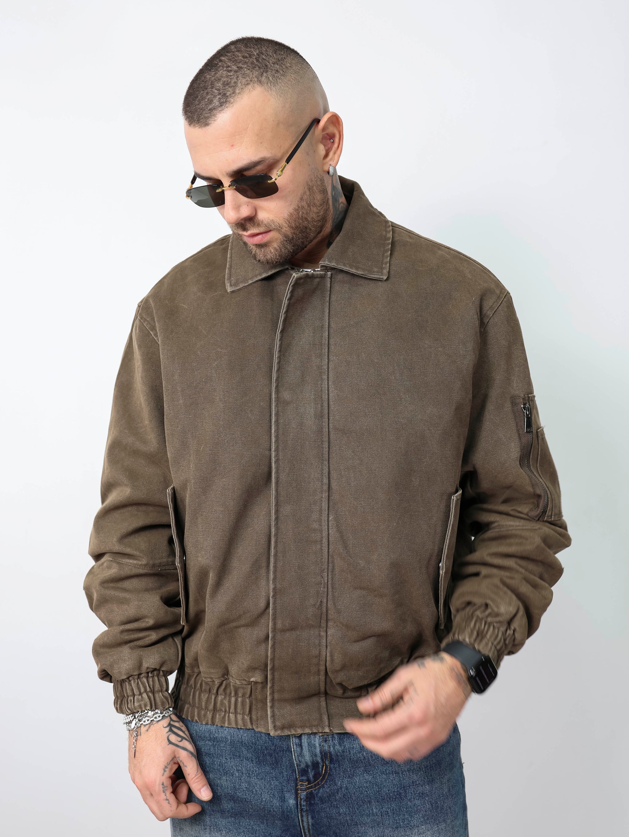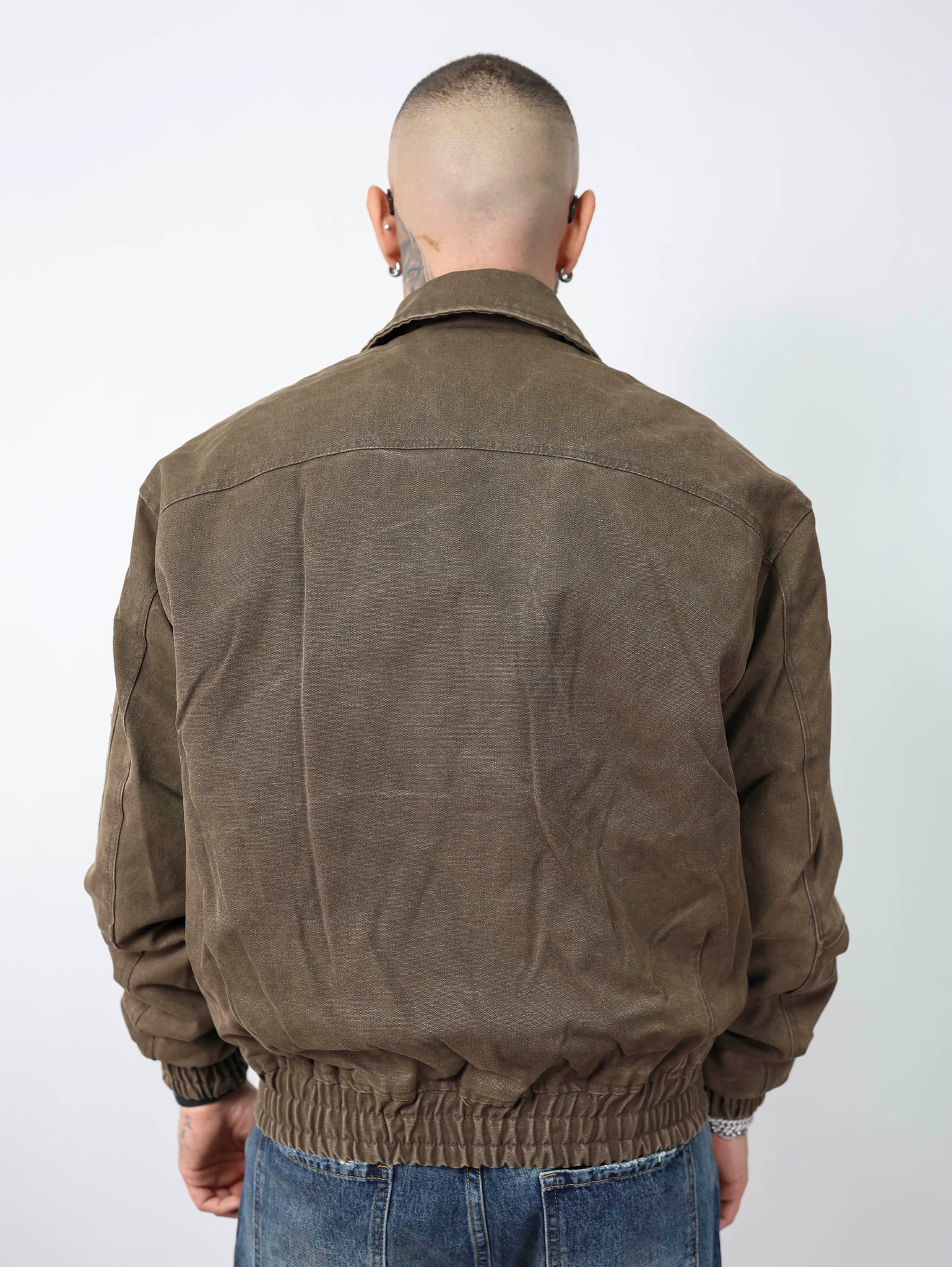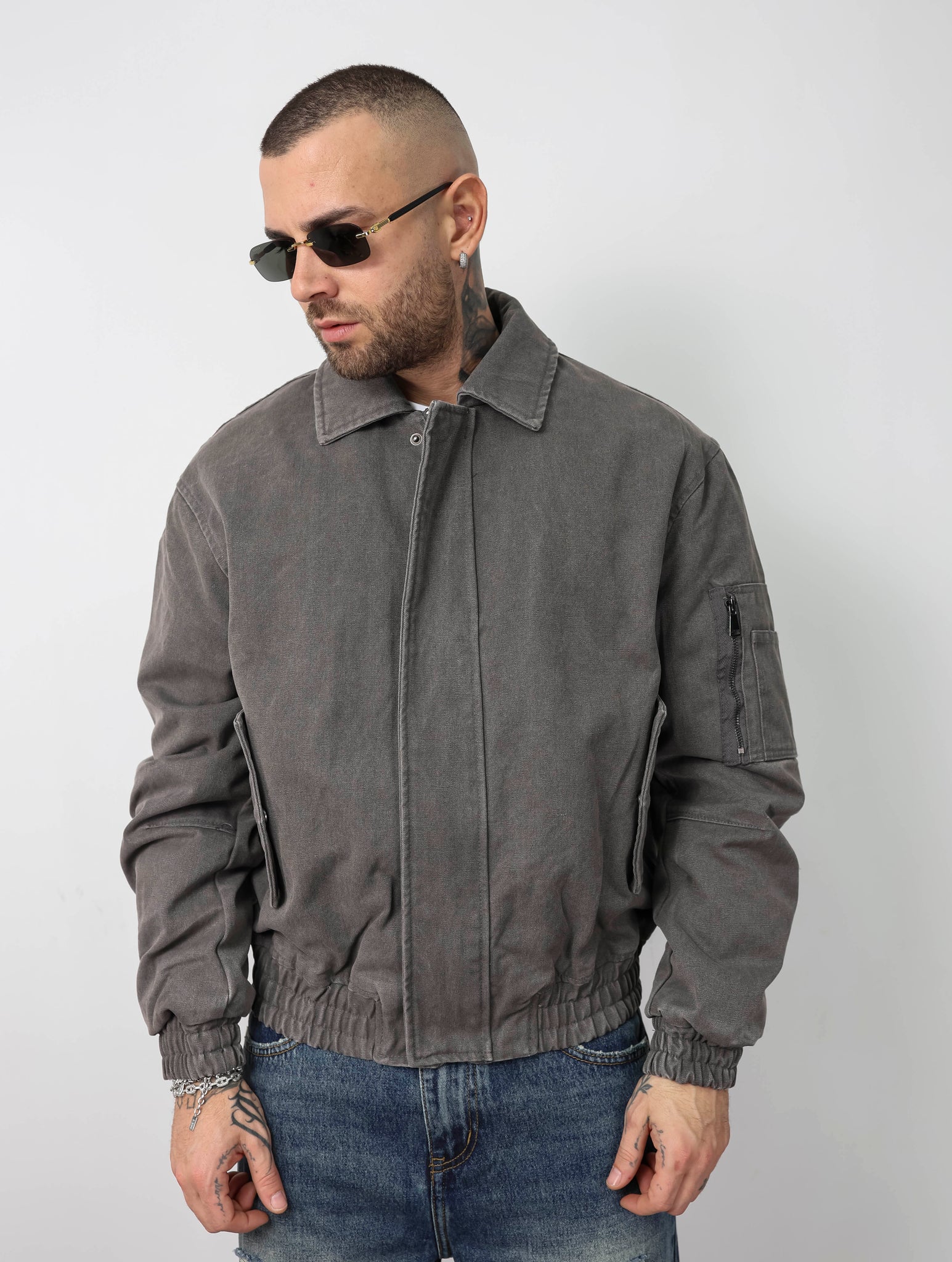 jacket in denim con chiusara a scomparsa ed elastico lungo i polsi e sul fondo