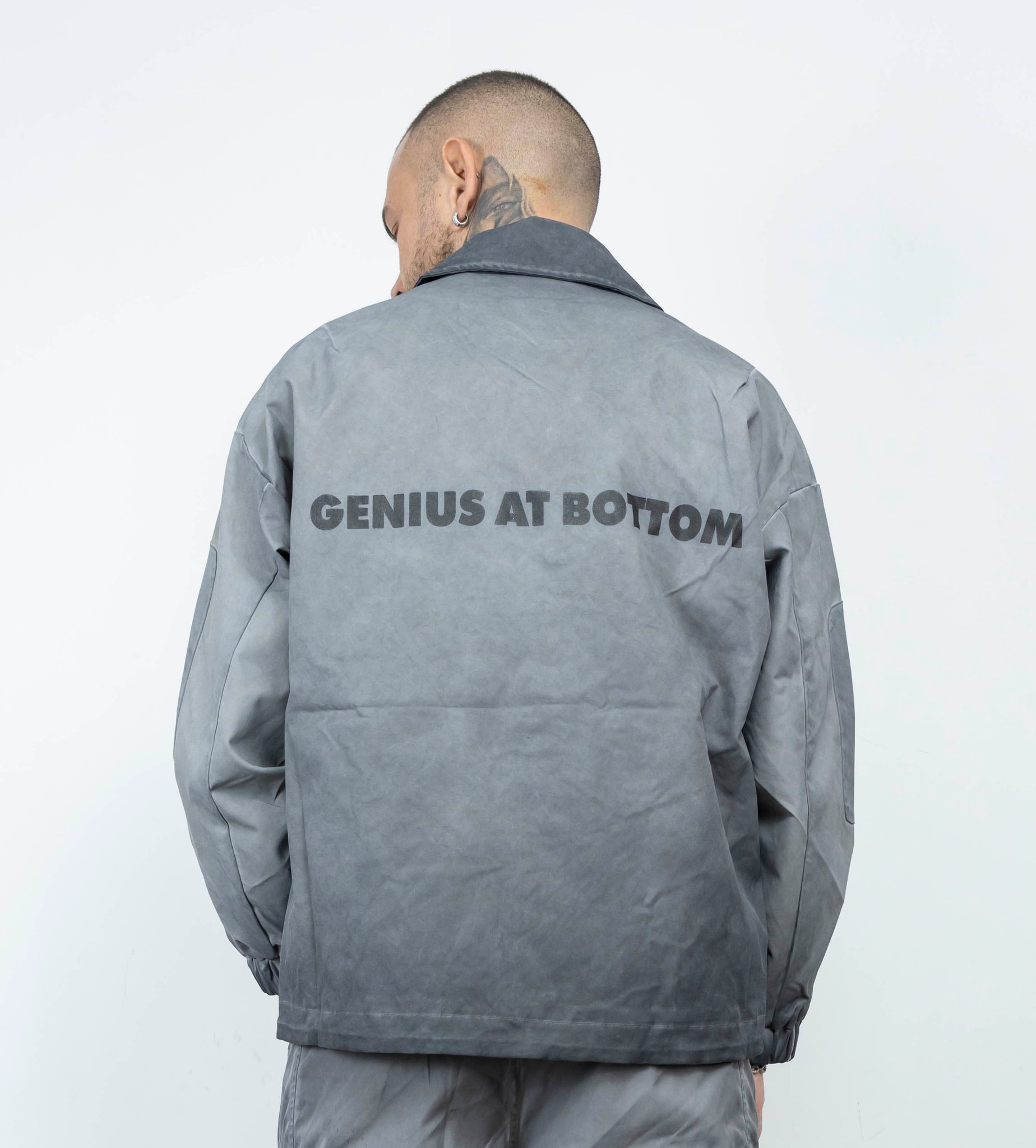 jacket slavato sfumato con bottoni apribili colore su colore e stampa retro a contrasto
