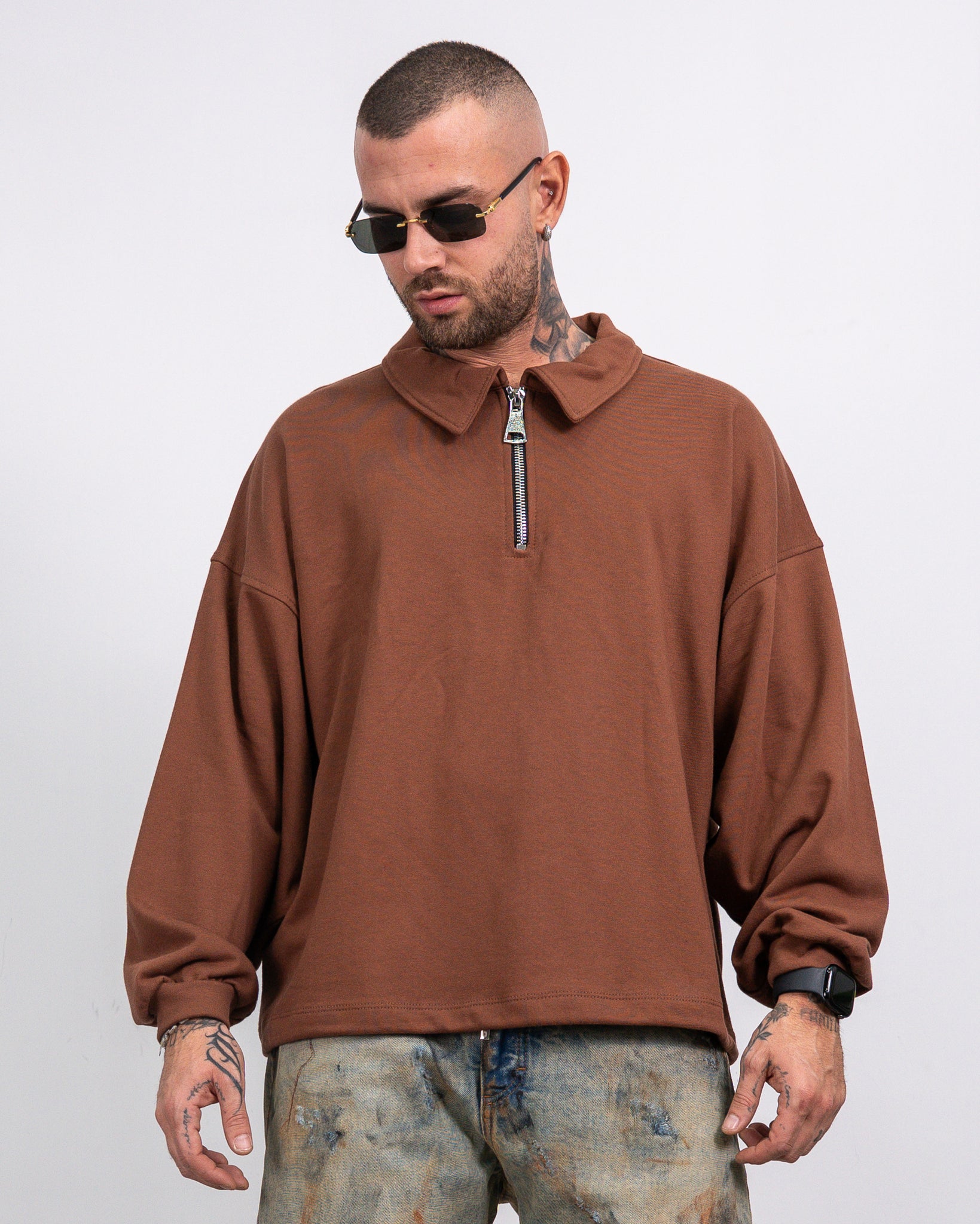 maglia con colletto e mezza zip apribile con molla lungo i polsi