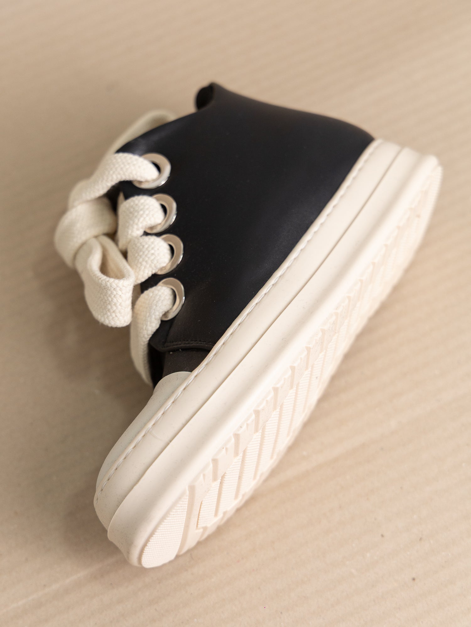 scarpa bassa in eco pelle con laccioni a contrasto.