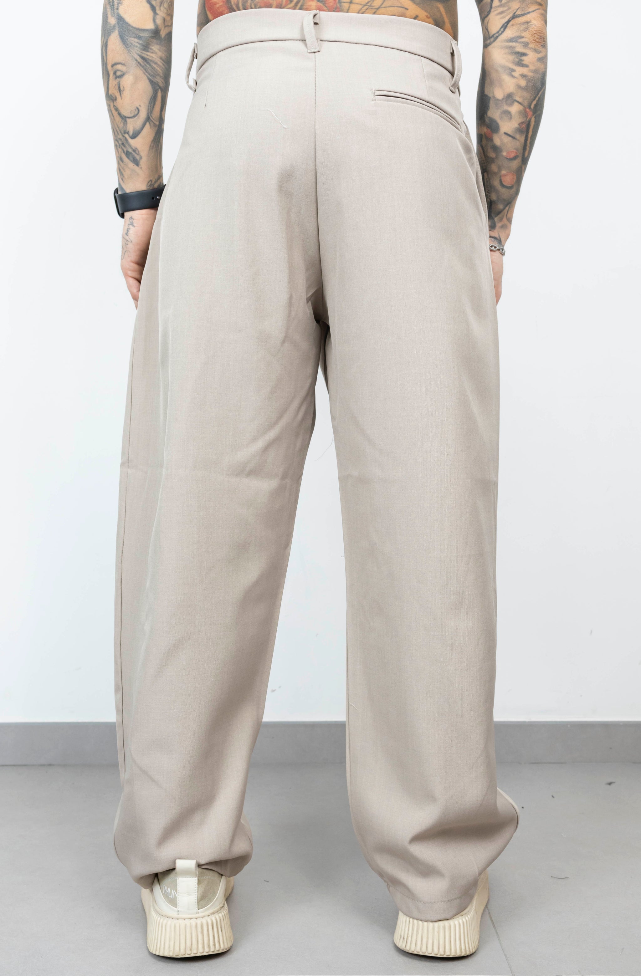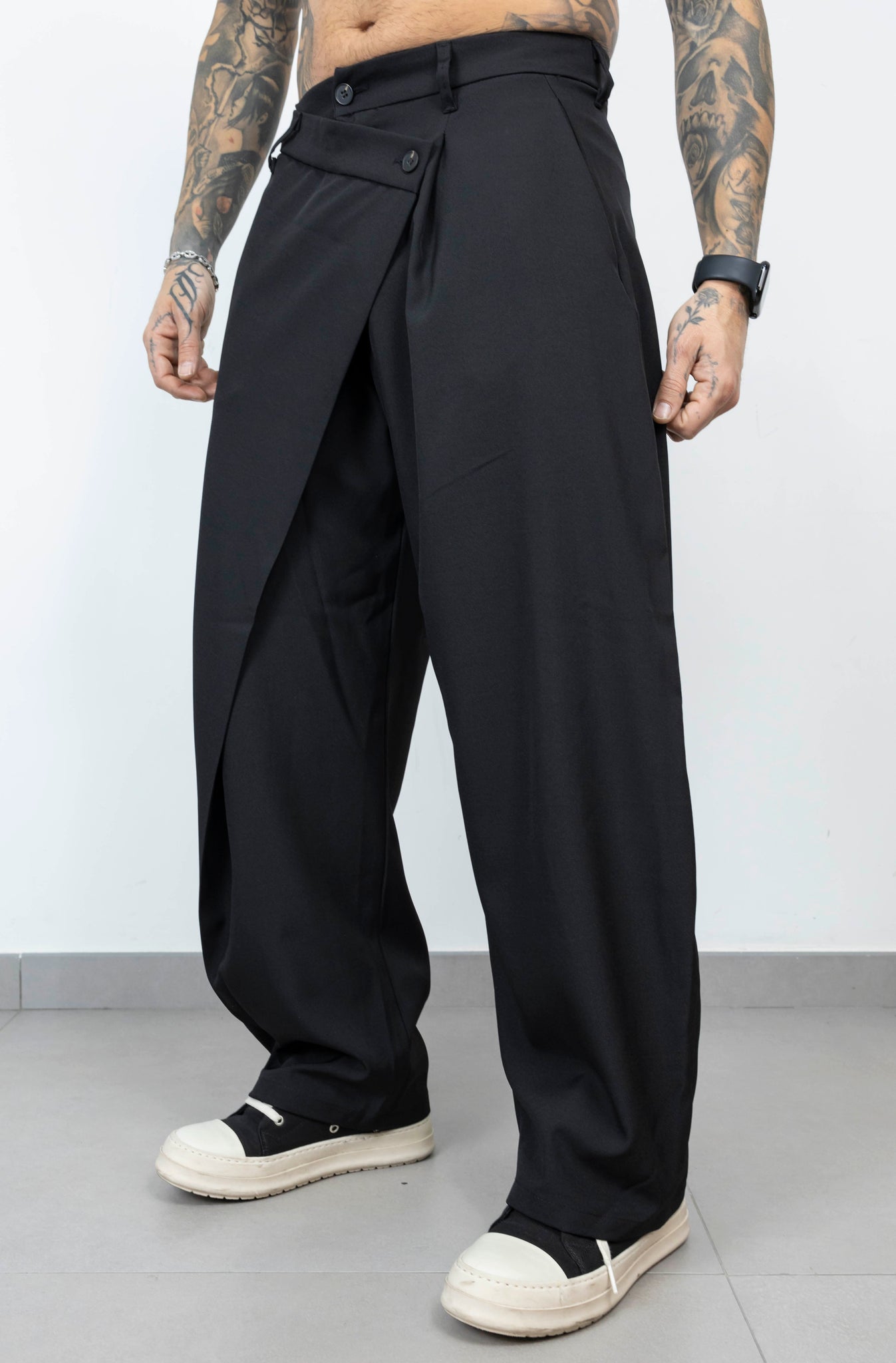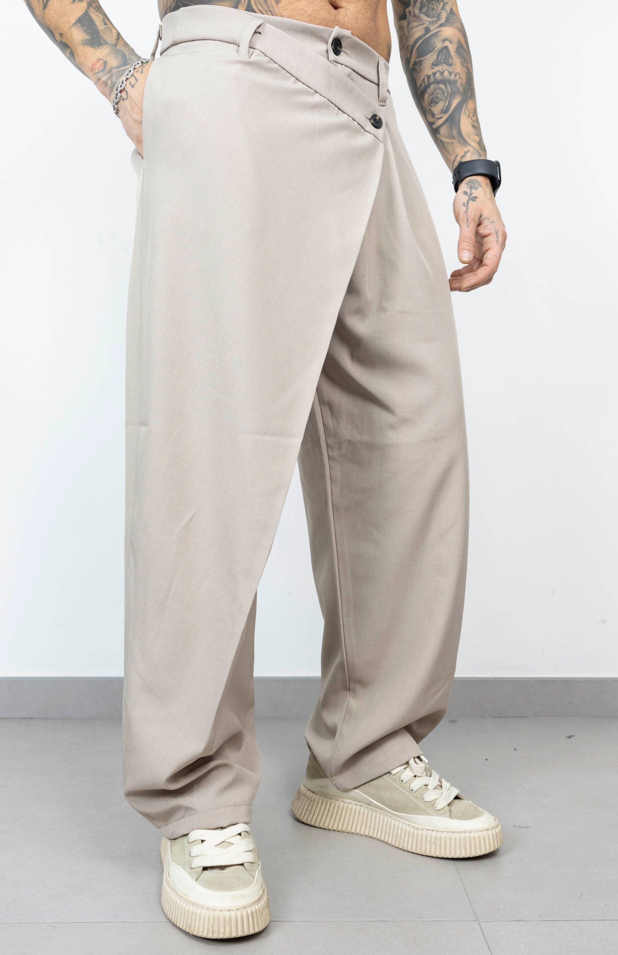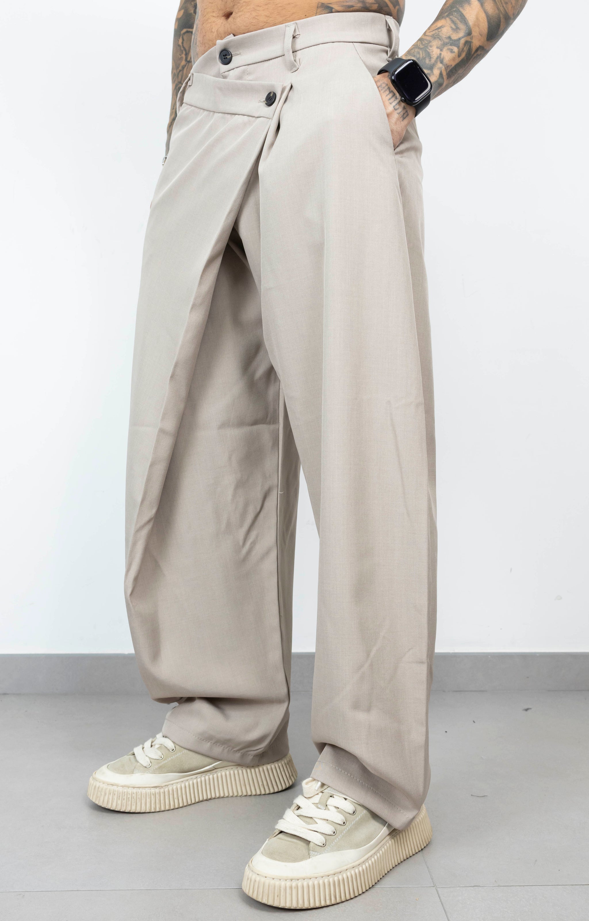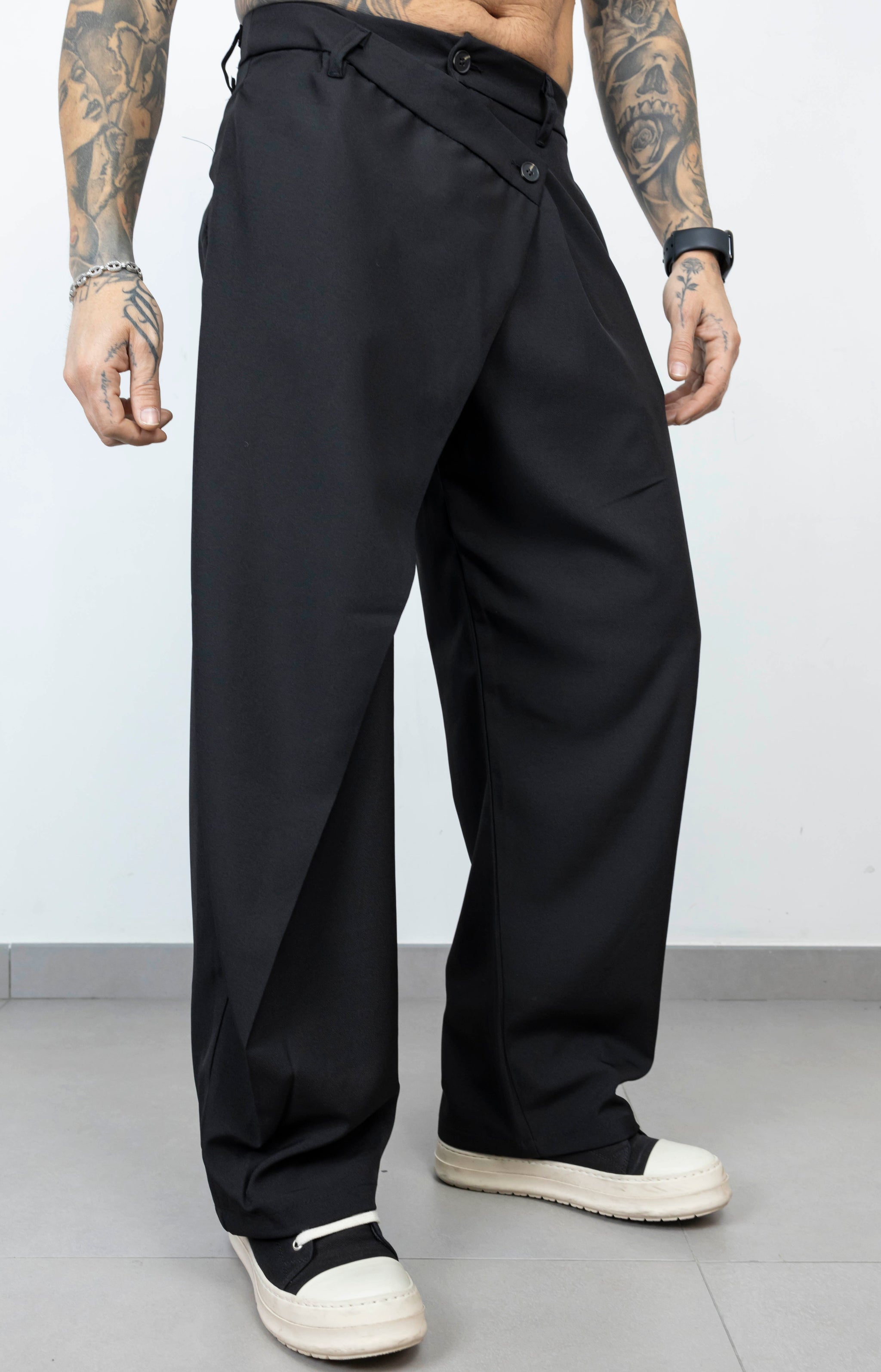 pantalone classico fondo largo con doppia abbottonatura obliqua