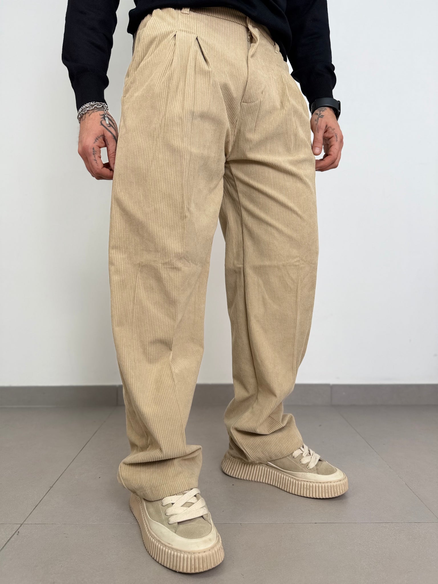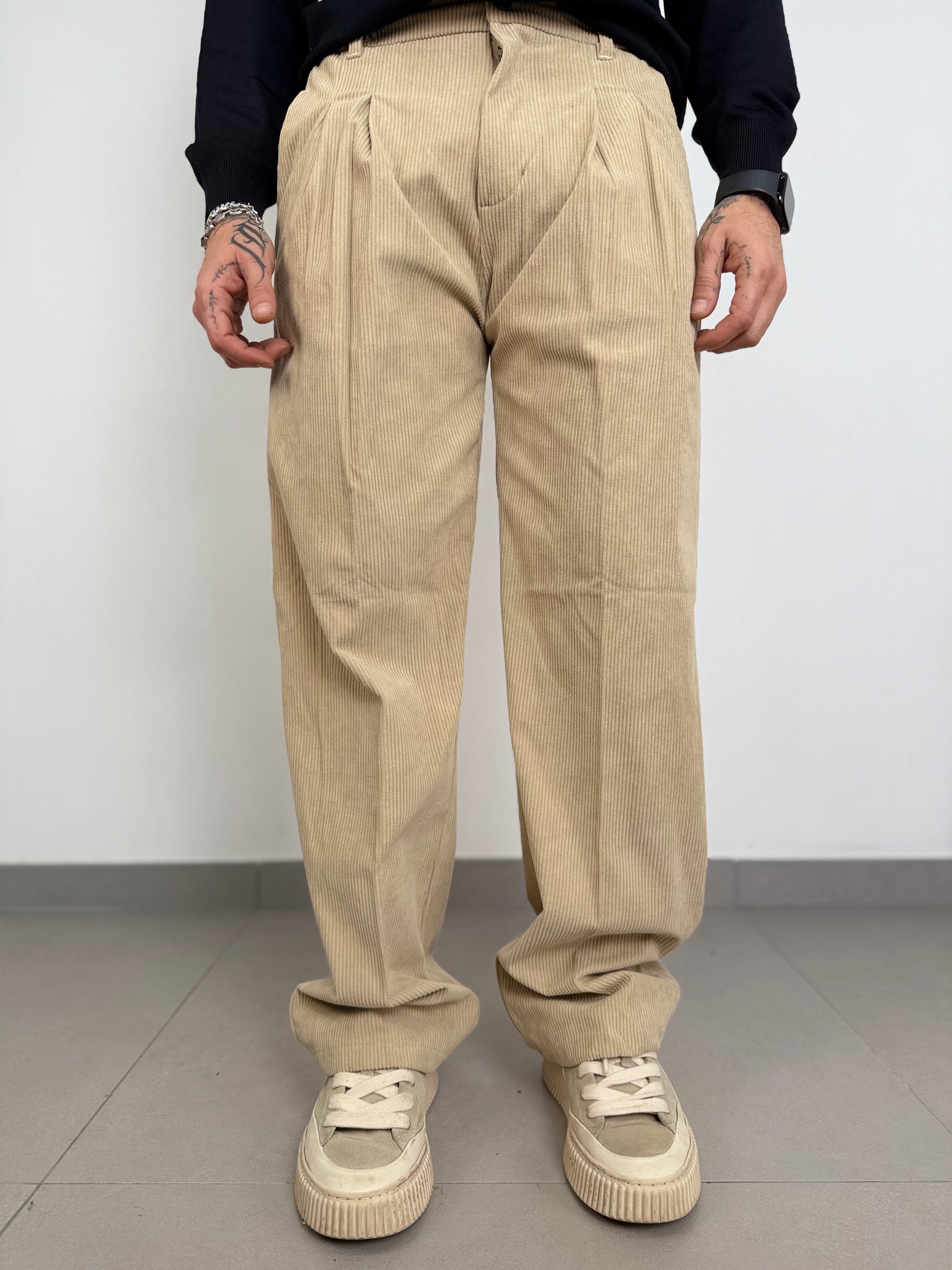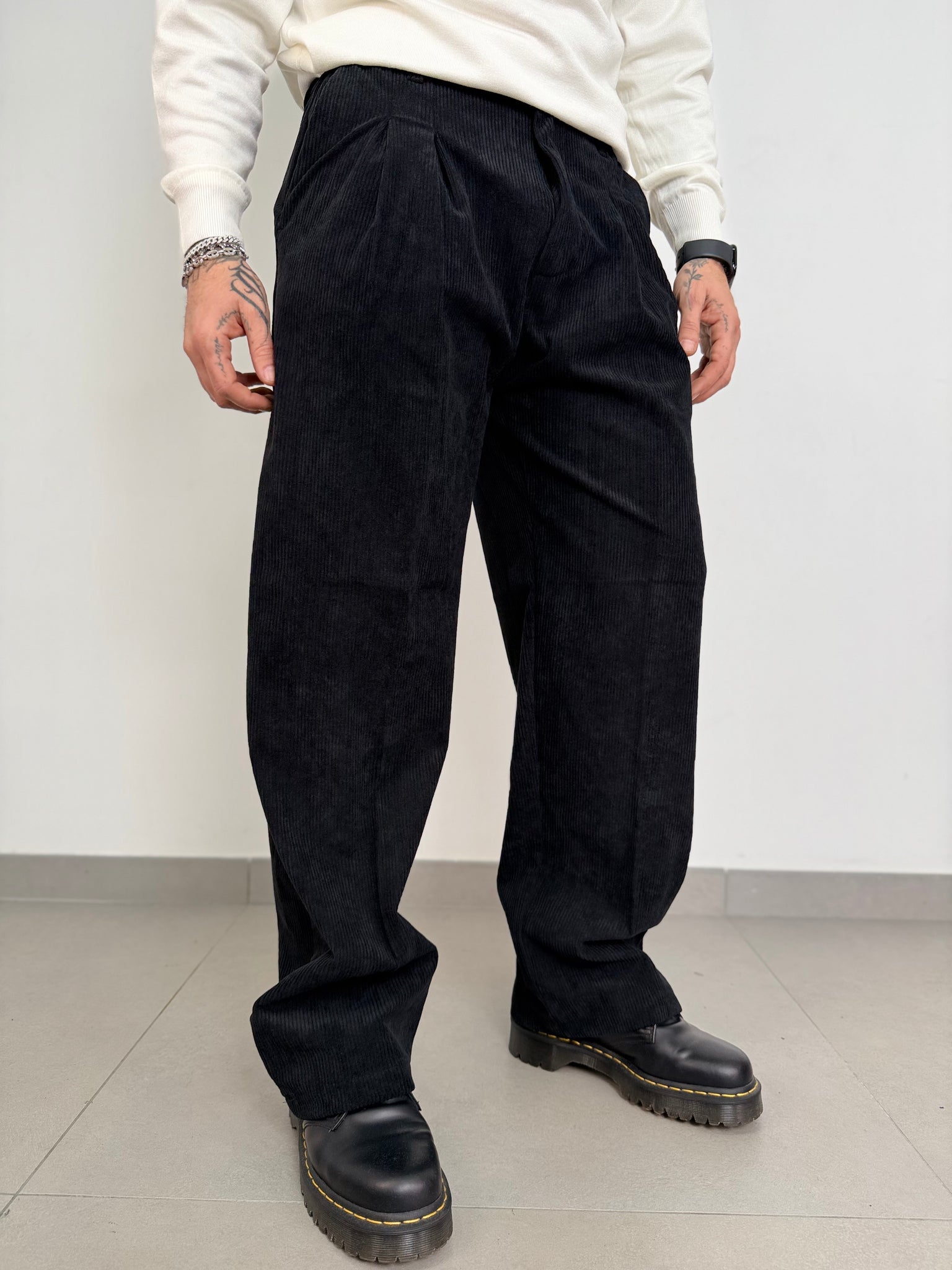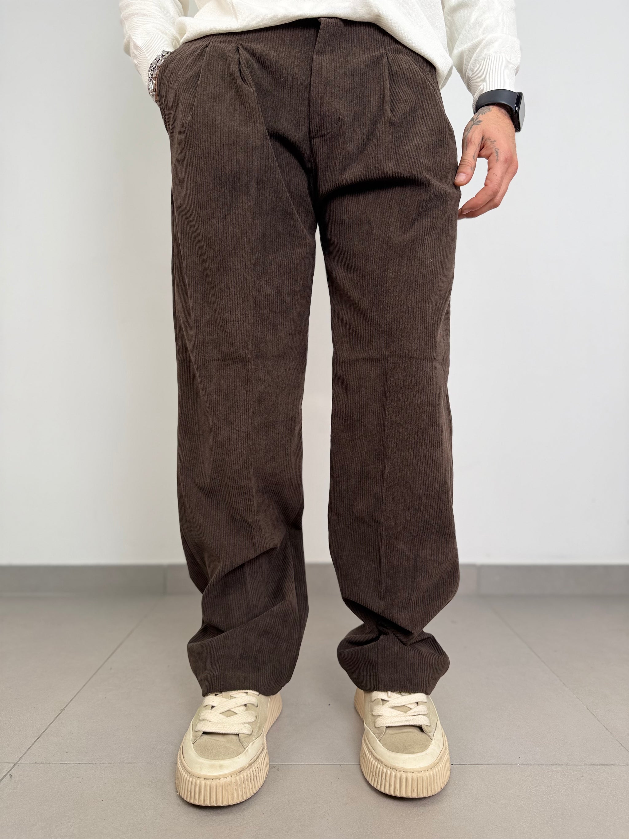 pantalone a costine in velluto basic,con elastico in vita fondo largo